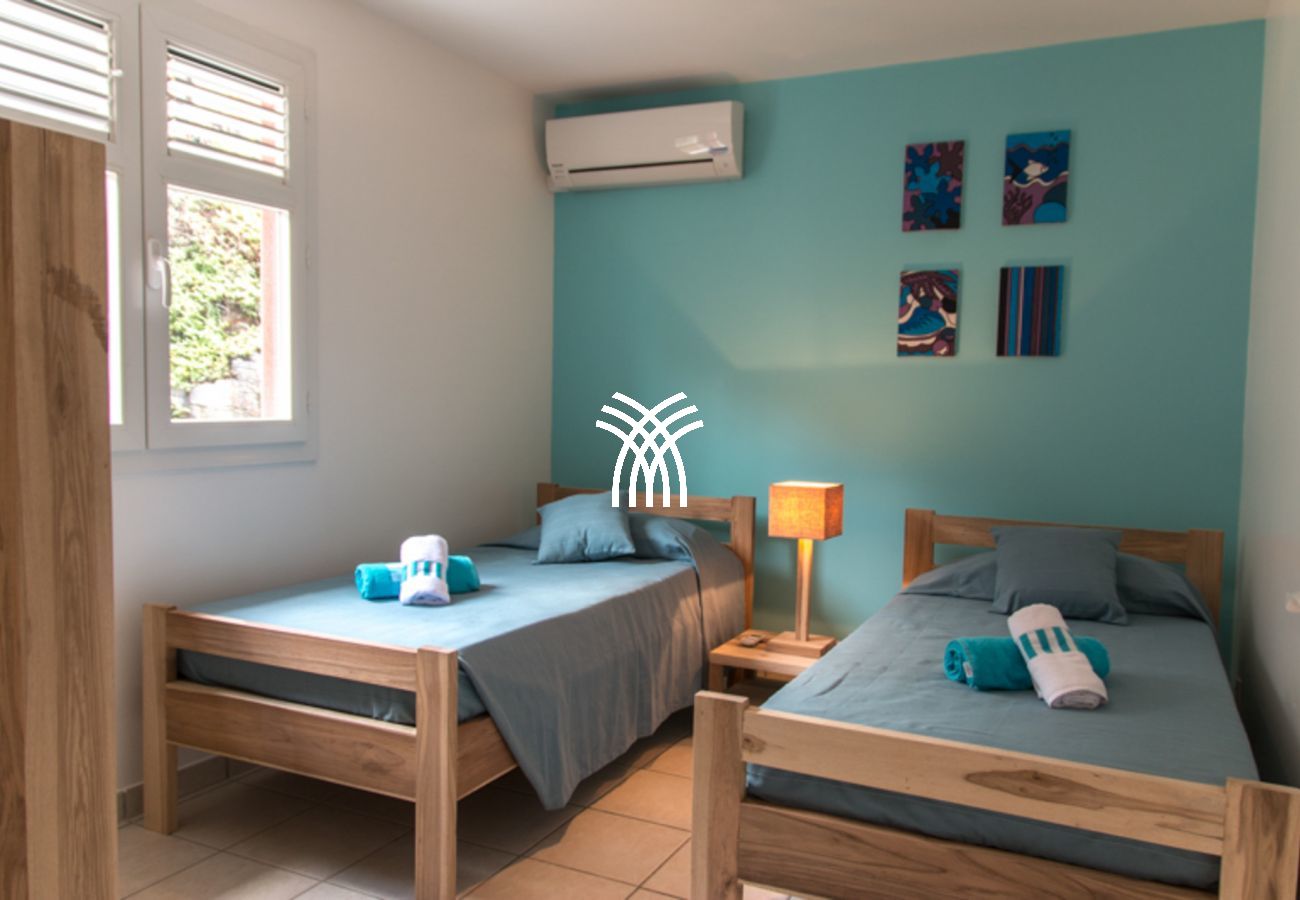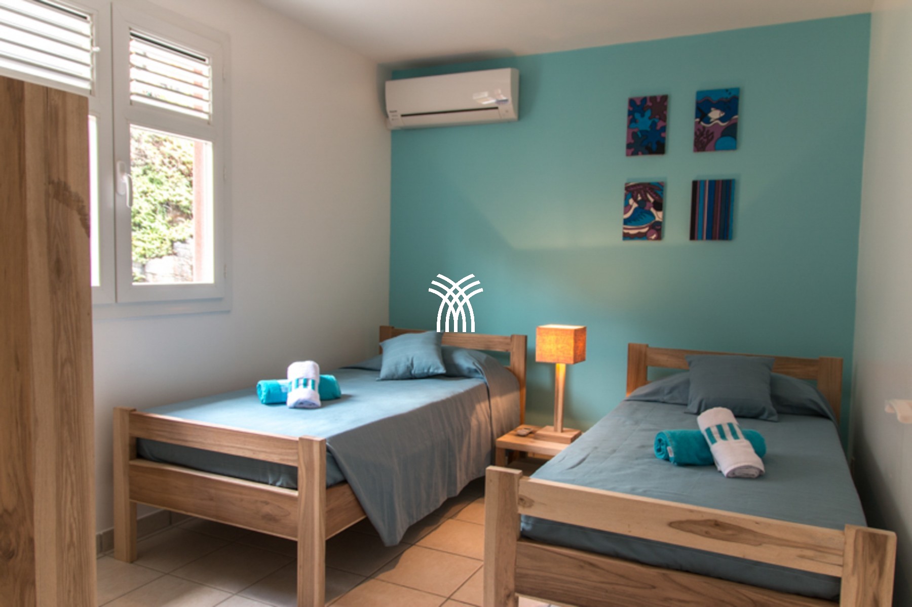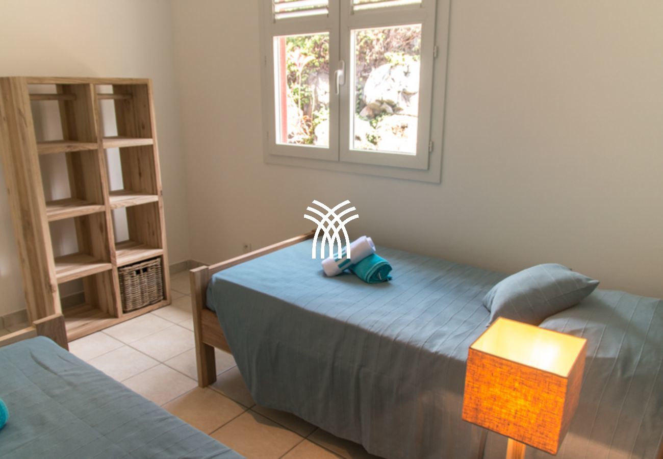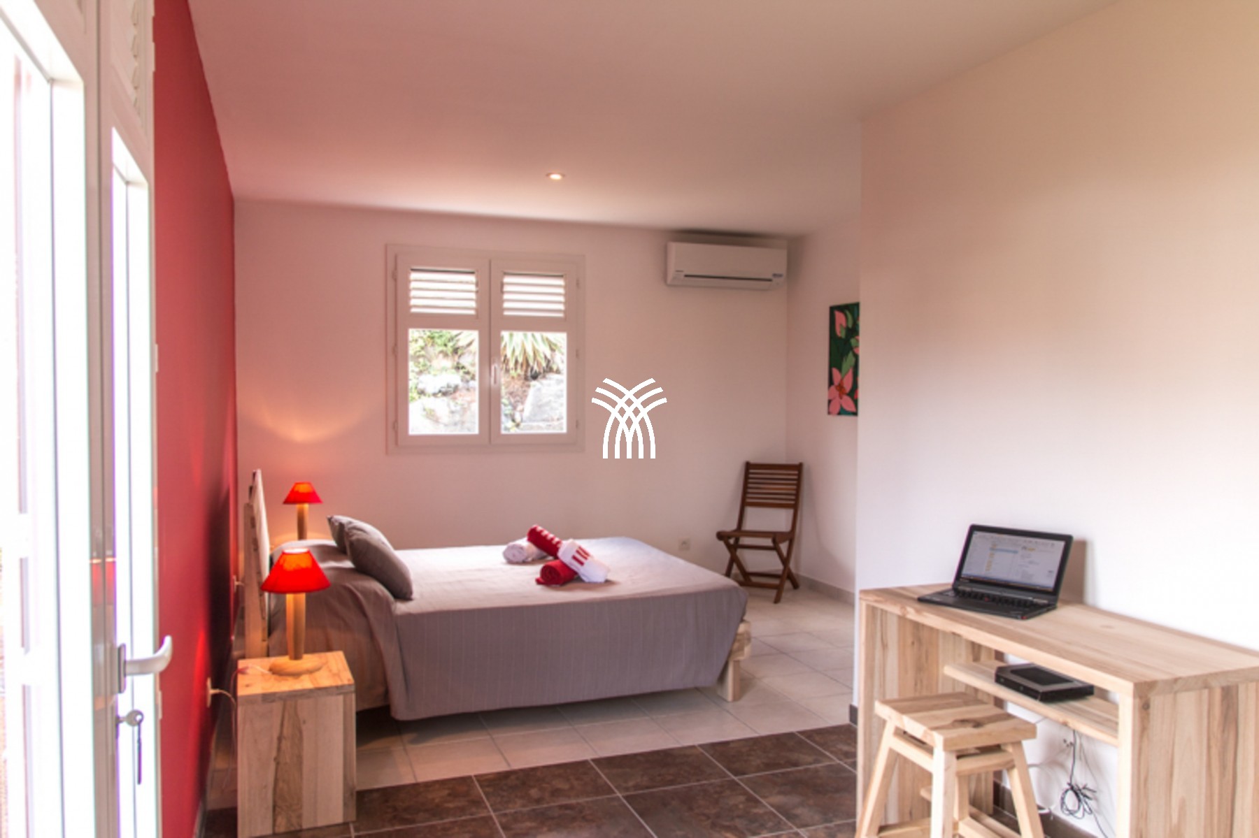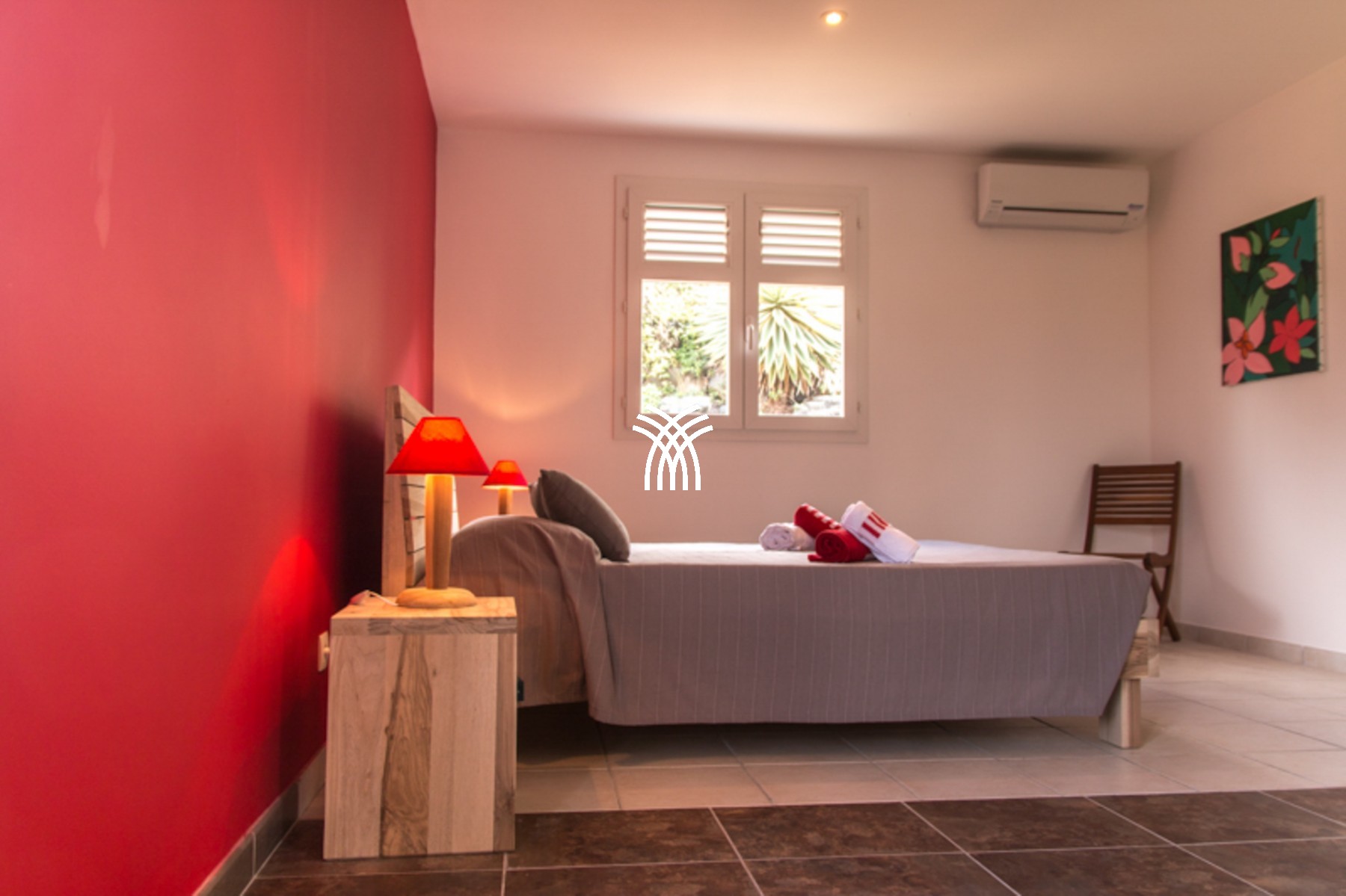 La Villa Amajuli dispose de trois chambres climatisées, chacune dotée d’une salle de douche privative et de moustiquaires. La chambre principale, équipée d’un lit 160x200, bénéficie d’un accès direct à la terrasse et offre une vue magnifique sur la mer. Elle est idéale pour les moments de repos après une journée au soleil.