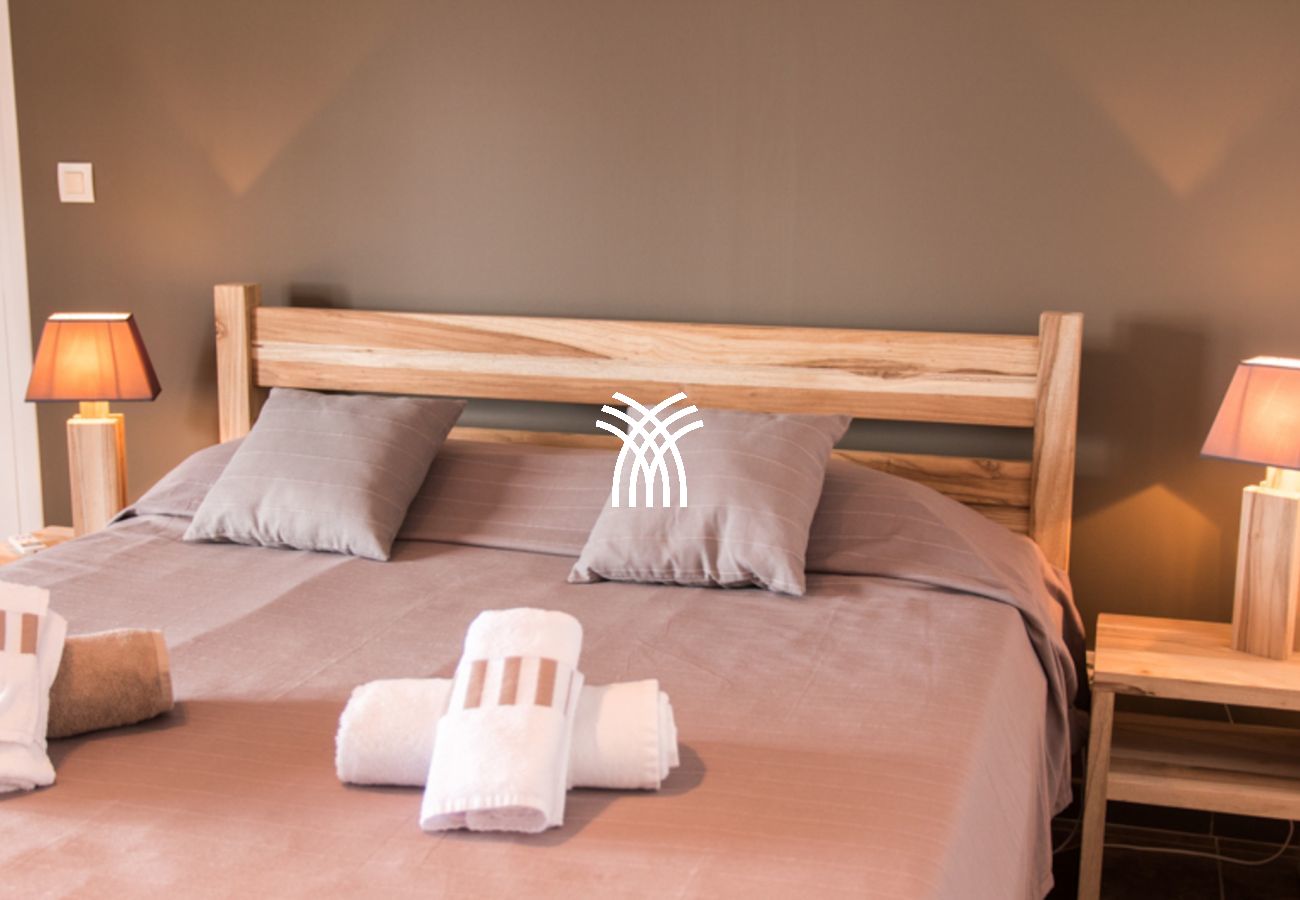 La villa de vacances abrite trois chambres climatisées. Confortables et chaleureuses, elles sont meublées en Laurier des Andes.