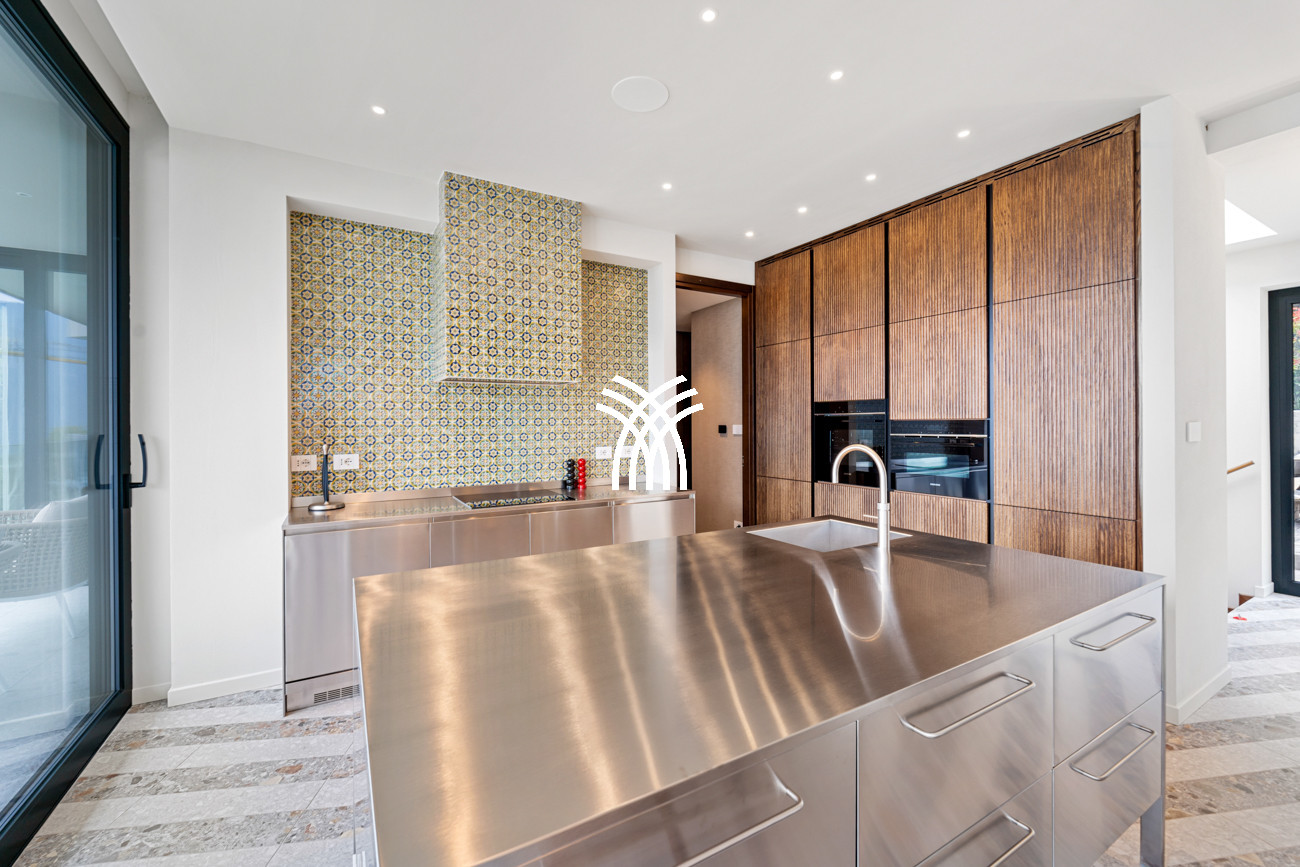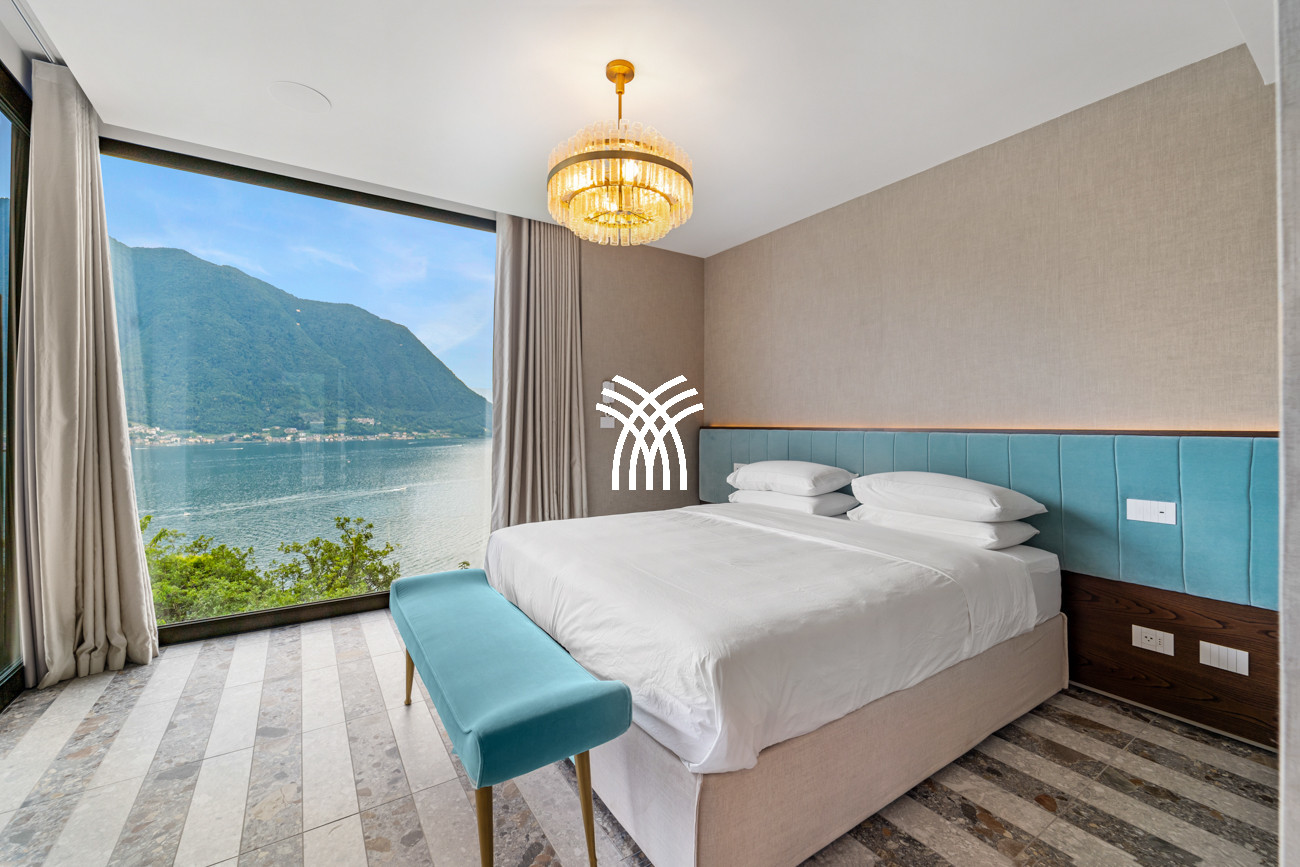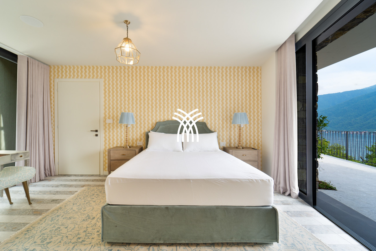 Au rez-de-chaussée, trois chambres au style unique disposent chacune de salles de bains attenantes et d'une décoration vibrante. Le bar lounge élégant offre un espace convivial pour la détente et le divertissement. Depuis ce niveau, accédez directement à la terrasse ensoleillée qui mène à une piscine privée, entourée de vues panoramiques sur le lac—parfait pour des dîners en plein air ou des après-midis ensoleillés en famille.