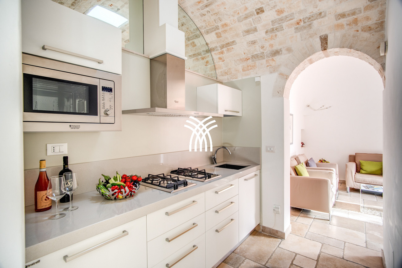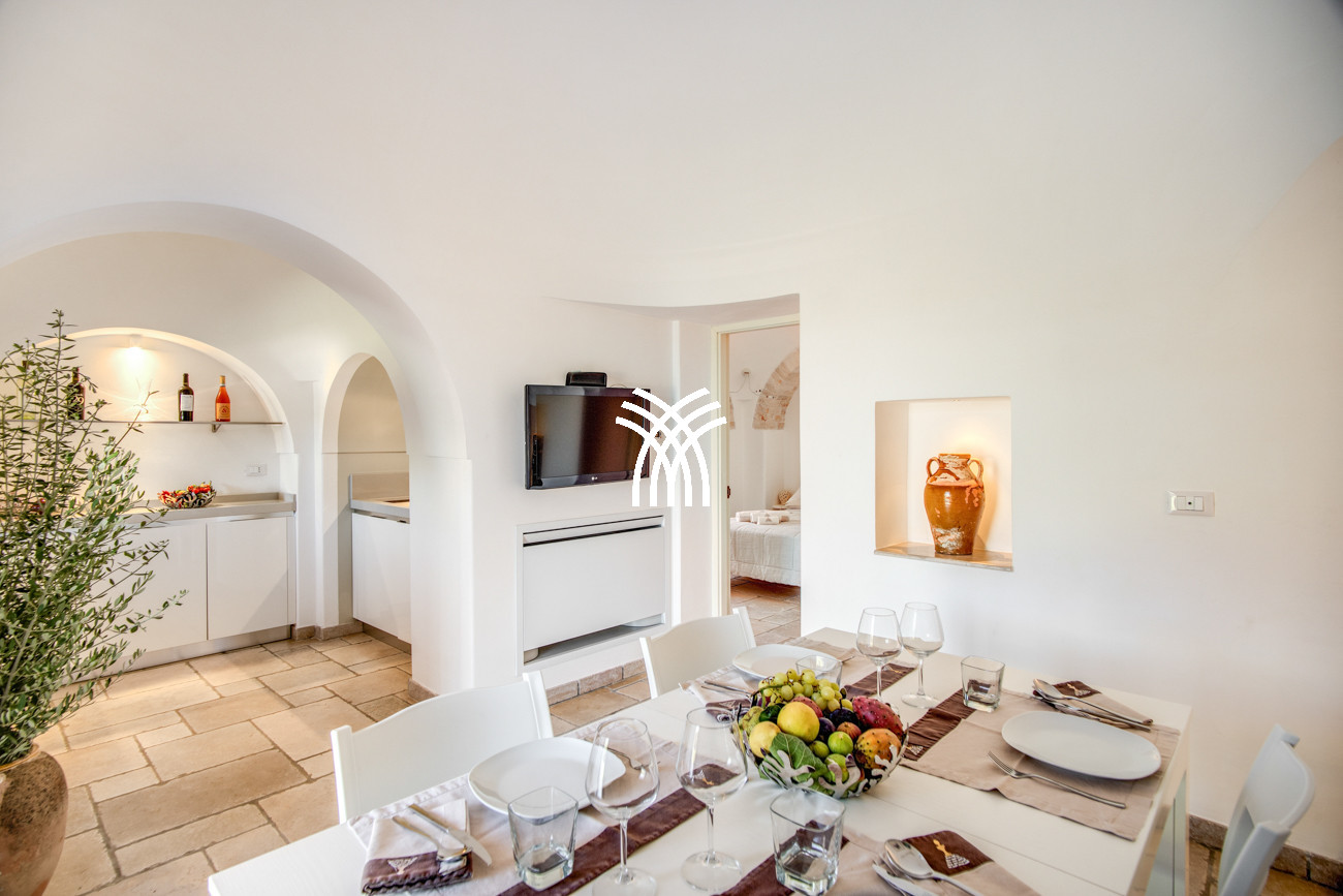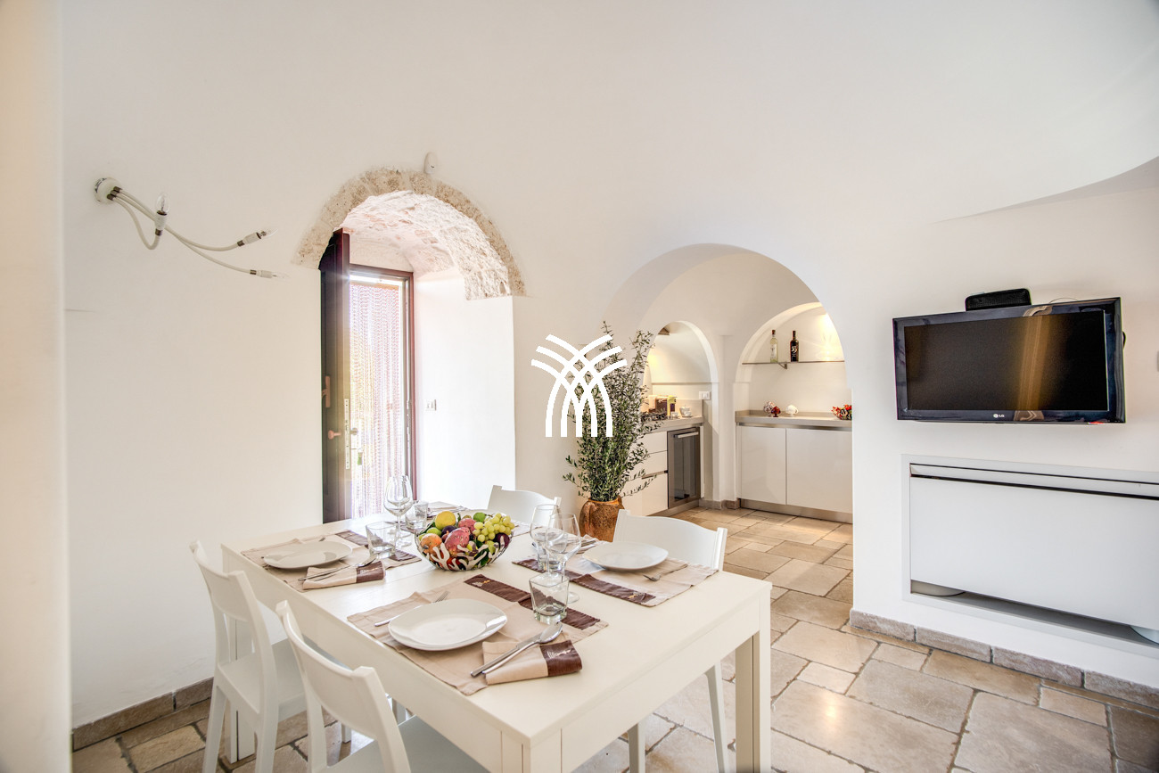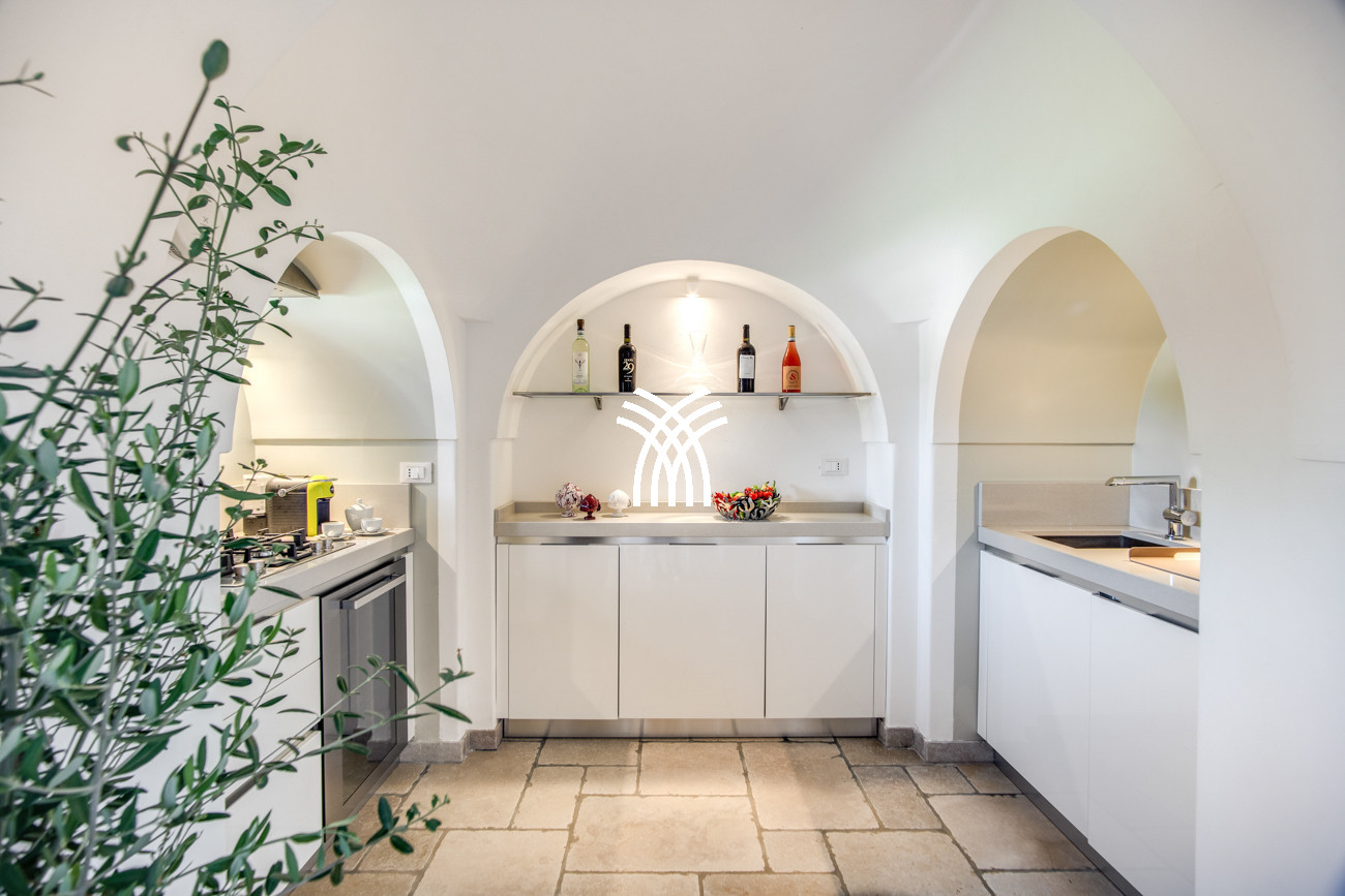 Entourée de 13 000 mètres carrés de paysage vierge, la Villa Baraquiel est un trullo traditionnel composé de 11 cônes de pierre emblématiques, offrant un espace de vie magnifiquement restauré de 105 mètres carrés. À l'intérieur, la villa dispose de quatre chambres, trois salles de bains, deux cuisines entièrement équipées et trois salons élégants. Chaque pièce est conçue avec des meubles haut de gamme, des équipements modernes et des finitions luxueuses qui créent un sentiment de sophistication sans effort et de chaleur familiale.