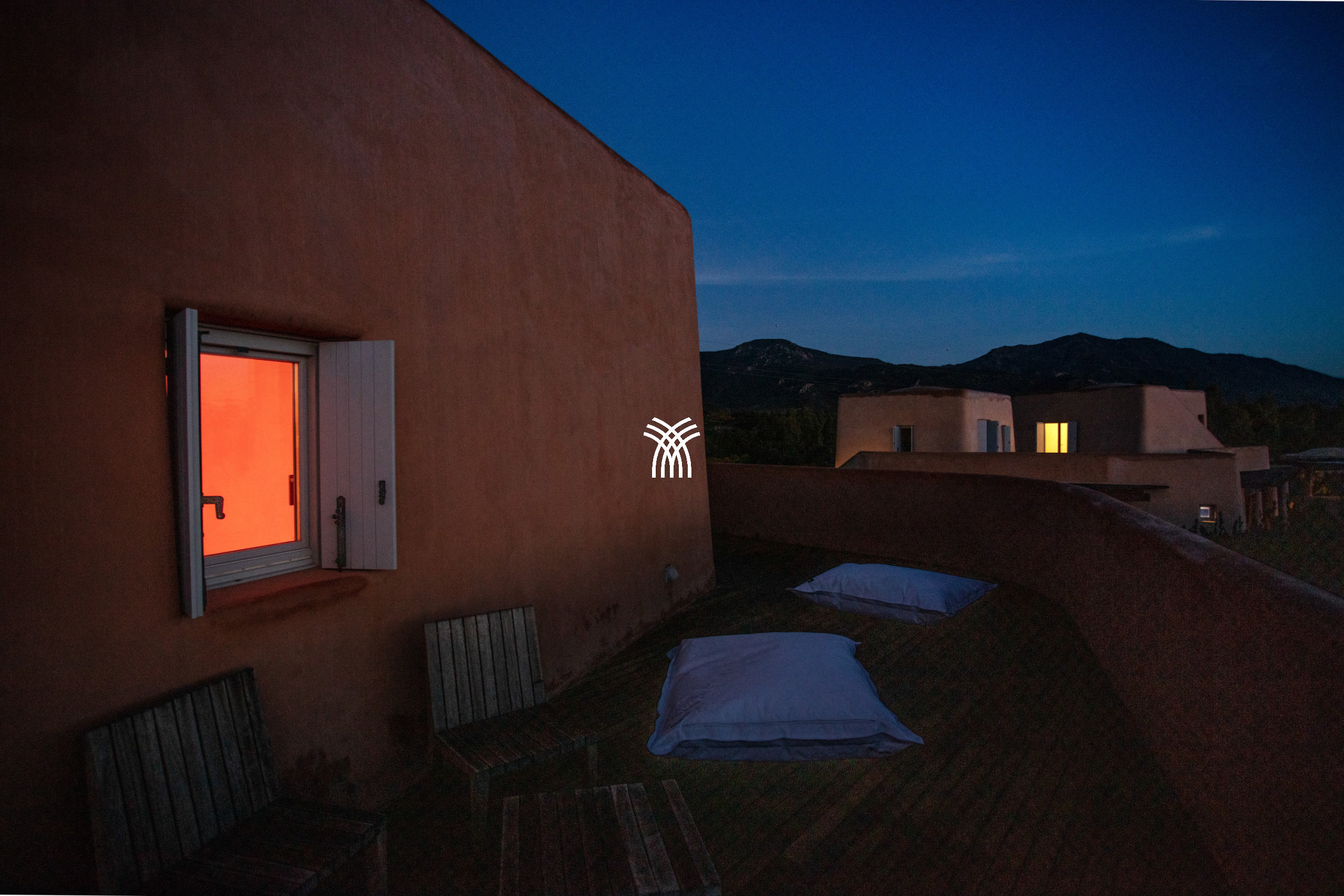 Au niveau supérieur, accessible de l'intérieur et de l'extérieur, la zone de couchage comprend deux chambres doubles, chacune avec sa salle de bain privative. Les deux chambres donnent sur une terrasse expansive aux formes irrégulières de 90 mètres carrés, soigneusement aménagée avec des espaces de détente et offrant une variété de vues panoramiques qui changent magnifiquement avec les couleurs de la journée.
