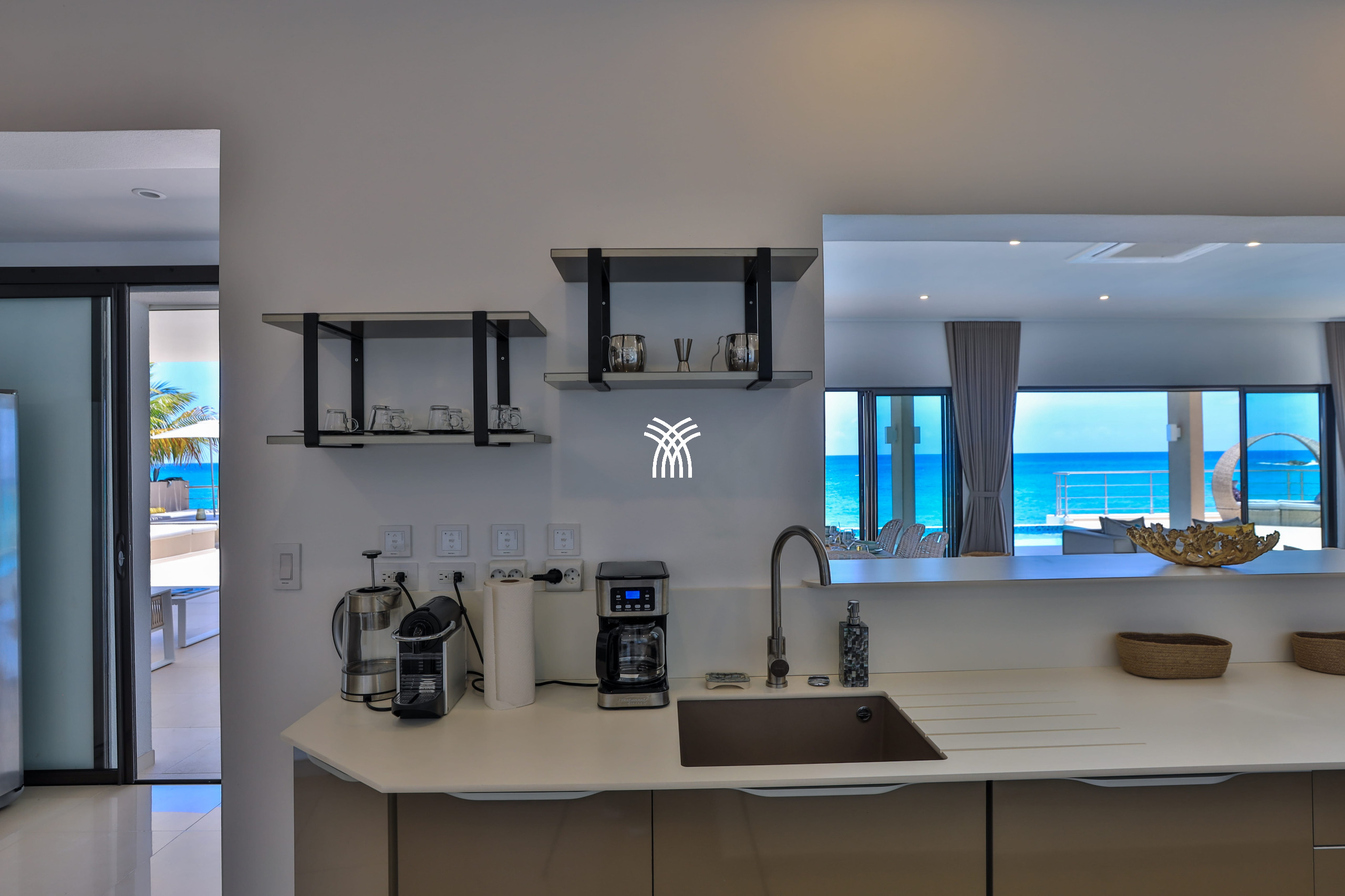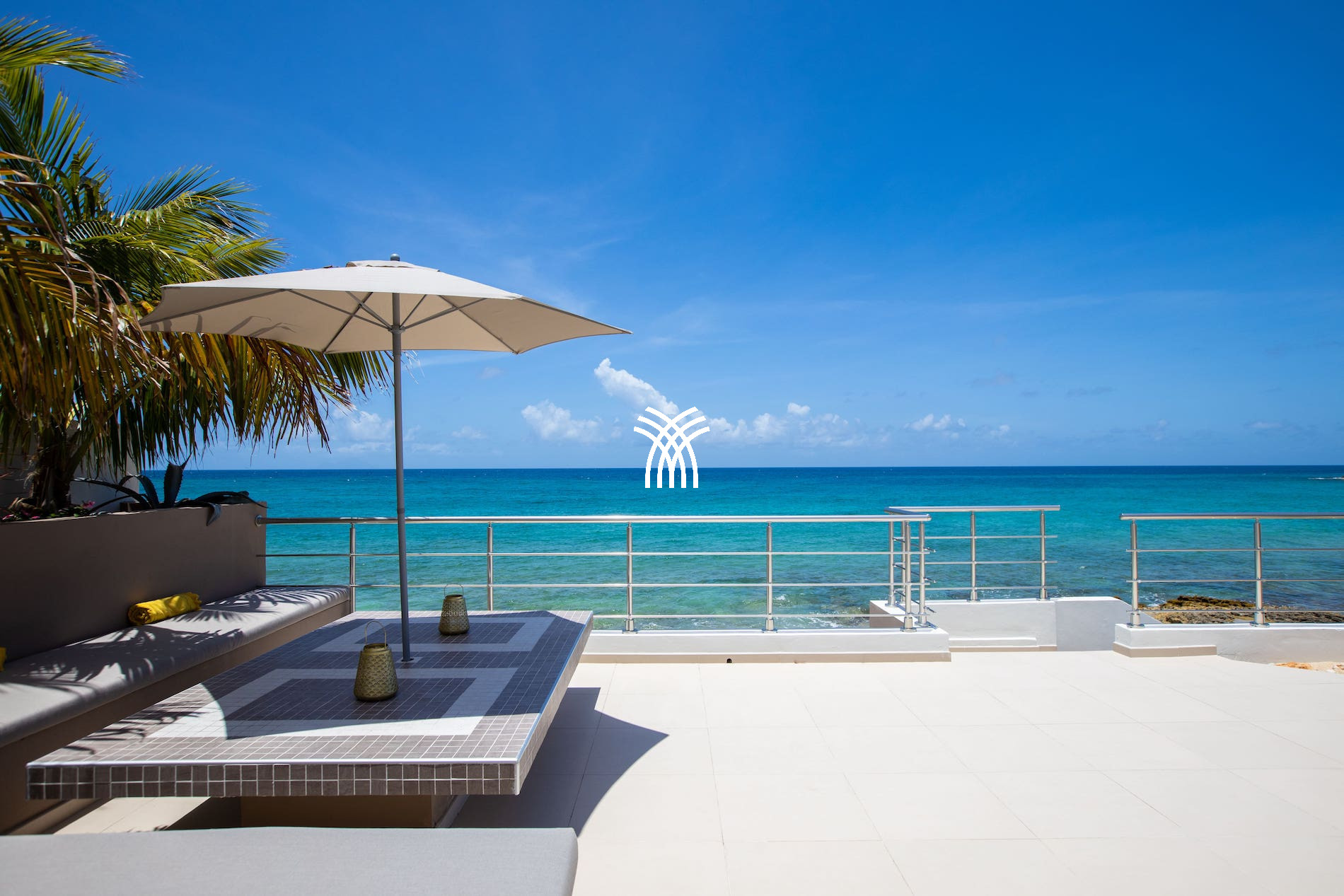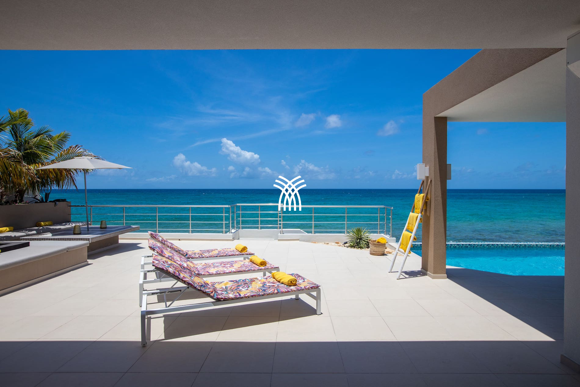 À l’extérieur, la terrasse spacieuse devient un véritable havre de détente. Six chaises longues invitent à la relaxation sous le soleil des Caraïbes, tandis que le coin salon permet de savourer un cocktail face à un coucher de soleil spectaculaire. L’absence de vis-à-vis assure une intimité absolue, créant un cadre idéal pour des moments précieux en couple, en famille ou entre amis.