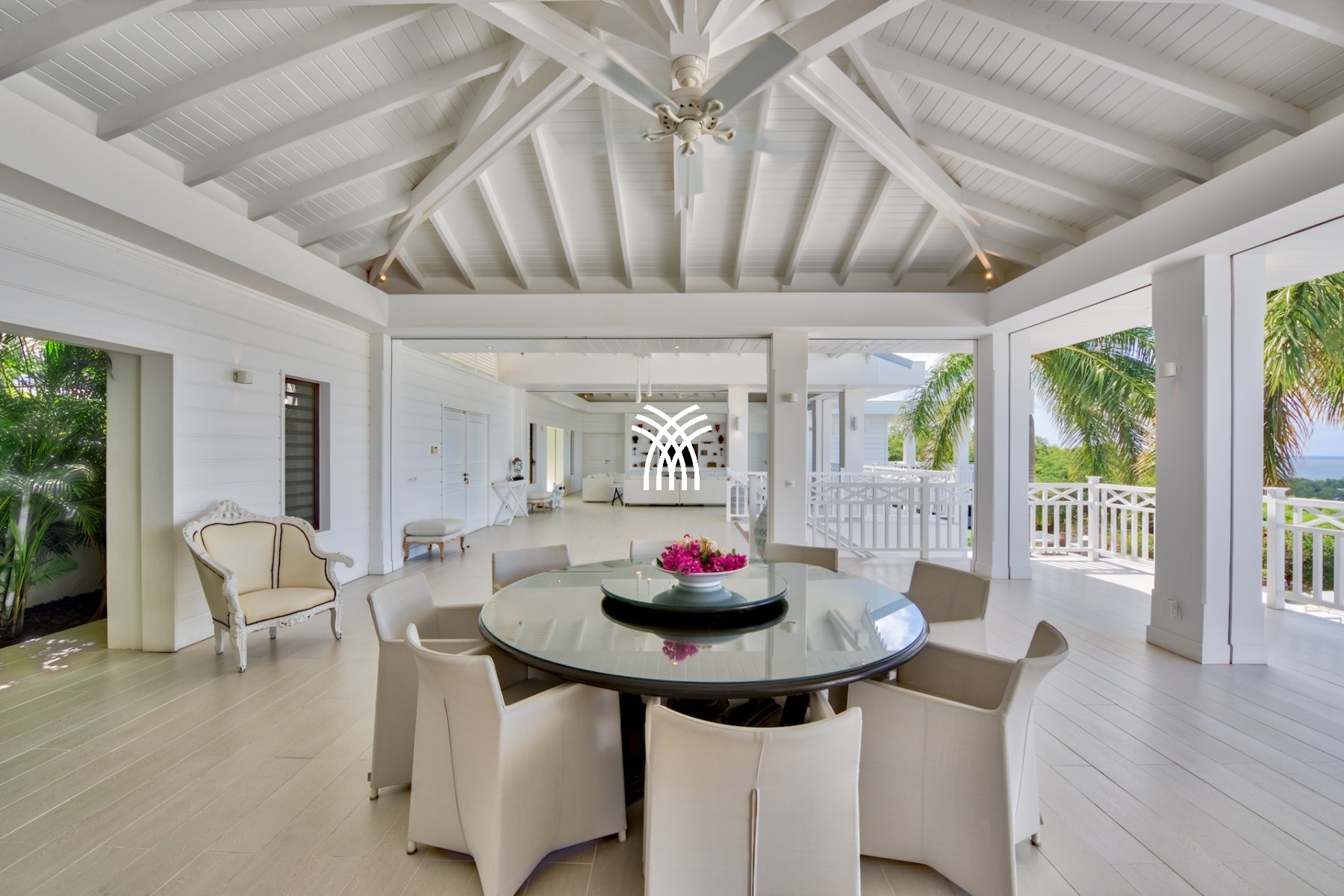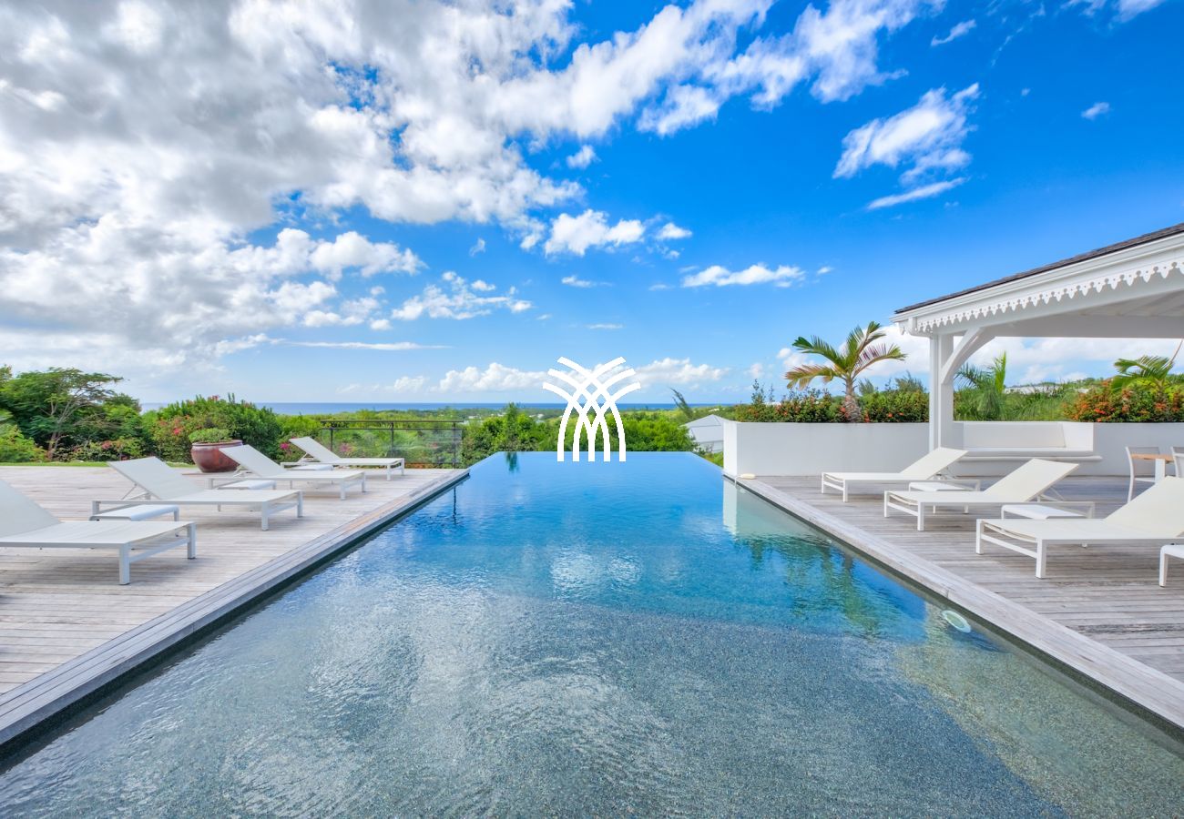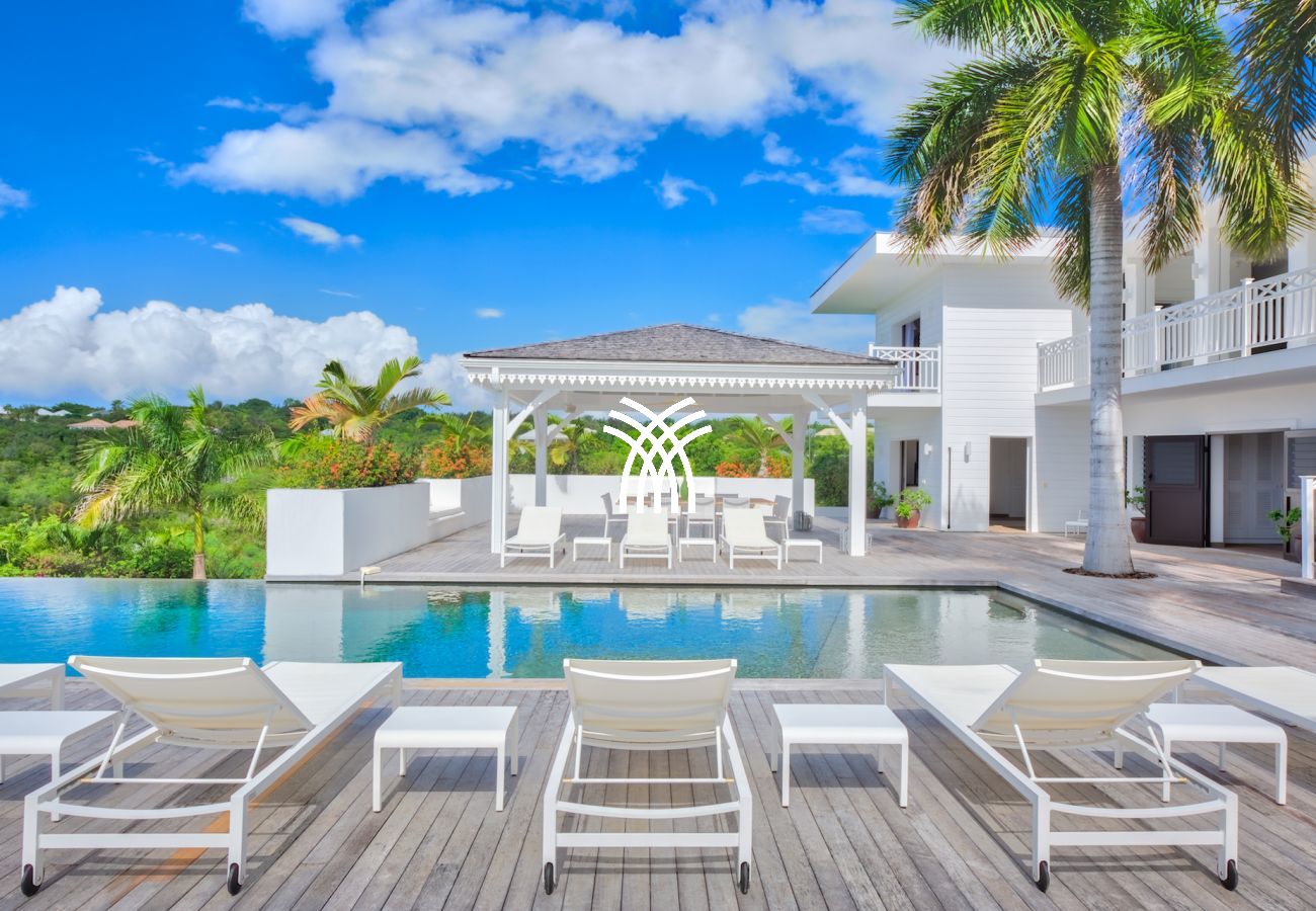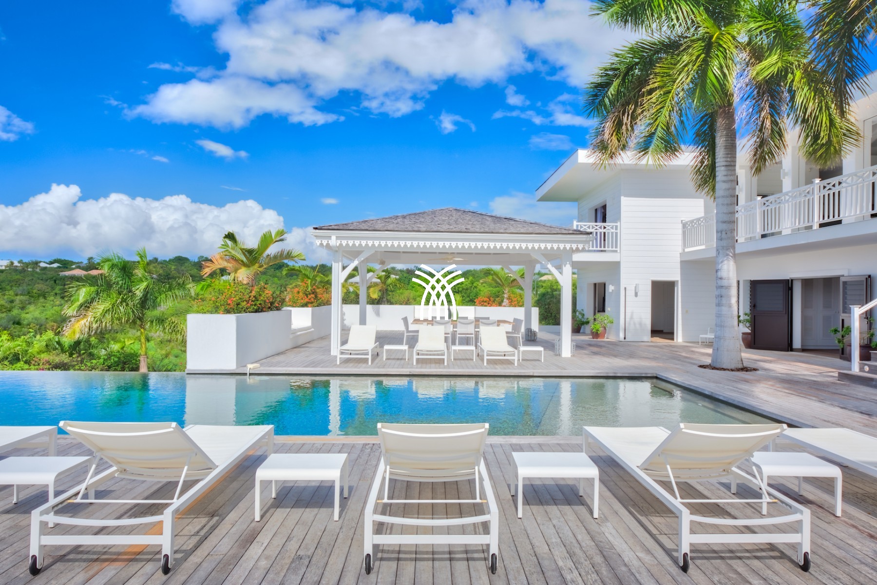 Tout cet espace est ouvert sur une vue aussi extraordinaire qu’imprenable qu’offre la piscine entourée de son deck aux dimensions généreuses et l’océan en toile de fond. Sur ce deck vous trouverez aussi un gazebo immense où vous pourrez prendre vos repas en bord de piscine.