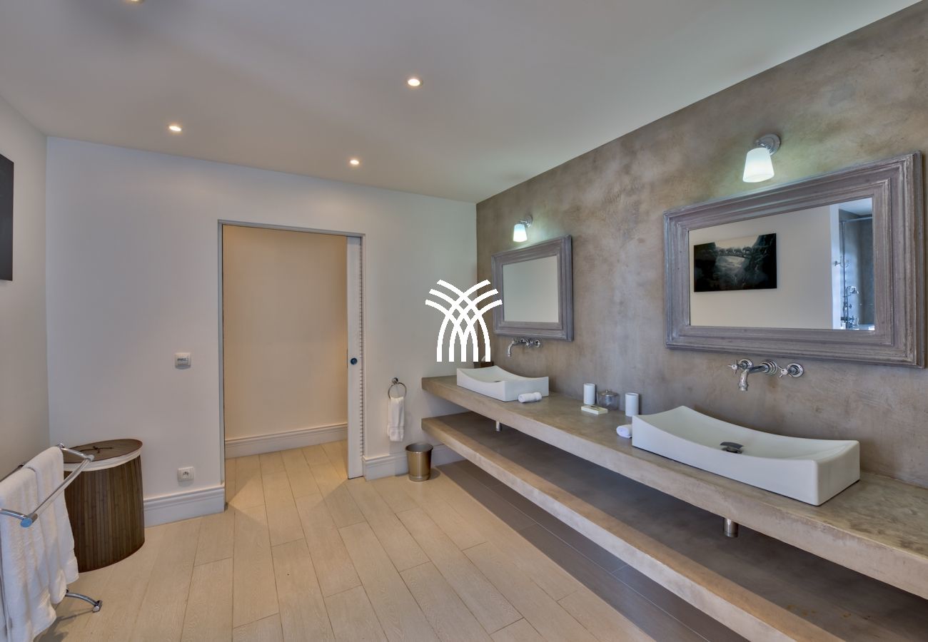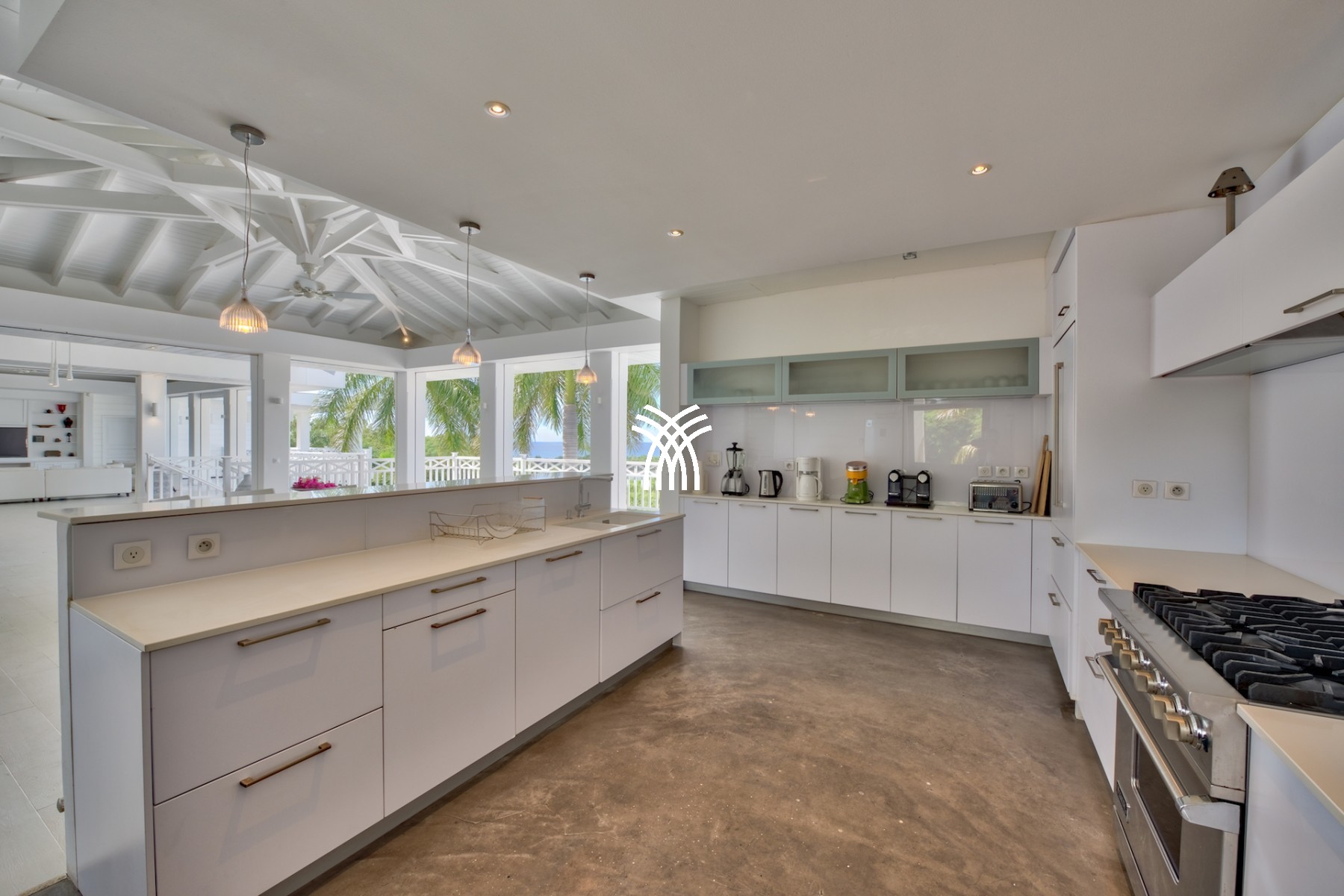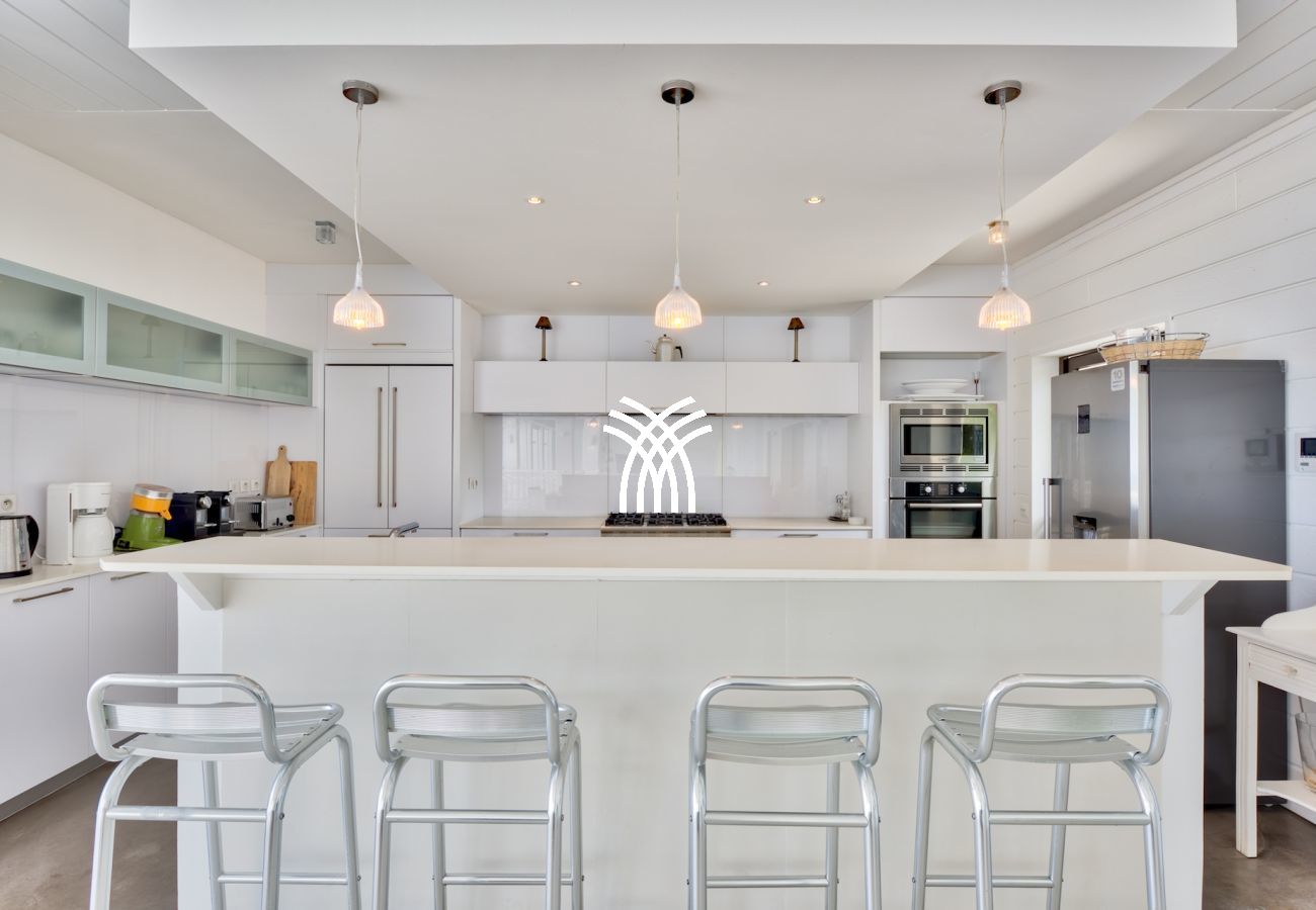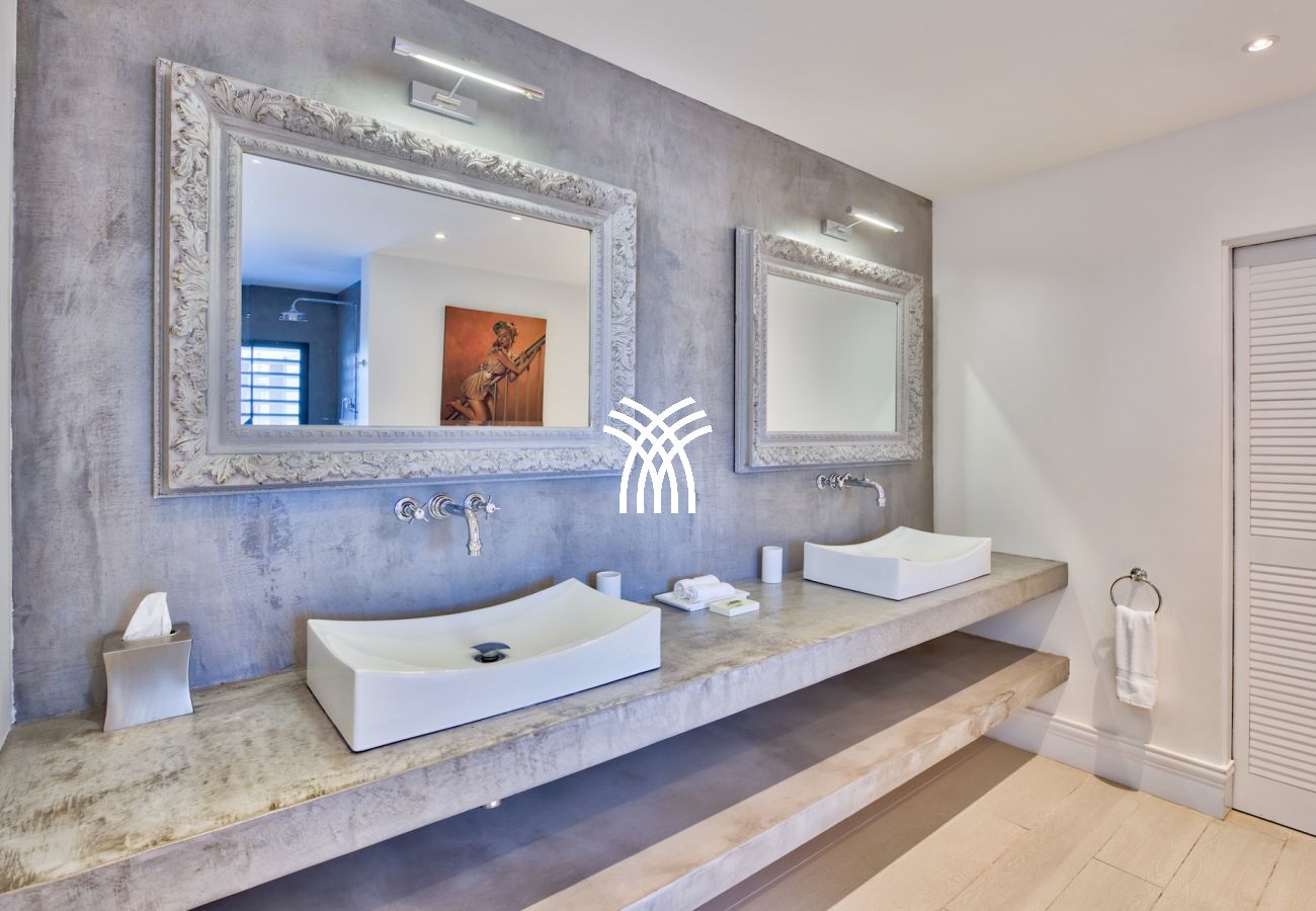 Cette fabuleuse villa contemporaine de 6 chambres, construite sur deux niveaux est composée, au niveau rez-de-chaussée d’une immense pièce à vivre comprenant une cuisine gastronomique équipée d’éléments de la marque Viking attenante au coin salle à manger et sur l’autre aile de la pièce, au salon majestueux, toute la maison est meublée avec des pièces uniques de designers du moment comme Philippe Stark, Manutti, Blanc D'Ivoire qui se sont partage la tâche.