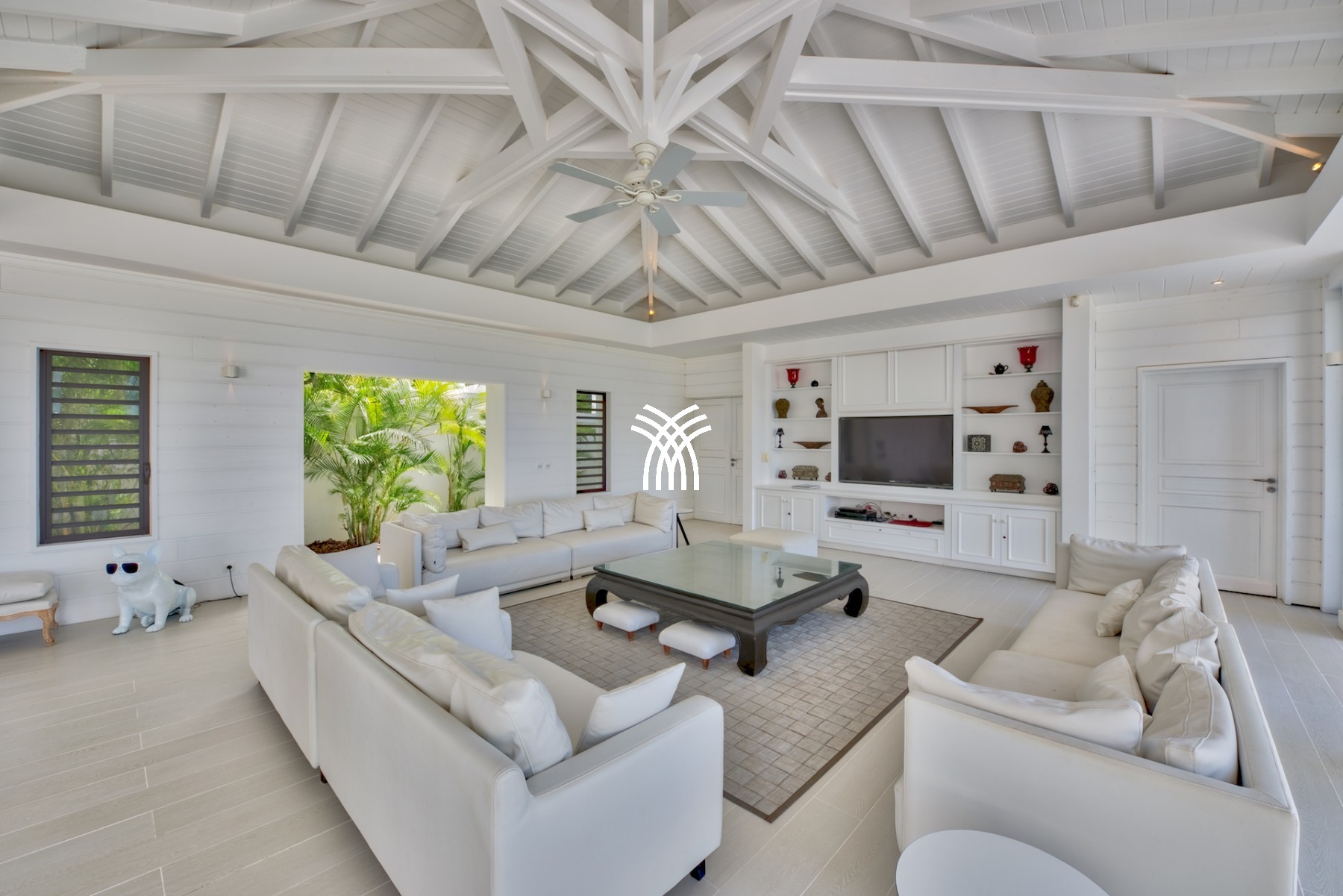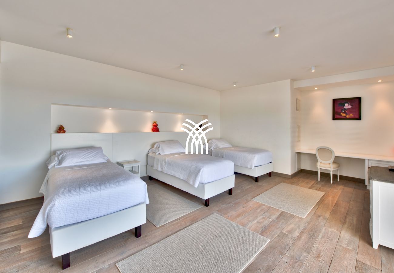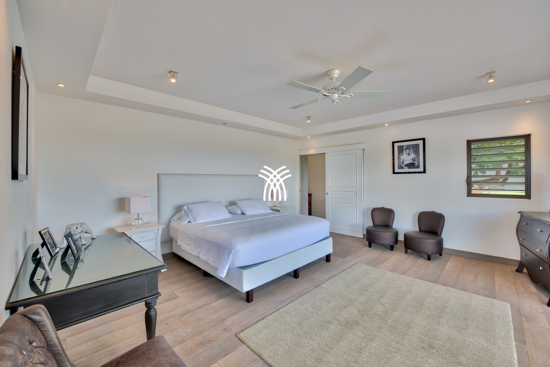Cette fabuleuse villa contemporaine de 6 chambres, construite sur deux niveaux est composée, au niveau rez-de-chaussée d’une immense pièce à vivre comprenant une cuisine gastronomique équipée d’éléments de la marque Viking attenante au coin salle à manger et sur l’autre aile de la pièce, au salon majestueux, toute la maison est meublée avec des pièces uniques de designers du moment comme Philippe Stark, Manutti, Blanc D'Ivoire qui se sont partage la tâche.