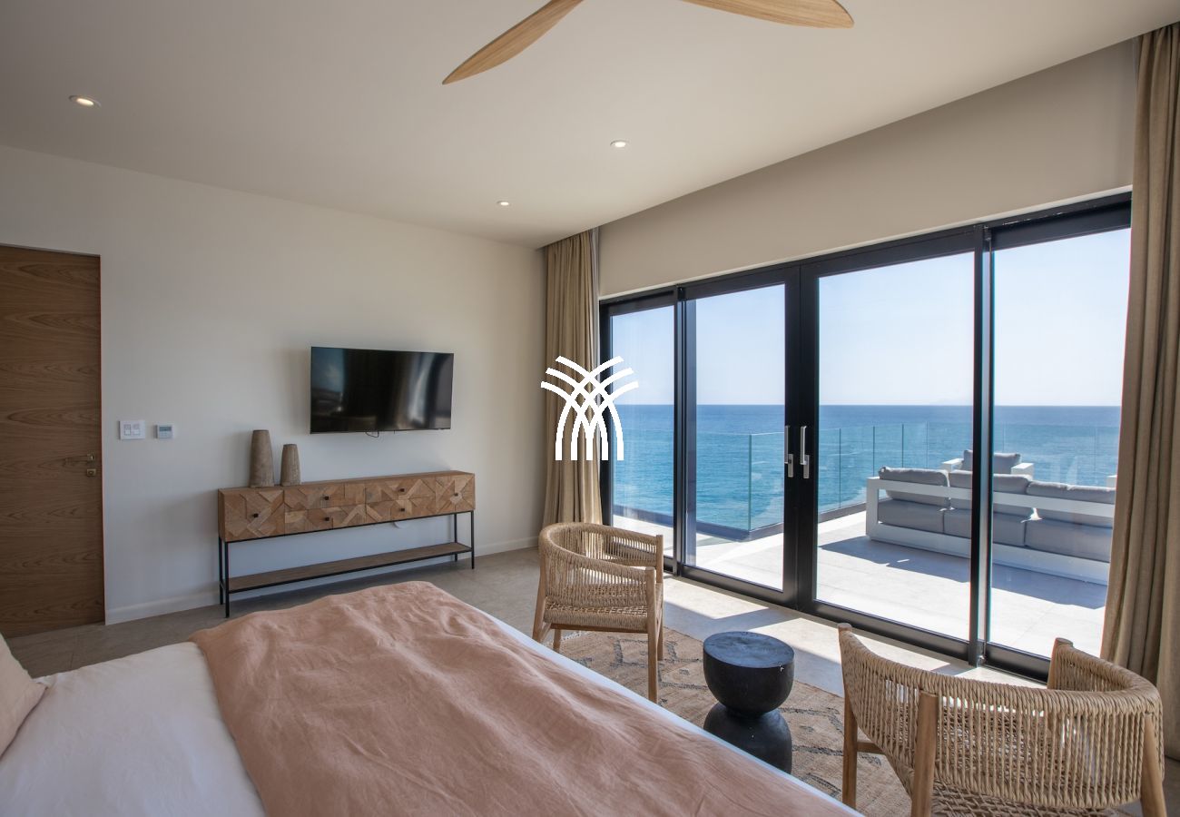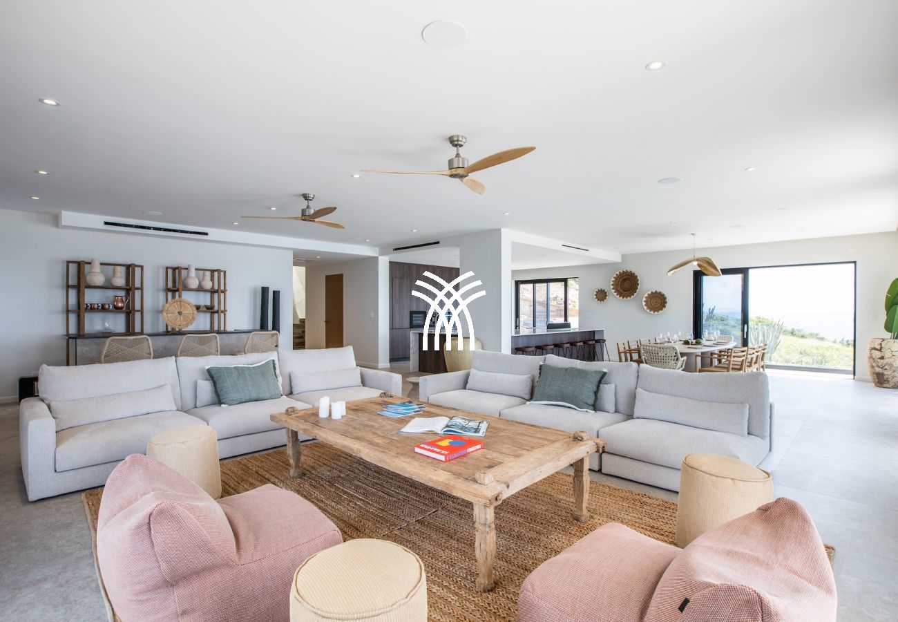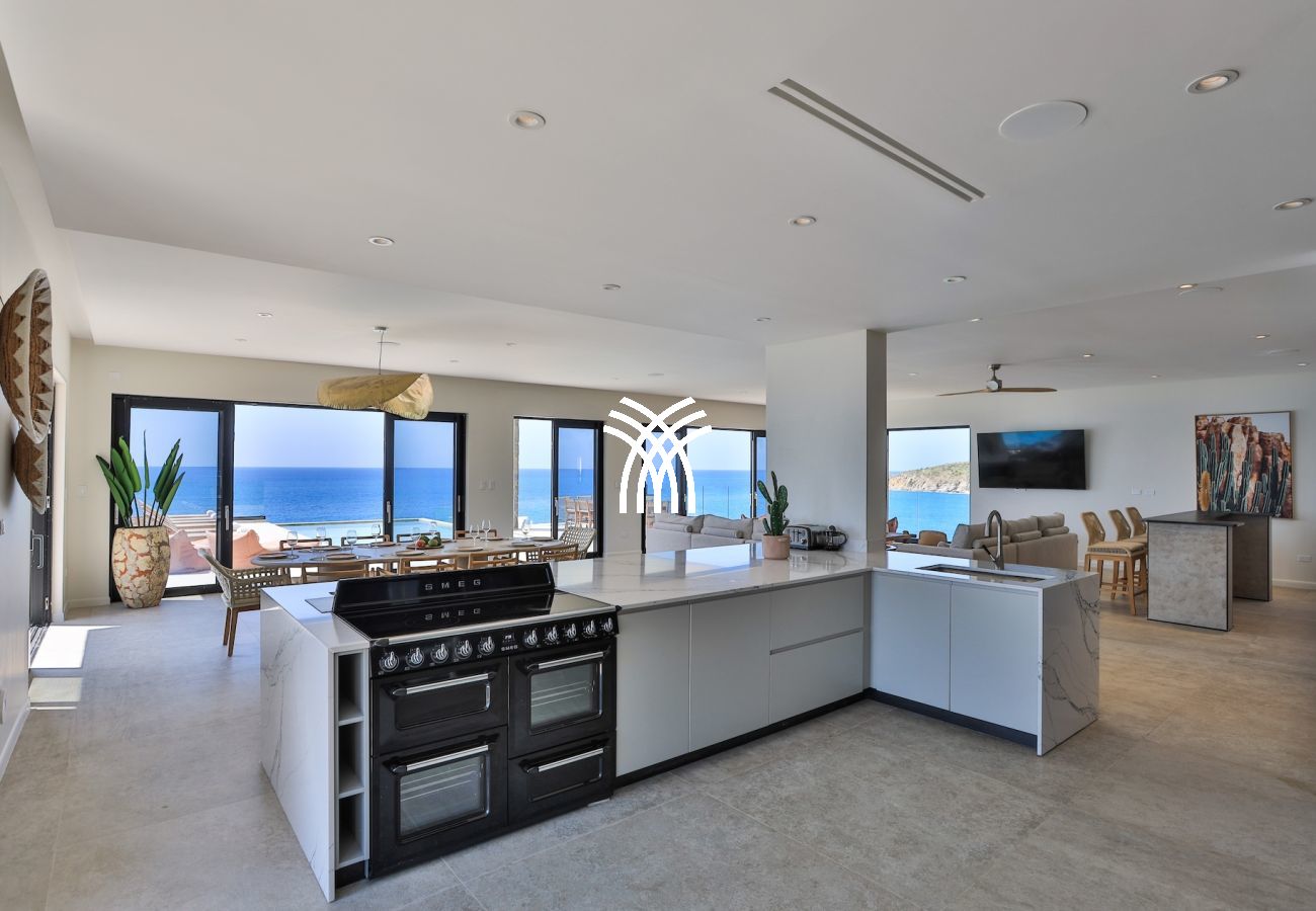 Dès l’entrée, la Villa Aqua Vista séduit par son architecture minimaliste et ses lignes épurées. Inondée de lumière naturelle grâce à ses larges baies vitrées, elle offre une atmosphère sereine et élégante, avec un panorama à couper le souffle sur l’océan. Sa décoration intérieure sobre, dans des tons neutres, s’accorde parfaitement à l’environnement naturel de la baie et met en valeur un mobilier haut de gamme.