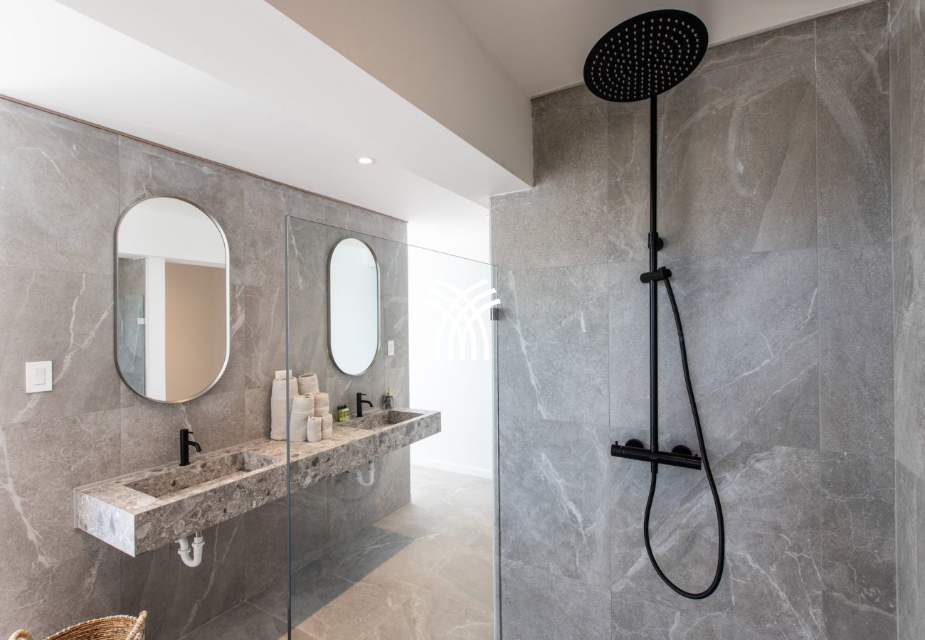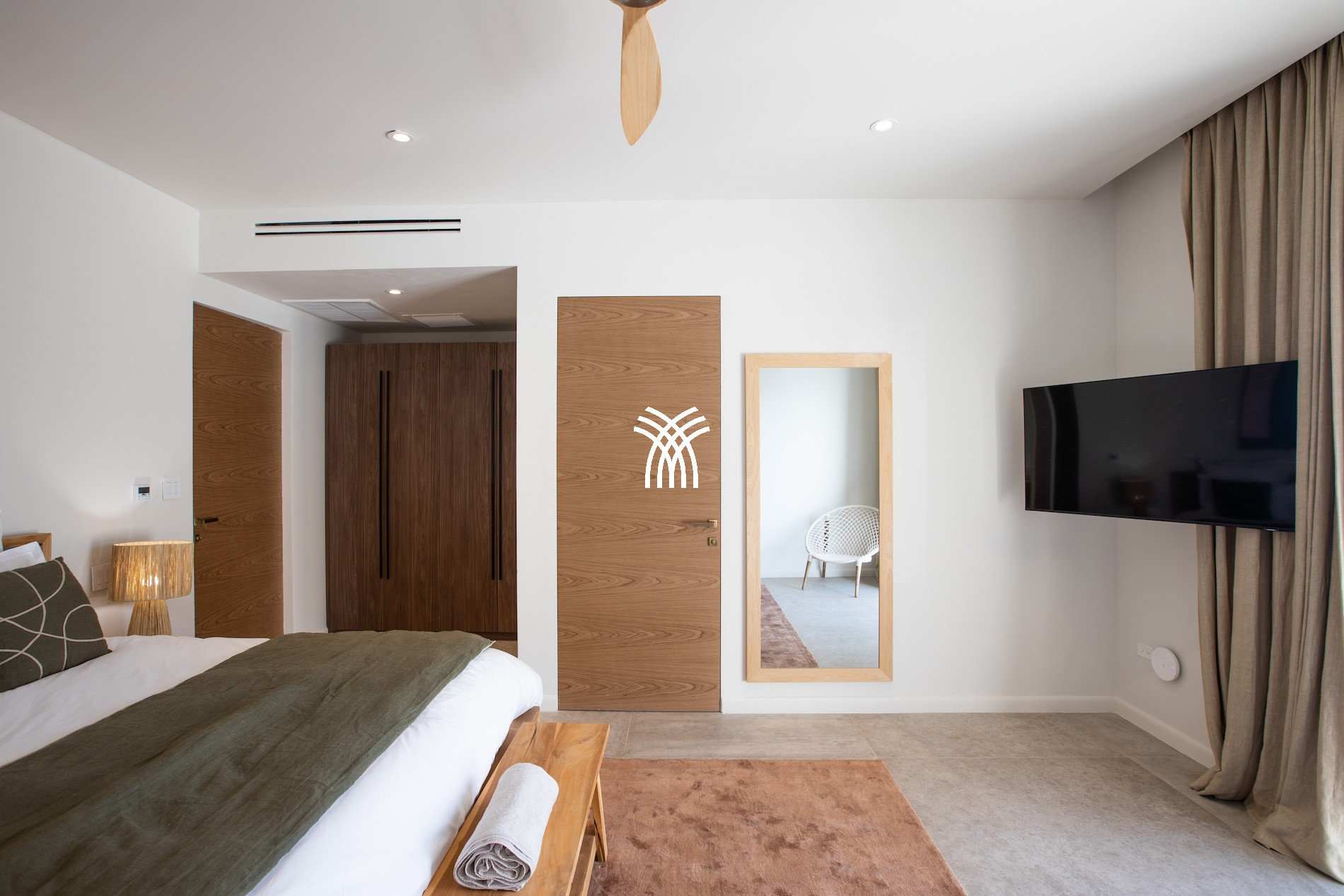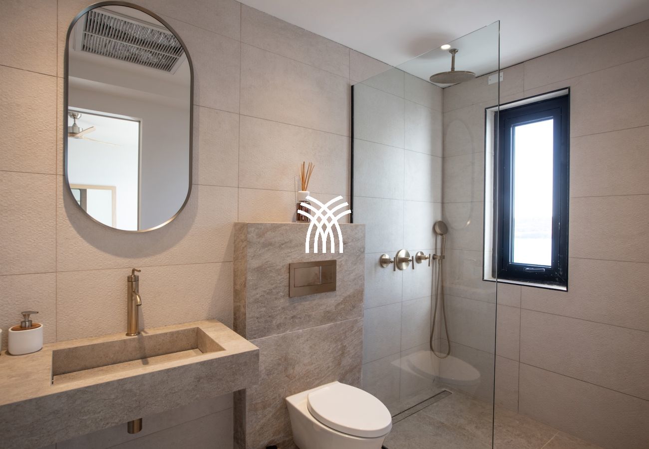 Dès l’entrée, la Villa Aqua Vista séduit par son architecture minimaliste et ses lignes épurées. Inondée de lumière naturelle grâce à ses larges baies vitrées, elle offre une atmosphère sereine et élégante, avec un panorama à couper le souffle sur l’océan. Sa décoration intérieure sobre, dans des tons neutres, s’accorde parfaitement à l’environnement naturel de la baie et met en valeur un mobilier haut de gamme.
