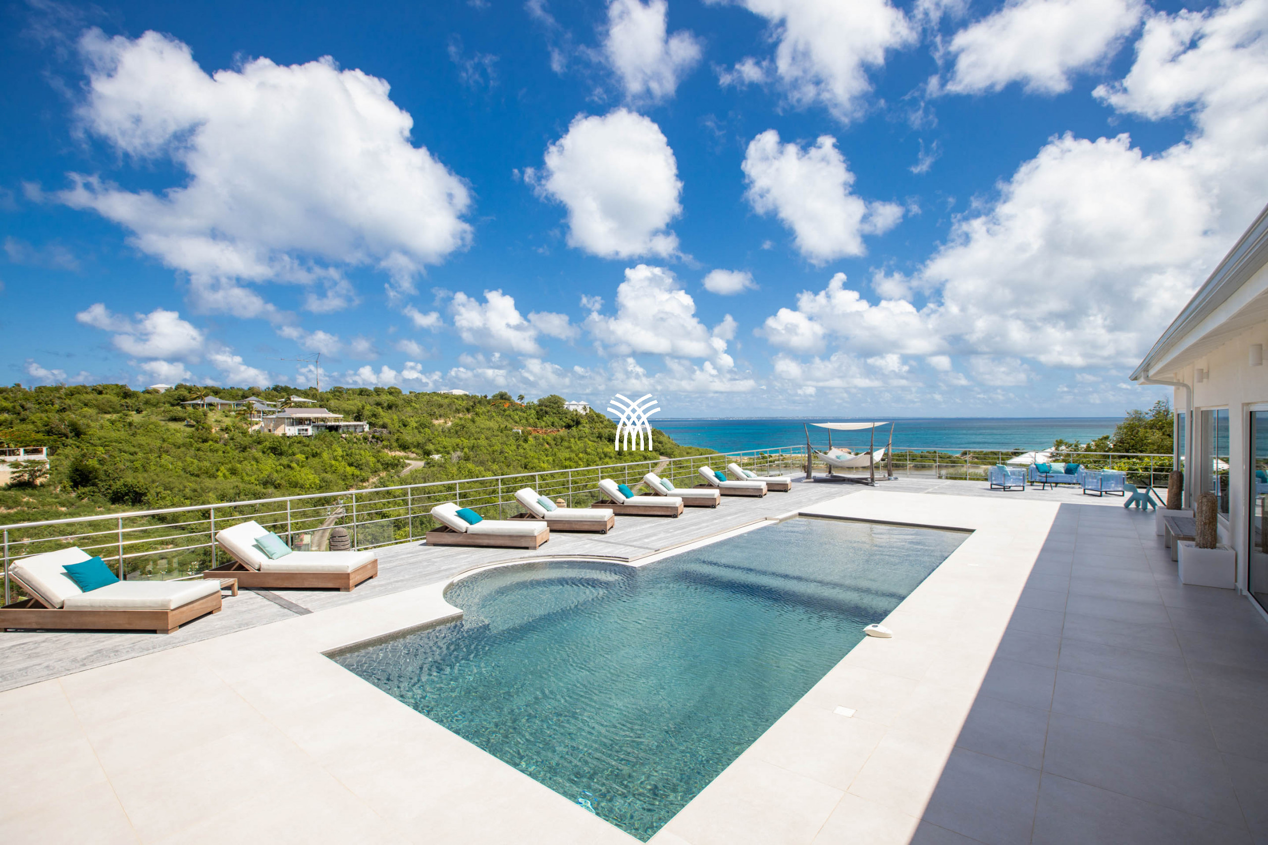 L’espace extérieur de cette villa de prestige est tout simplement exceptionnel : une immense piscine chauffée face à la mer, un jacuzzi, plusieurs belvédères et terrasses aménagées invitent à la détente et au farniente sous le soleil des Caraïbes.