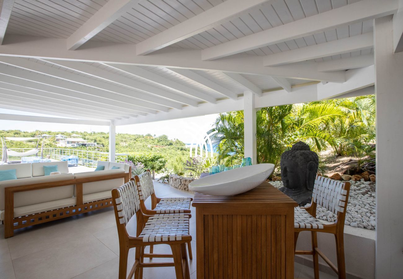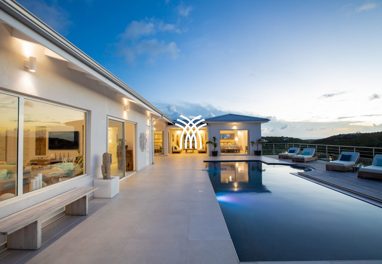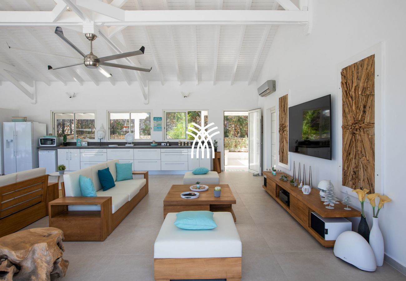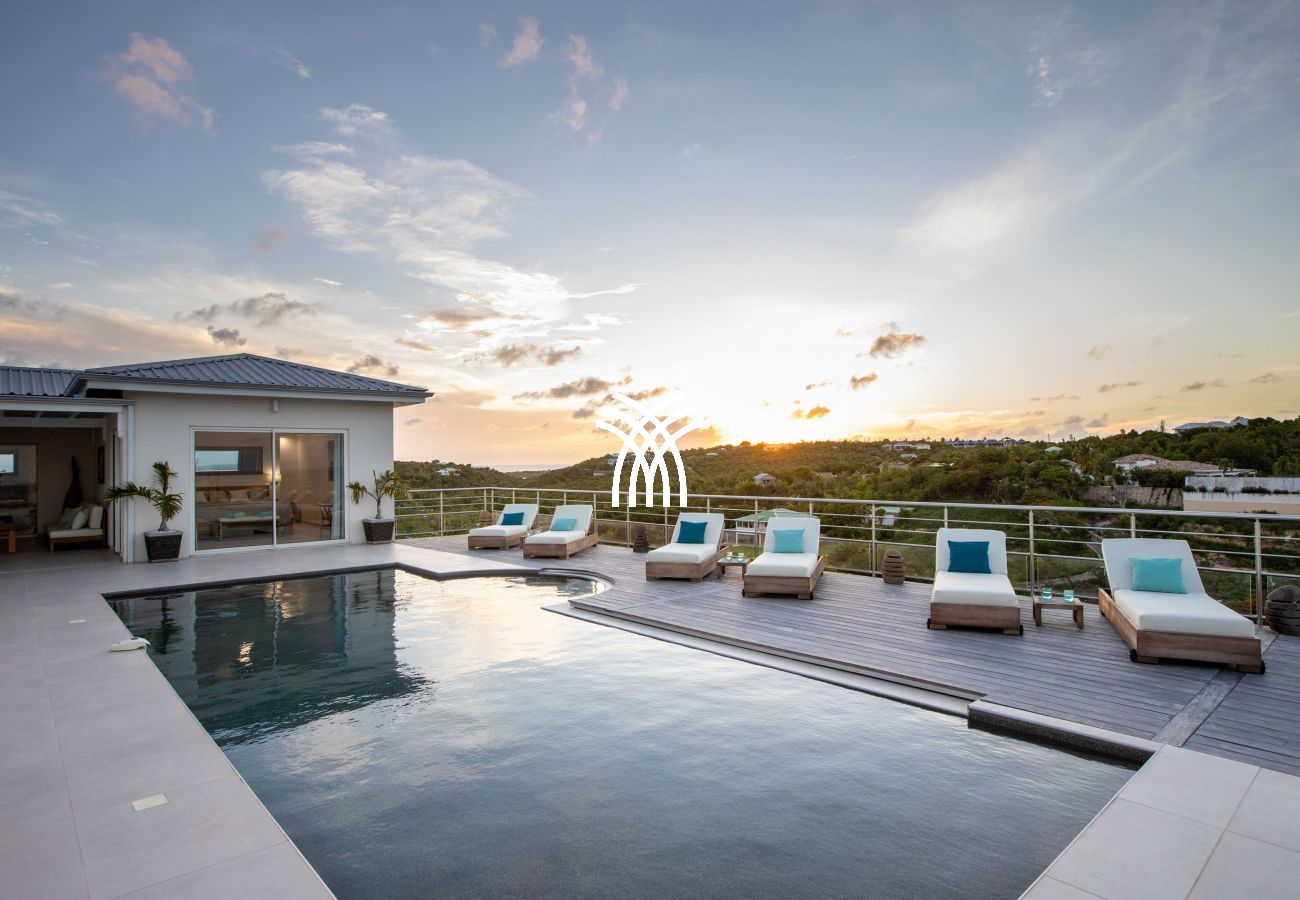 Située aux Terres Basses, la Villa Sandyline St Martin est accrochée au flan de la colline, tournée vers l’horizon de la mer des Caraïbes.