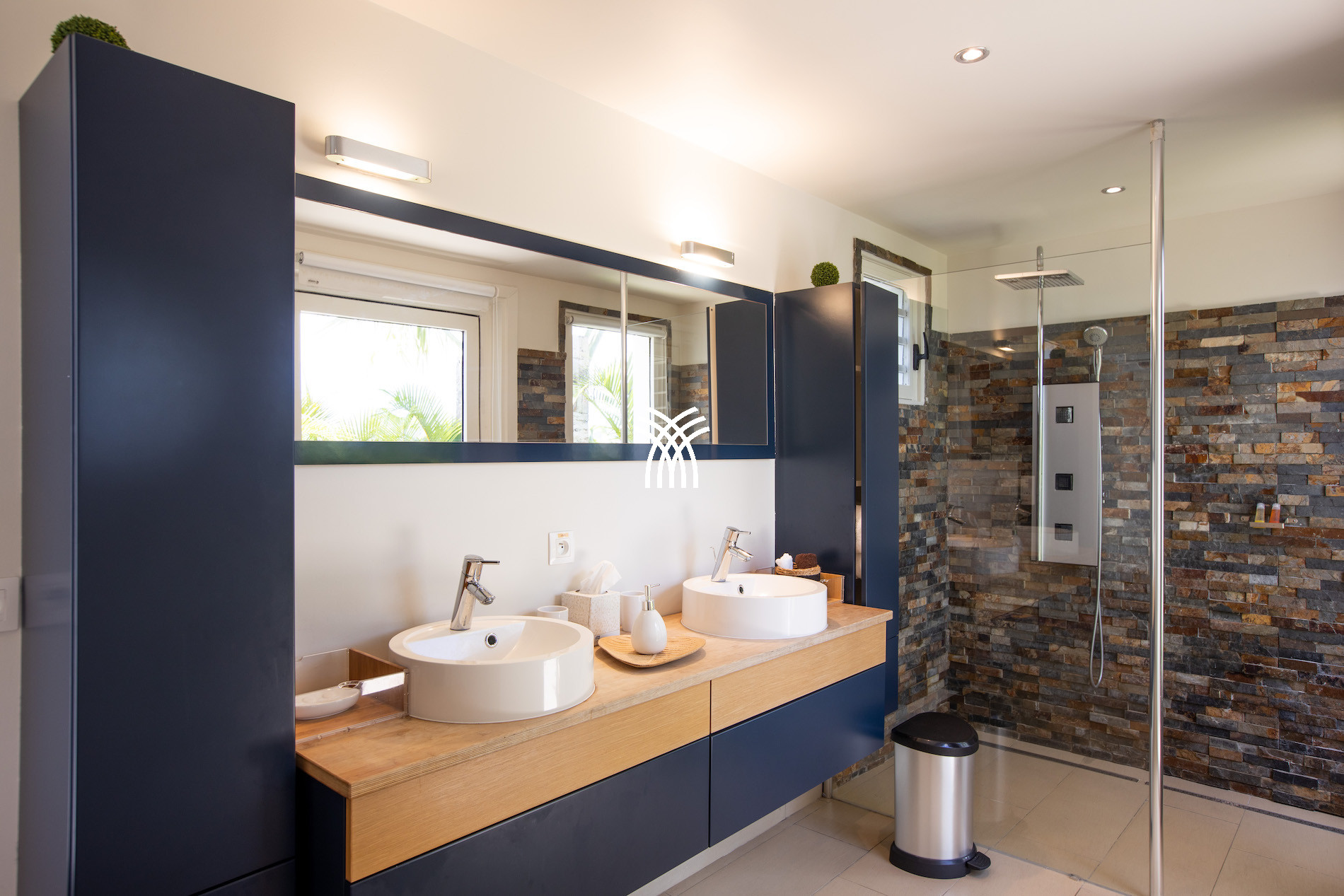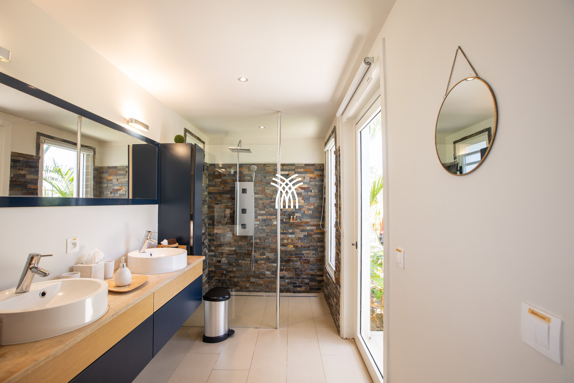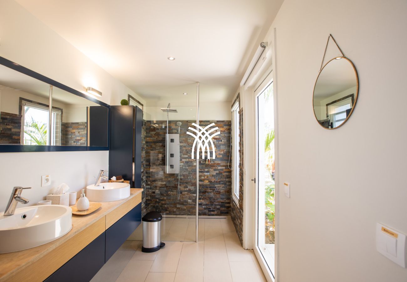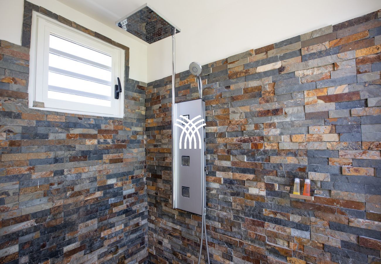 La Villa Bahia Blue propose 4 chambres de taille égale, toutes confortables et parfaitement aménagées. Deux chambres sont accessibles depuis l’intérieur de la maison et offrent une vue agréable sur le jardin tropical. Les deux autres chambres sont situées au niveau de la piscine inférieure, accessibles par l’extérieur. Une des chambres dispose même d’une douche extérieure sur sa terrasse privée, pour une expérience unique en plein air.