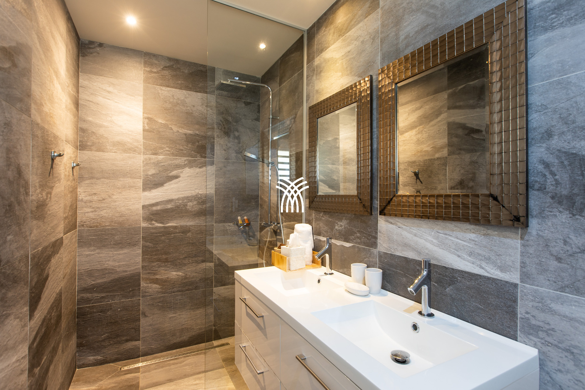 Les 4 chambres de cette villa de luxe ont toutes leur salles de bains attenantes et sont de même taille.