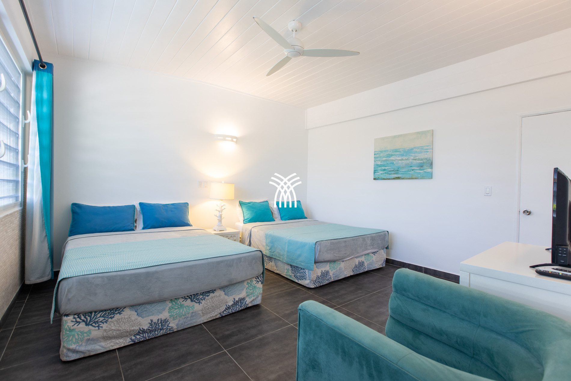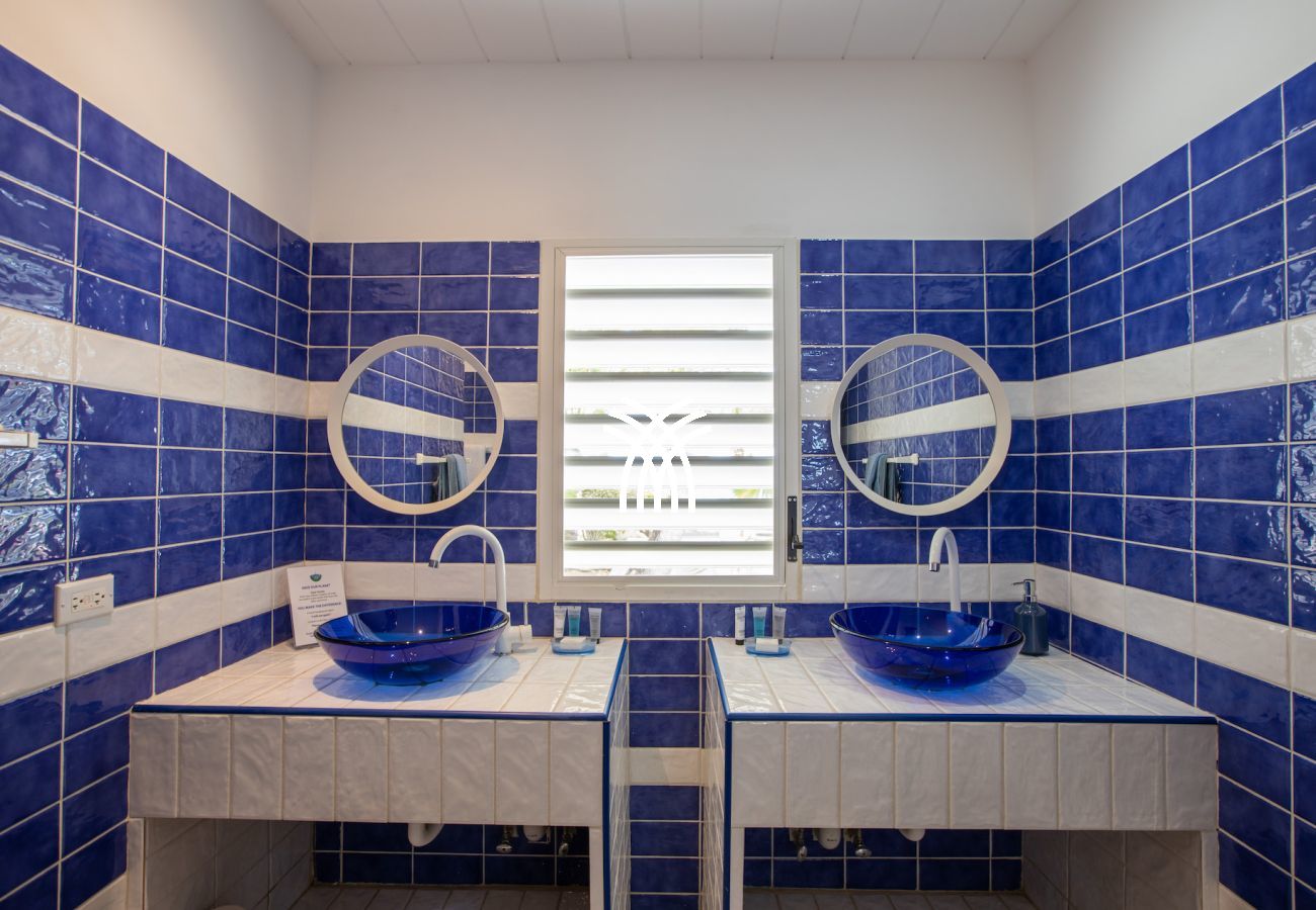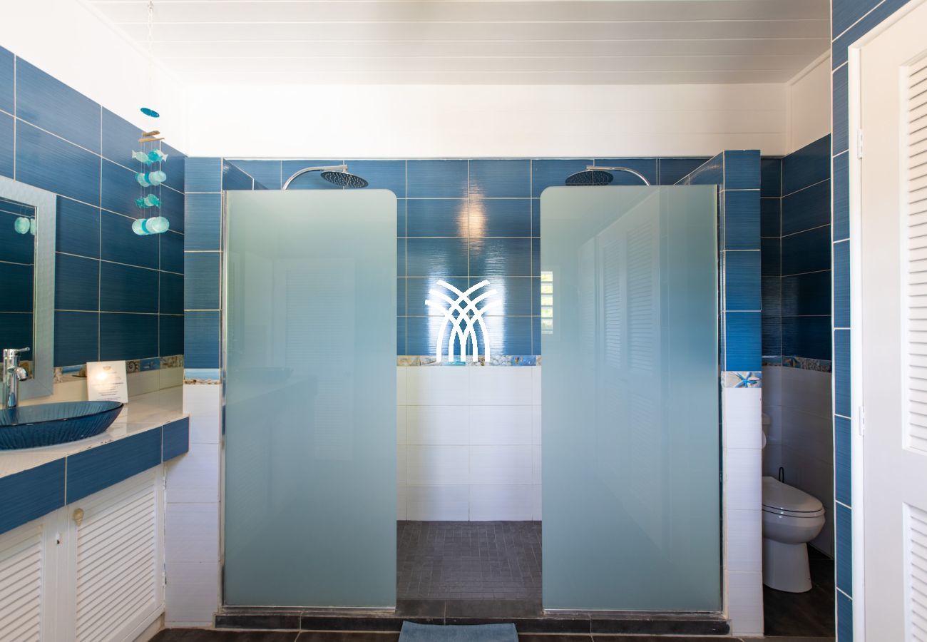 La Villa Bahia Blue propose 4 chambres de taille égale, toutes confortables et parfaitement aménagées. Deux chambres sont accessibles depuis l’intérieur de la maison et offrent une vue agréable sur le jardin tropical. Les deux autres chambres sont situées au niveau de la piscine inférieure, accessibles par l’extérieur. Une des chambres dispose même d’une douche extérieure sur sa terrasse privée, pour une expérience unique en plein air.
