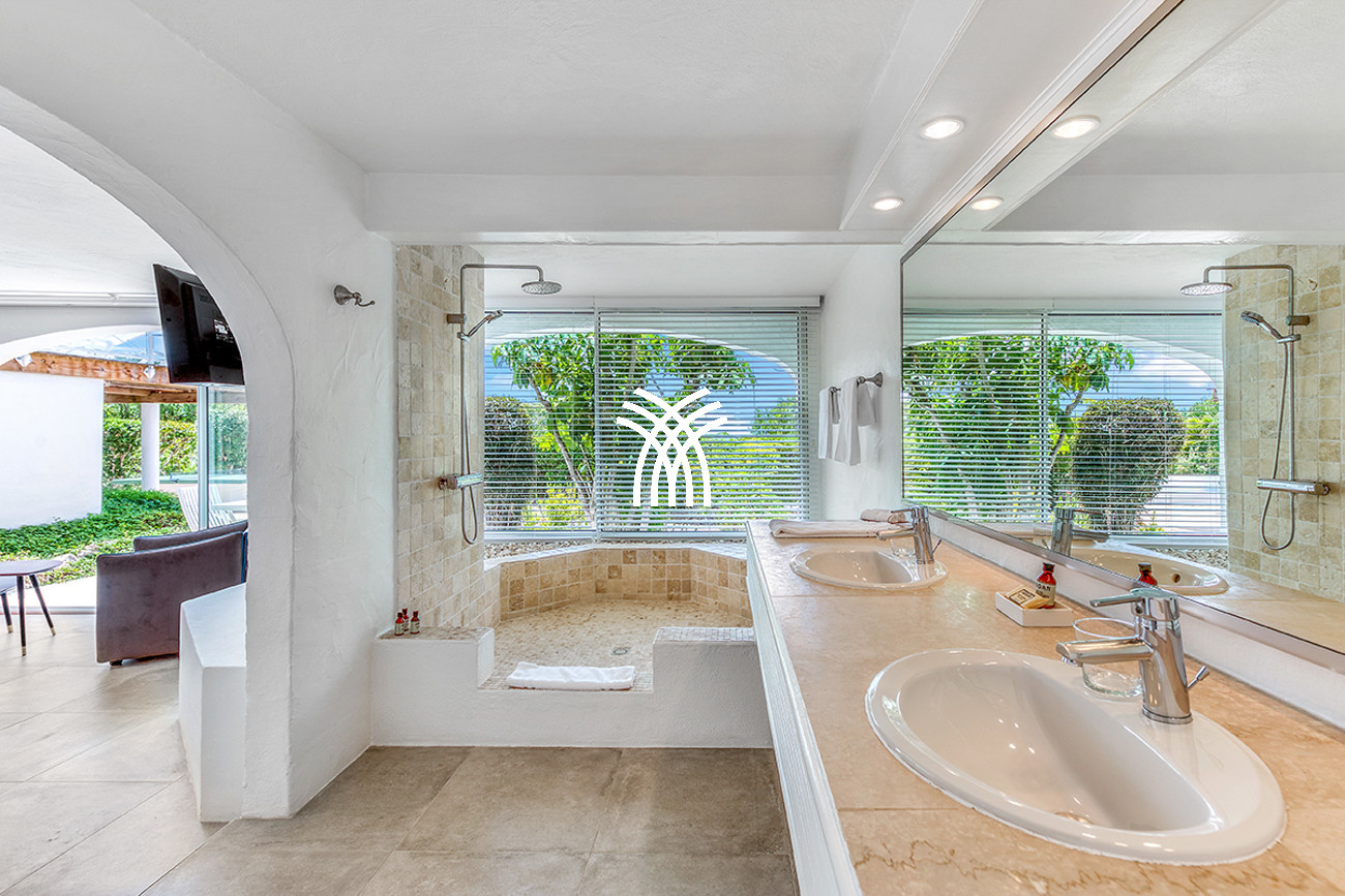 La Villa Belle Fontaine propose 5 chambres spacieuses et confortables, dont 3 avec vue mer et 2 avec vue sur le jardin. Toutes les chambres disposent de salles de bains privatives au style spa, avec douches à l’italienne ouvertes sur l’extérieur ou sur un patio privé.