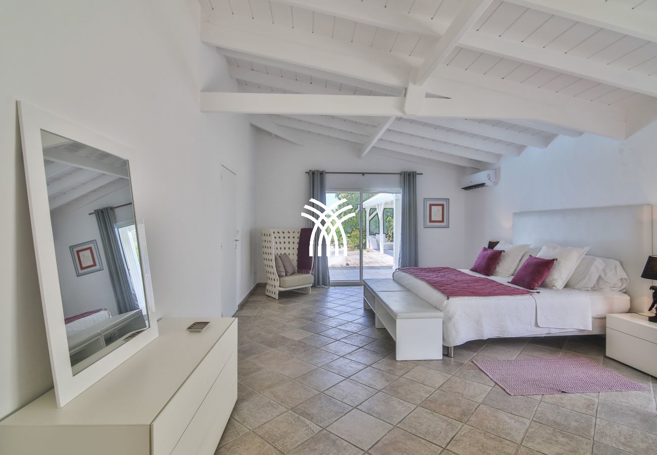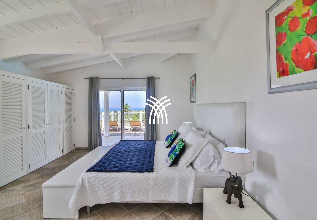 Les trois chambres de la Villa Greystone, toutes avec accès direct à la terrasse, sont réparties dans des unités séparées pour garantir à chacun confort et intimité. Décorées avec sobriété et élégance, elles offrent une literie haut de gamme et des salles de bain privatives, idéales pour accueillir couples, familles ou amis en quête de sérénité. La villa peut ainsi être louée en configuration deux ou trois chambres selon vos besoins, ce qui en fait une location de villa de luxe à Saint-Martin parfaitement flexible et adaptée à tout type de séjour.