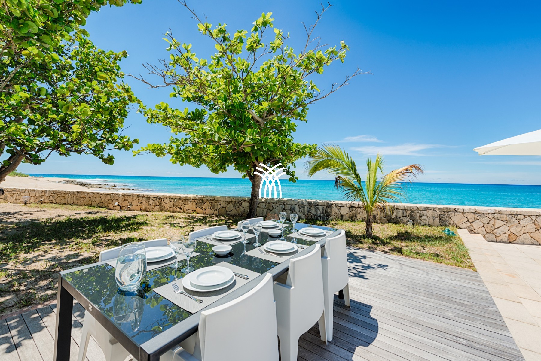 La villa Ecume des Jours St Martin jouit d’un emplacement exceptionnel en bord de mer, au bout de la plage de Baie aux Prunes. A partir de la terrasse de la piscine et de l’espace repas extérieur, agrémentés d’une terrasse couverte indépendante ,vous serez enchanté par les couchers de soleil féeriques et le spectacle de la mer des Caraïbes.