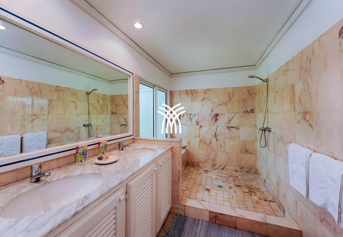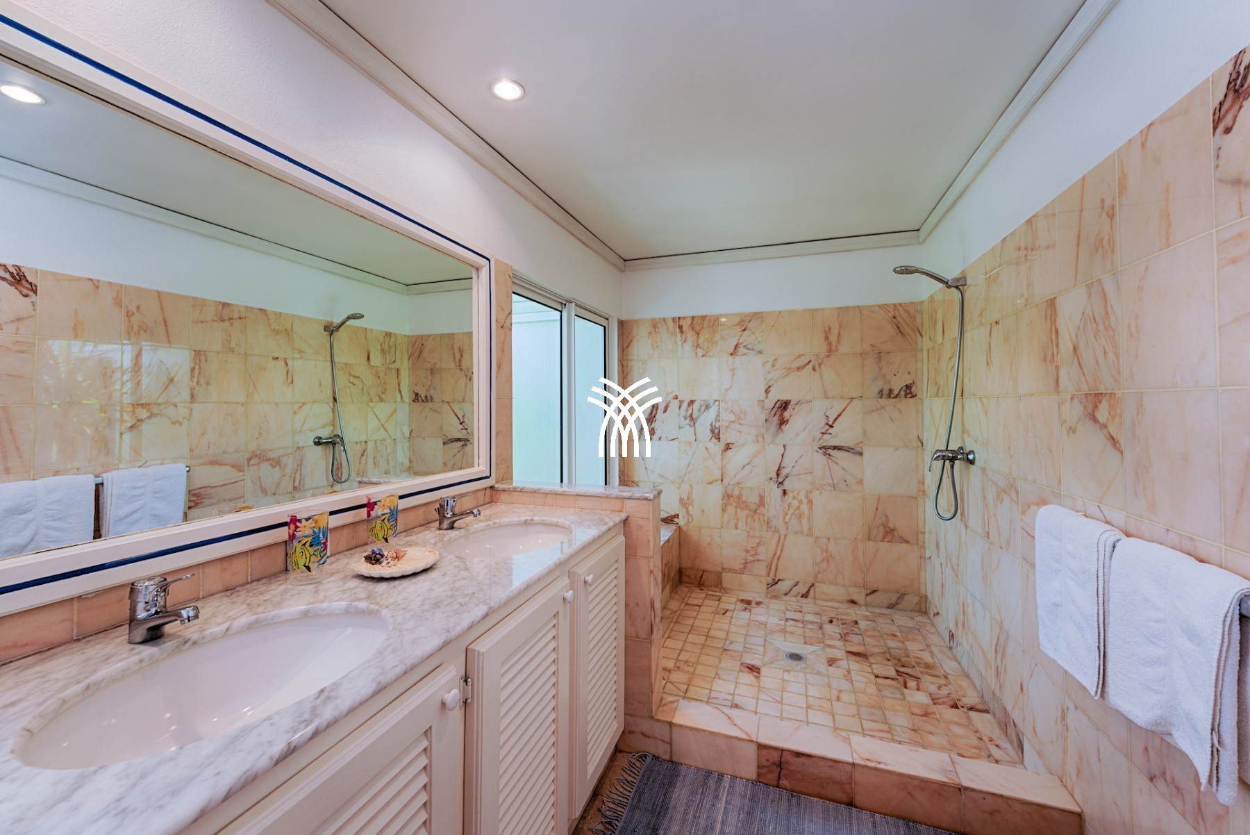 La Villa Bahia Blue propose 4 chambres de taille égale, toutes confortables et parfaitement aménagées. Deux chambres sont accessibles depuis l’intérieur de la maison et offrent une vue agréable sur le jardin tropical. Les deux autres chambres sont situées au niveau de la piscine inférieure, accessibles par l’extérieur. Une des chambres dispose même d’une douche extérieure sur sa terrasse privée, pour une expérience unique en plein air.