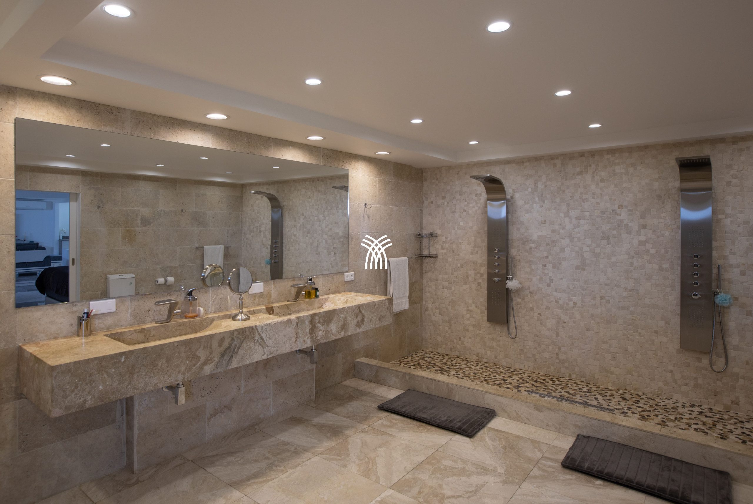 Cette villa d’exception dispose de 5 chambres, toutes avec salles de bains privatives. Trois chambres sont situées au niveau principal, avec un accès direct à la magnifique piscine à débordement, idéale pour se détendre face à la mer. Les deux autres chambres se trouvent au niveau inférieur, chacune avec un accès extérieur indépendant.