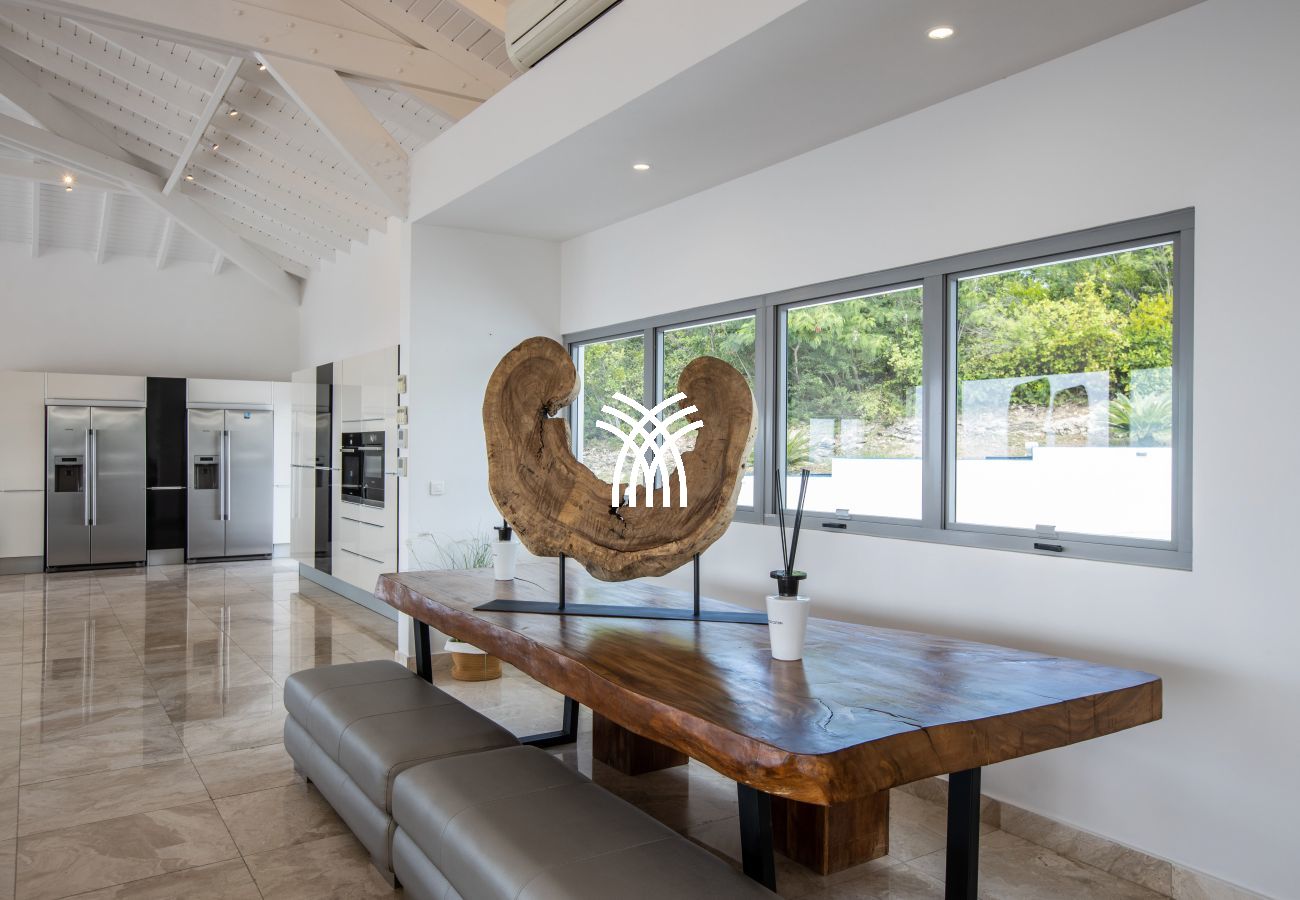 Entièrement climatisée, la Villa La Dacha propose un savant mélange de style contemporain et de charme caribéen. Les espaces intérieurs, baignés de lumière naturelle, se distinguent par leur élégance et leur confort absolu. Les hauts plafonds, le mobilier raffiné et les larges ouvertures sur l’extérieur créent une ambiance chaleureuse et luxueuse.