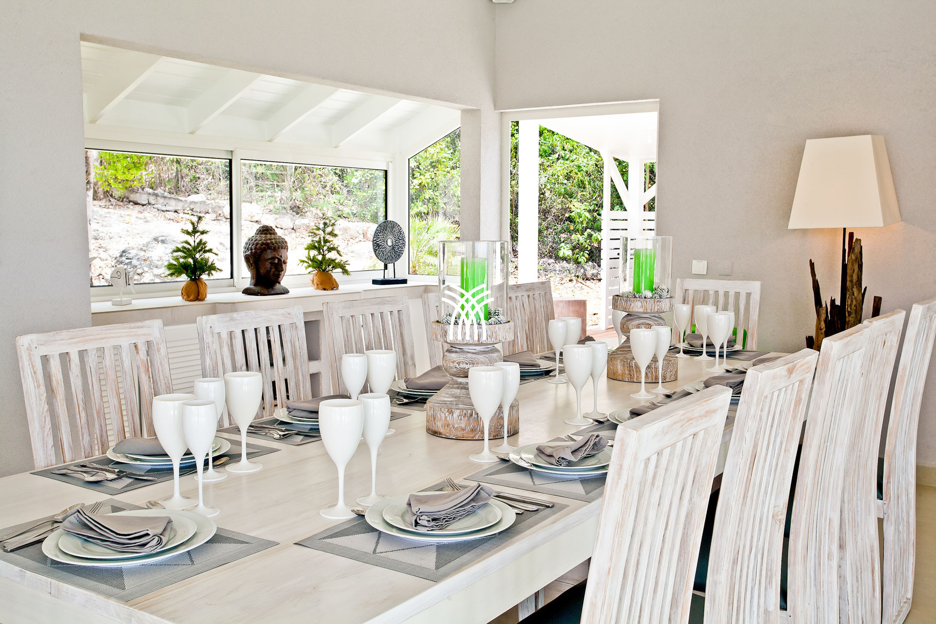 L’extérieur de cette villa de luxe à louer à Saint Martin est un véritable havre de paix. La grande terrasse aménagée avec salon extérieur d’inspiration marocaine, piscine à débordement et salle à manger en plein air permet de vivre pleinement l’art de vivre caribéen, entre détente et convivialité.