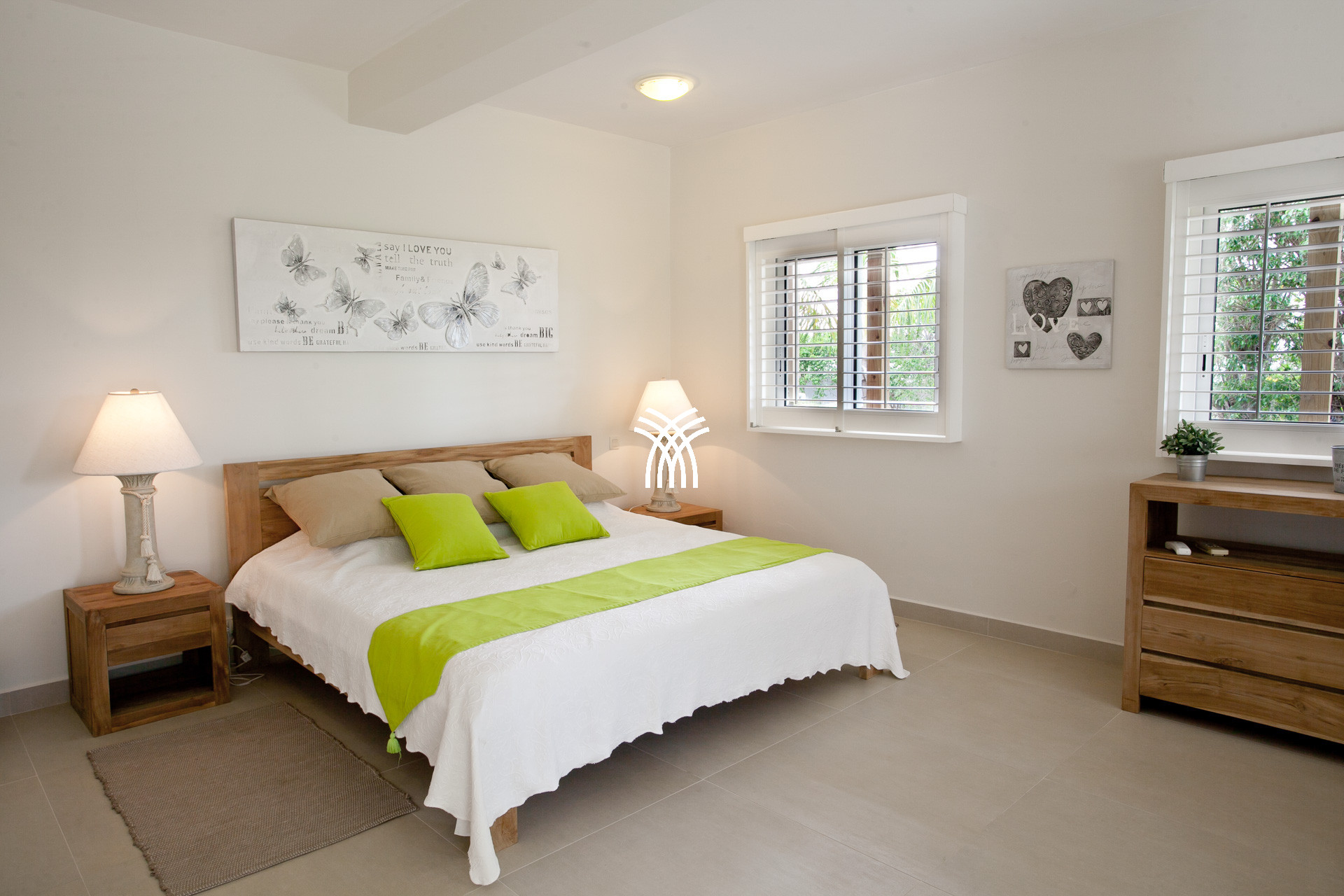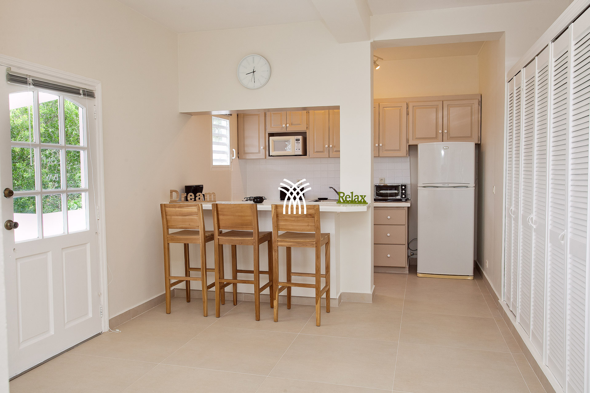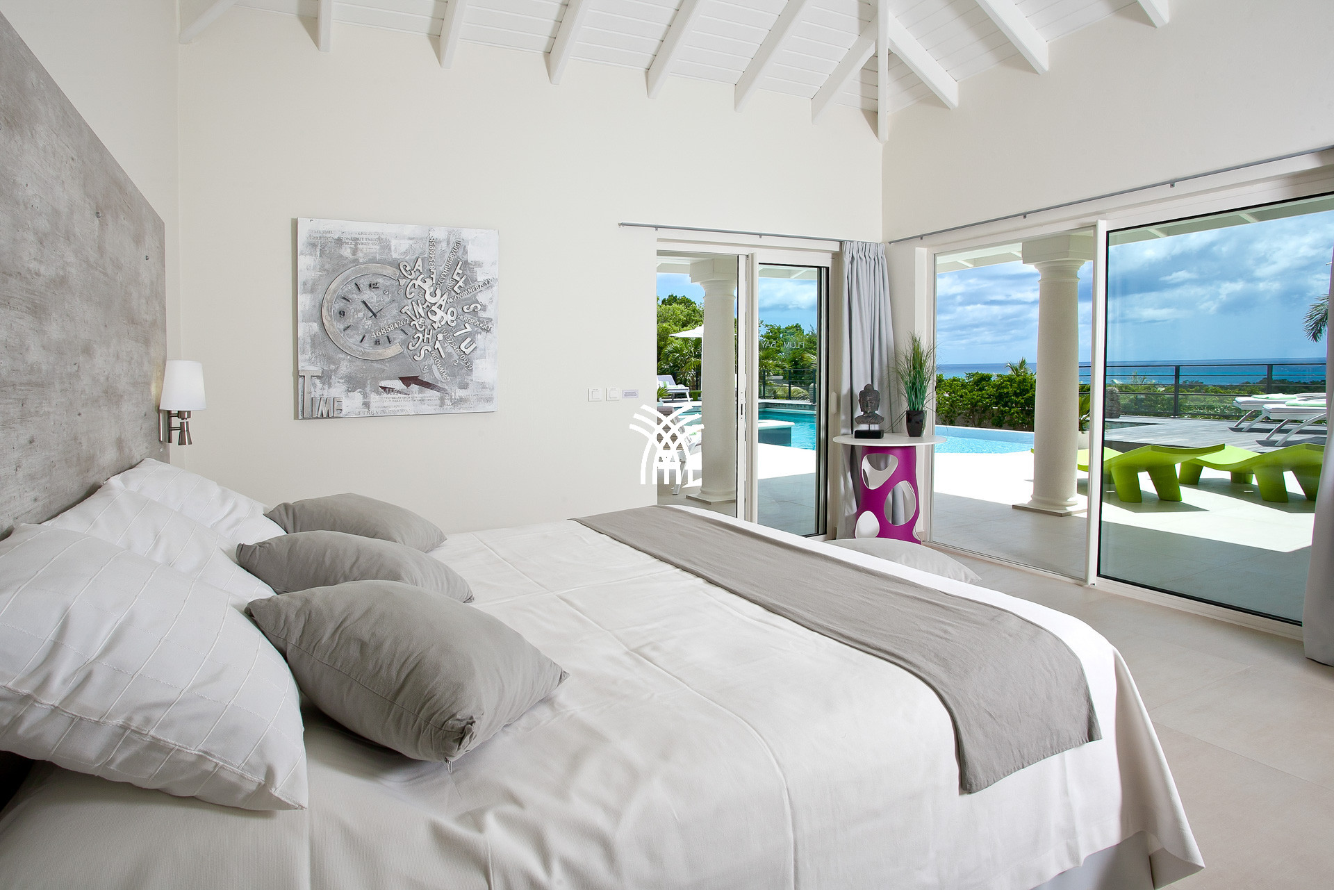 4 chambres de tailles égales ont la vue sur la mer des Caraïbes et sont au niveau de la terrasse de la piscine. La 5ème chambre et sa salle de bains attenante sont au niveau inférieur avec vue sur la mer des Caraïbes. Cette chambre comprend aussi une kitchenette.