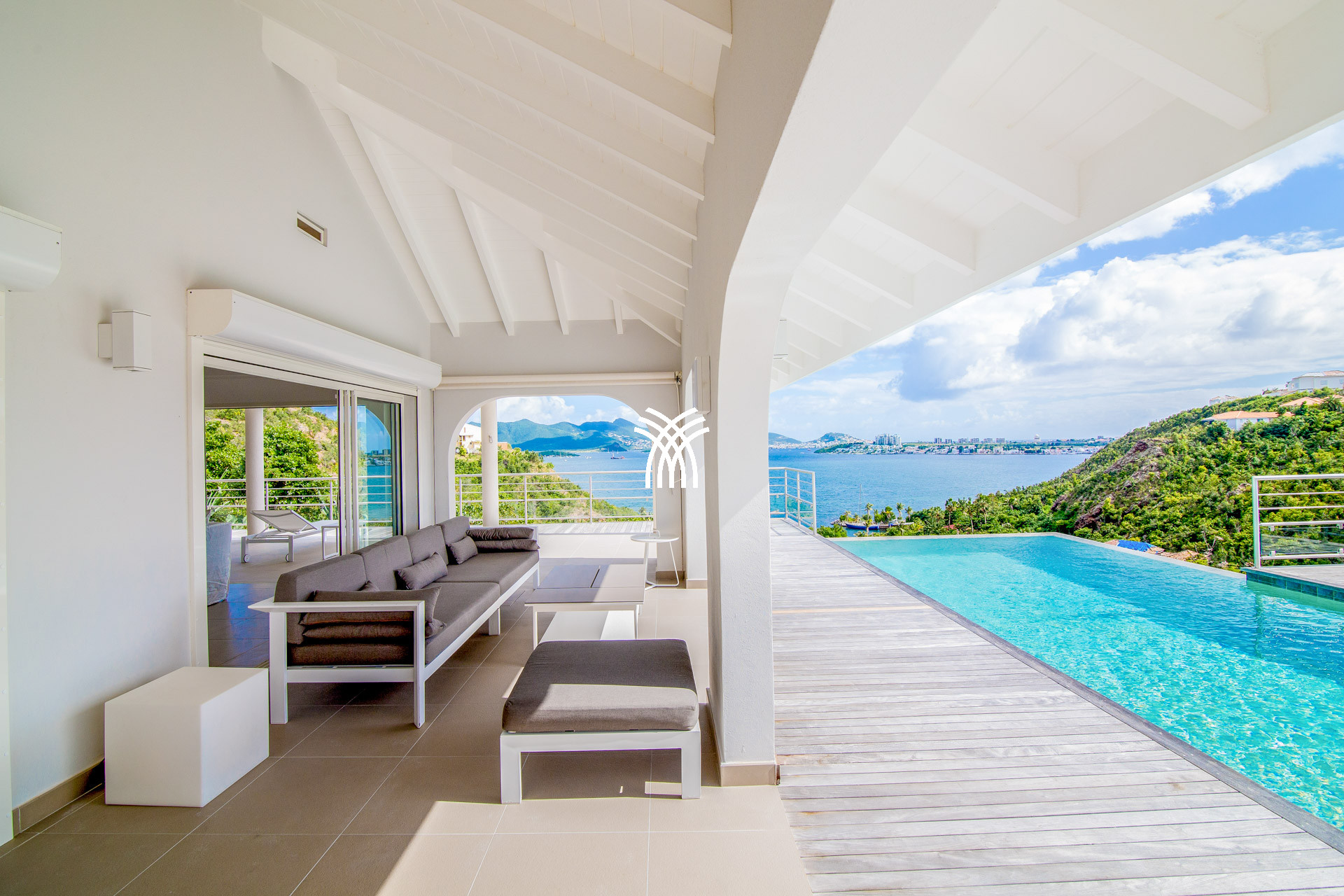 La Villa La Dacha est une villa de luxe à louer à Saint Martin, située au cœur des Terres Basses, l’un des quartiers les plus exclusifs et privés de l’île. Perchée à flanc de falaise, cette location villa luxe à Saint Martin offre une vue panoramique spectaculaire sur la mer des Caraïbes et l’île d’Anguilla.