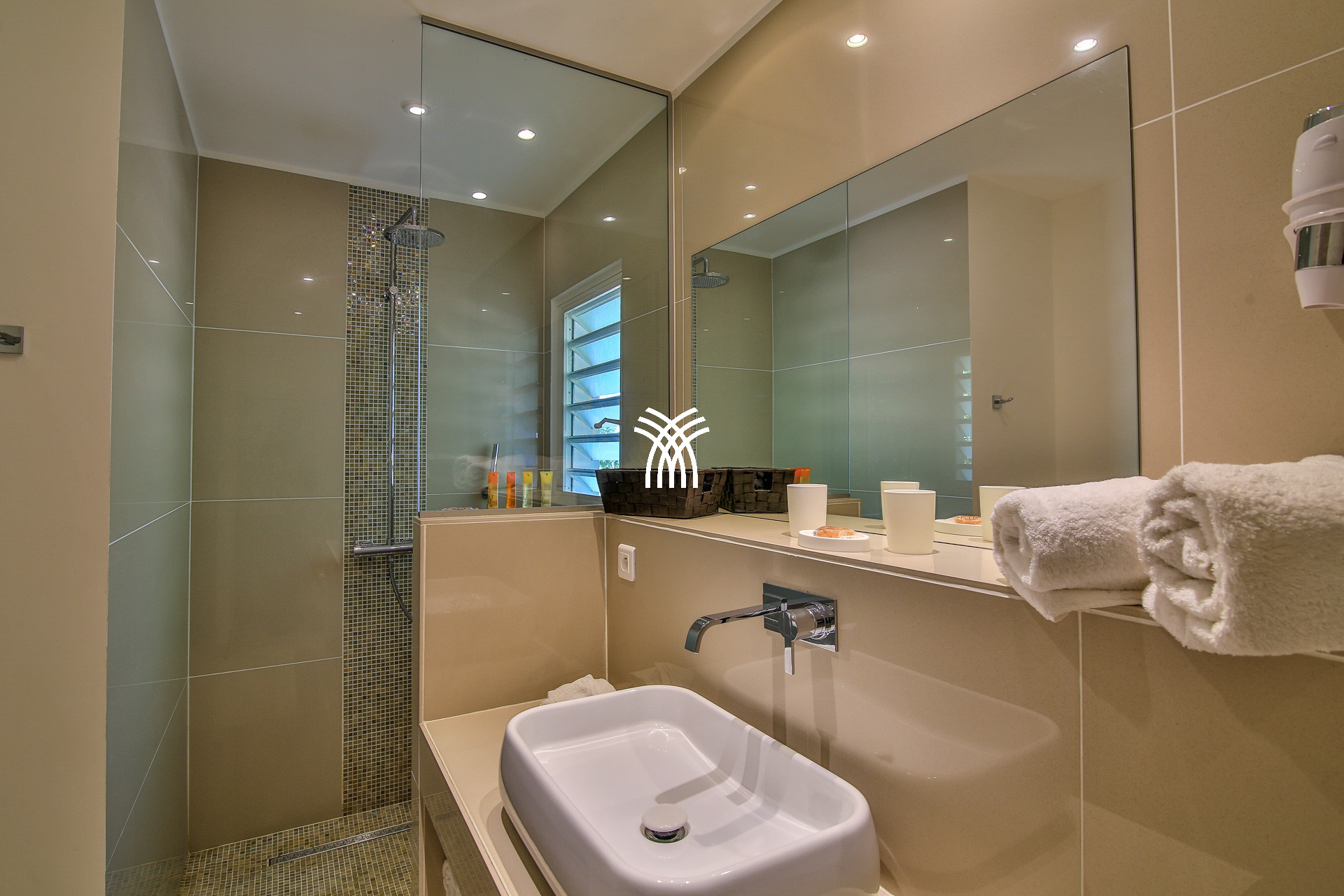 La suite principale est un véritable sanctuaire de luxe avec un lit king size, une terrasse privée et une salle de bain somptueuse. Certaines chambres disposent également de douches extérieures pour une expérience tropicale unique.