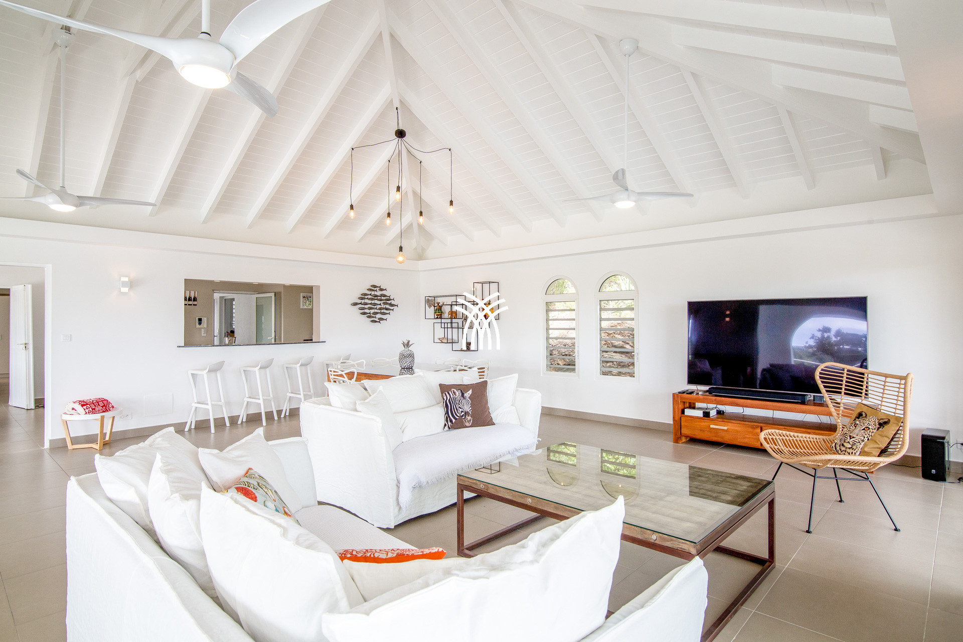 Entièrement climatisée, la Villa La Dacha propose un savant mélange de style contemporain et de charme caribéen. Les espaces intérieurs, baignés de lumière naturelle, se distinguent par leur élégance et leur confort absolu. Les hauts plafonds, le mobilier raffiné et les larges ouvertures sur l’extérieur créent une ambiance chaleureuse et luxueuse.