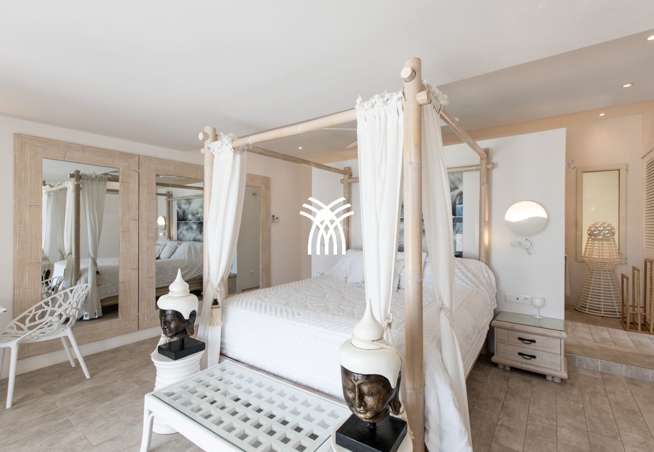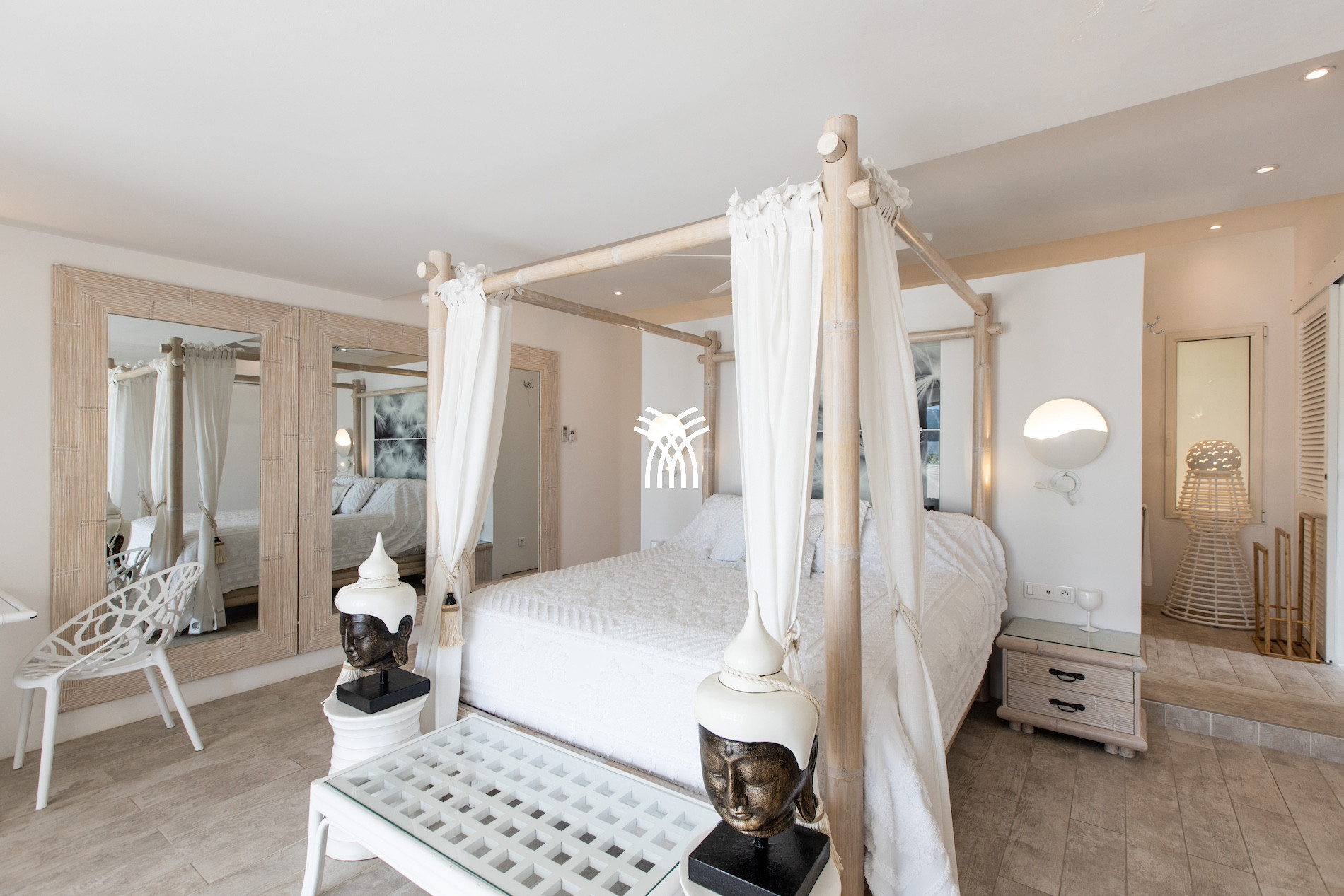 L'architecture de la villa privilégie les lignes épurées et les volumes généreux, où la lumière naturelle inonde les intérieurs grâce aux immenses baies vitrées. Le salon spacieux s'ouvre sur une terrasse spectaculaire où la piscine à débordement semble se fondre dans l'horizon azuré. La cuisine ouverte, dotée d'équipements haut de gamme, invite à partager des moments conviviaux face à une mer infinie. La fluidité entre intérieur et extérieur confère une sensation de liberté absolue, accentuée par le design sophistiqué et les matériaux nobles utilisés.