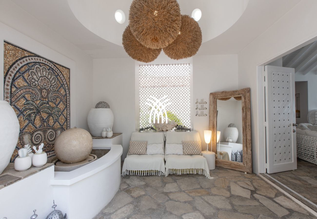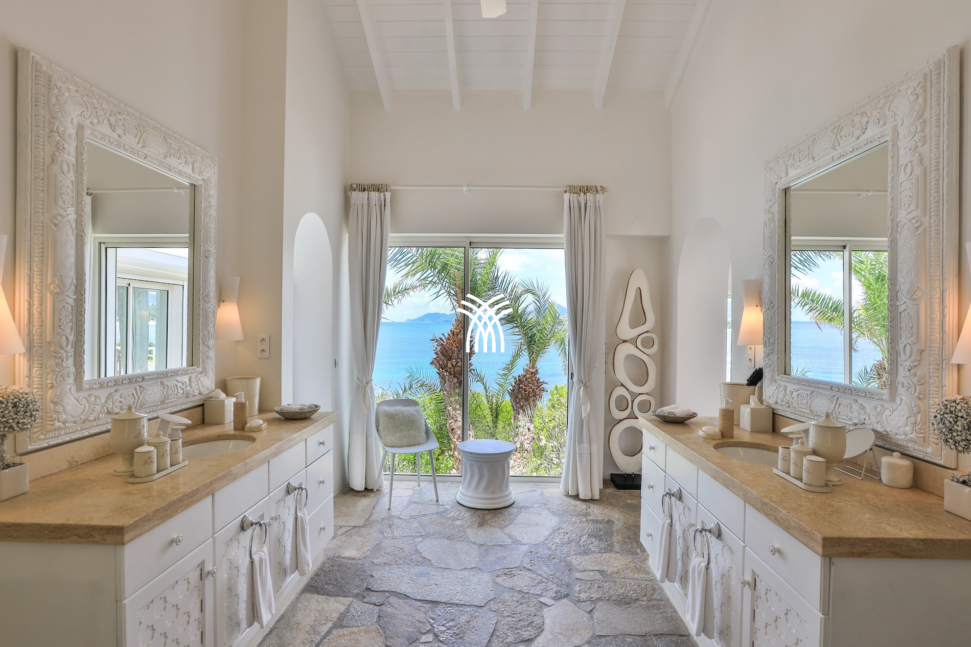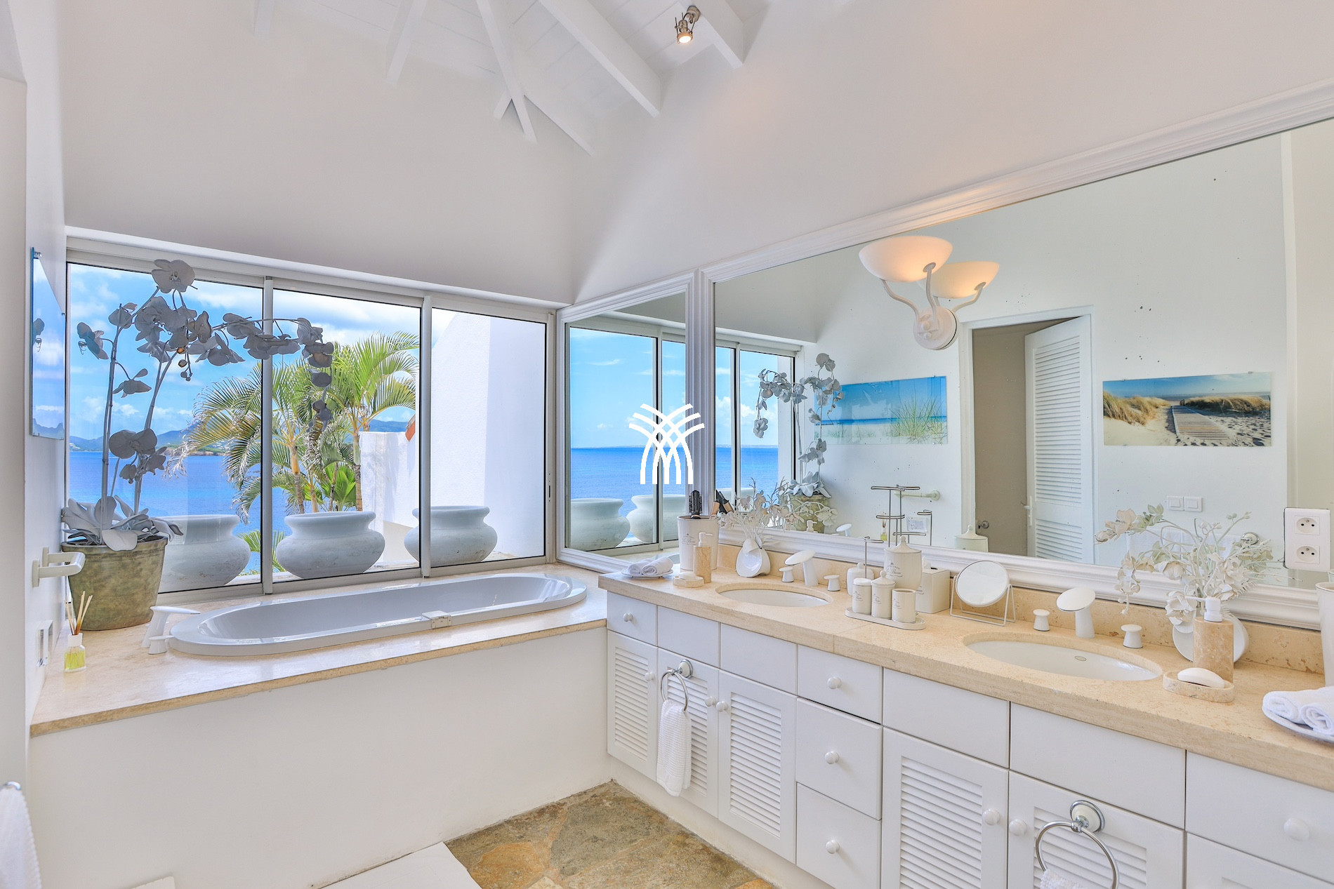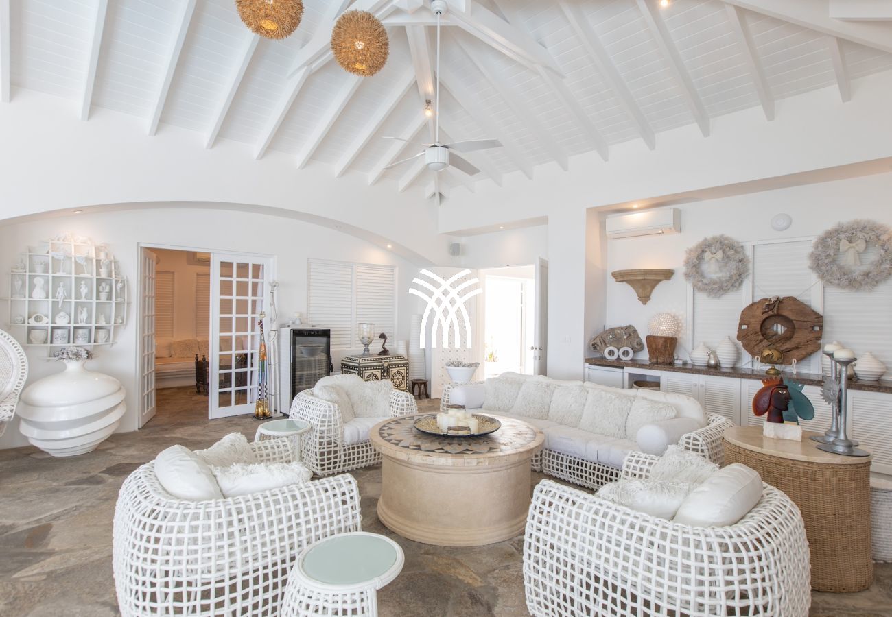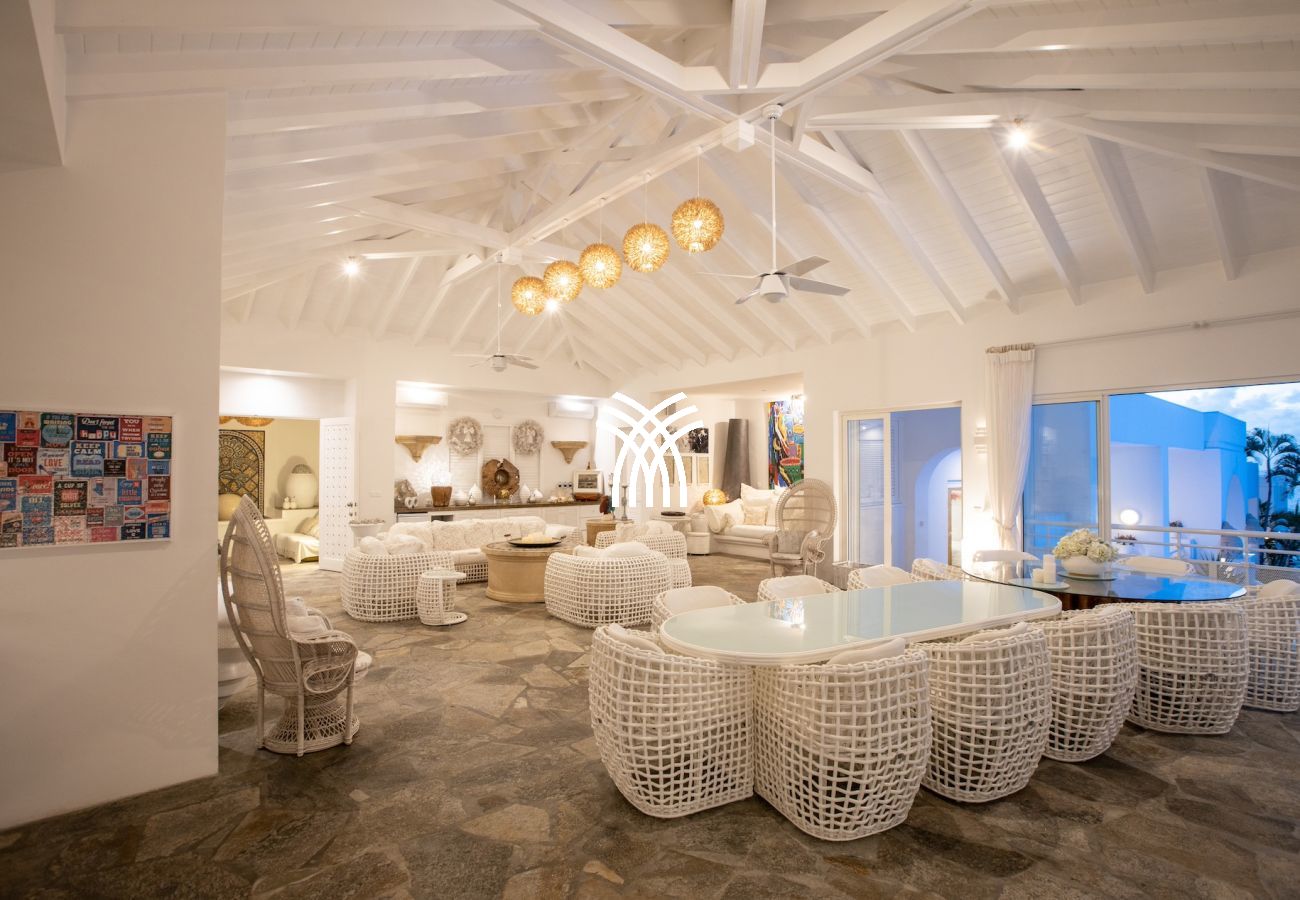 Les espaces de vie de cette villa de luxe à louer à Saint Martin sont pensés pour le confort et le plaisir : une cuisine équipée (les repas sont exclusivement préparés par le chef privé de la villa), une salle multimédia avec écran plasma, de grandes terrasses ombragées ou ensoleillées, un jacuzzi, une salle de sport, un spa et des espaces de détente face à l’océan.