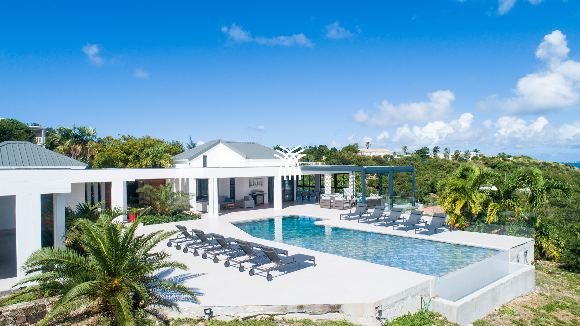La Villa La Dacha est une villa de luxe à louer à Saint Martin, située au cœur des Terres Basses, l’un des quartiers les plus exclusifs et privés de l’île. Perchée à flanc de falaise, cette location villa luxe à Saint Martin offre une vue panoramique spectaculaire sur la mer des Caraïbes et l’île d’Anguilla.