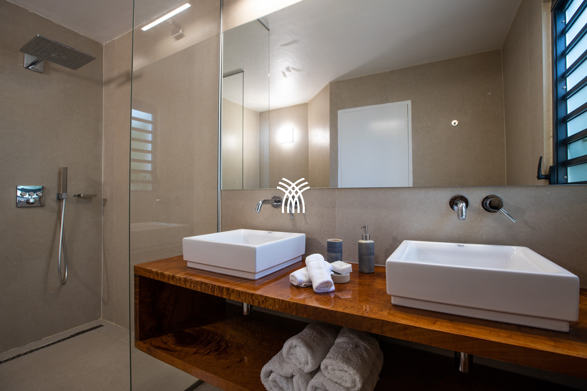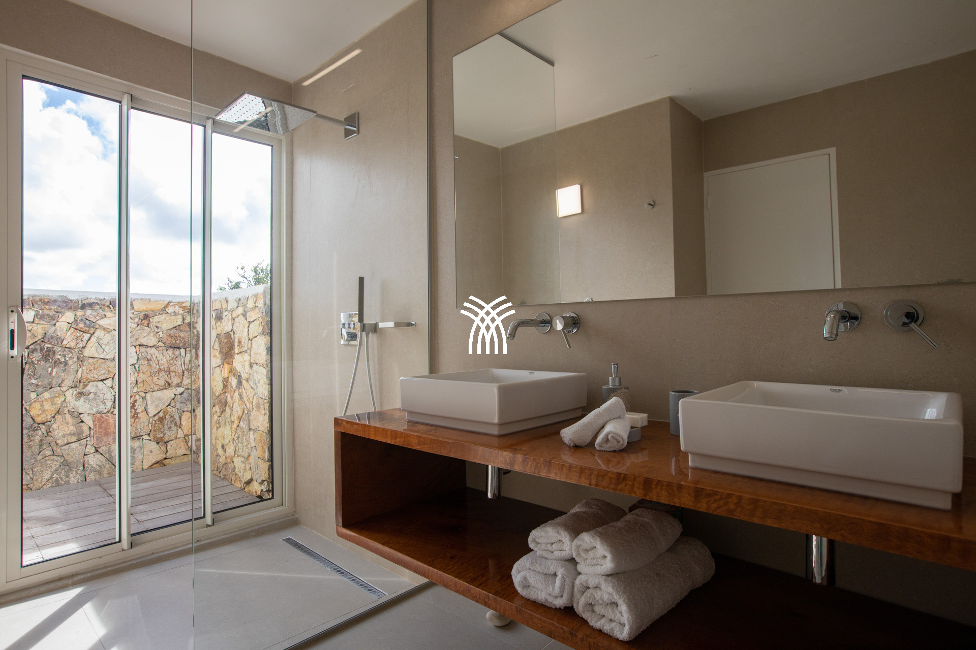 Cette villa d’exception dispose de 5 chambres, toutes avec salles de bains privatives. Trois chambres sont situées au niveau principal, avec un accès direct à la magnifique piscine à débordement, idéale pour se détendre face à la mer. Les deux autres chambres se trouvent au niveau inférieur, chacune avec un accès extérieur indépendant.