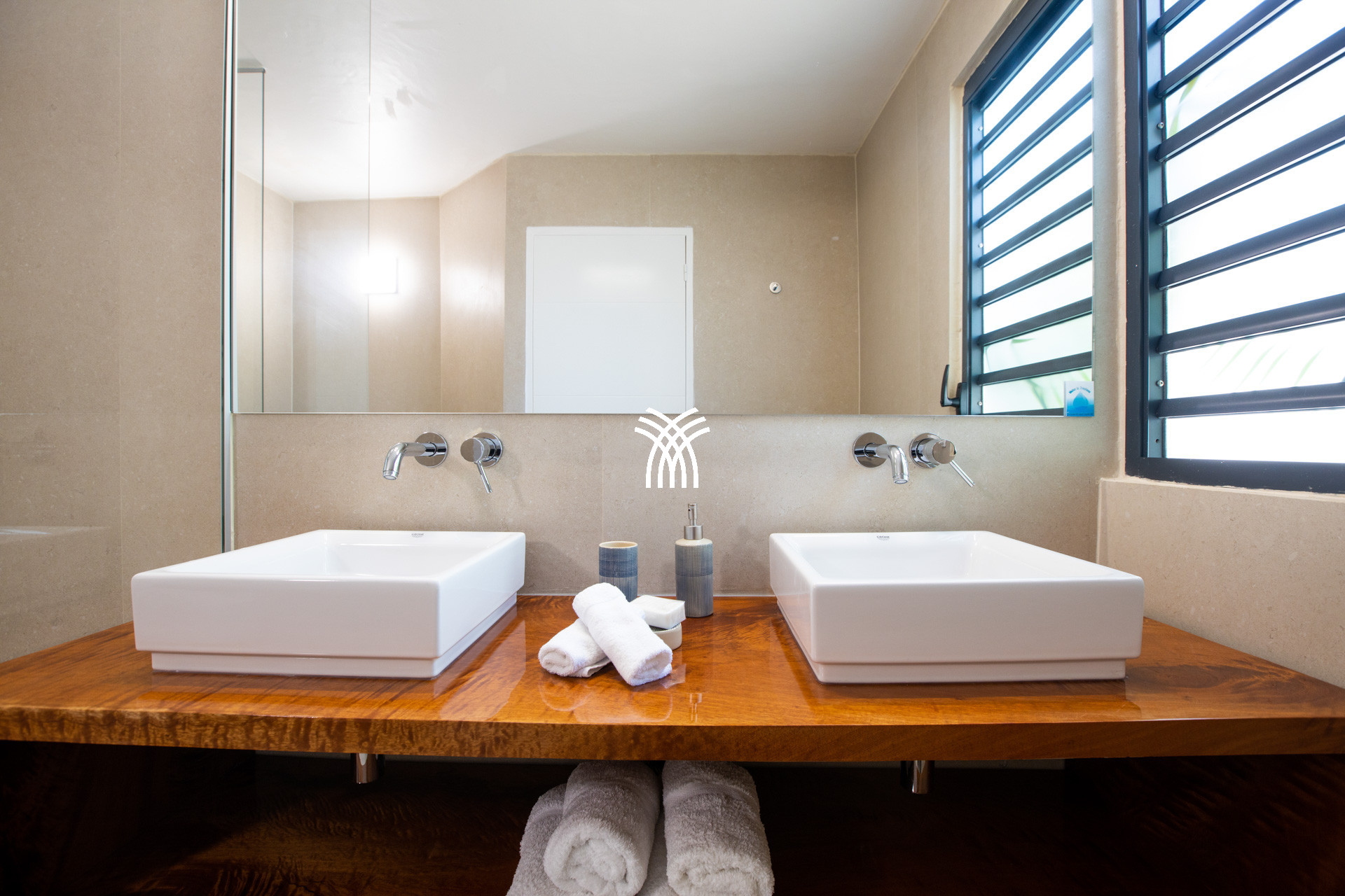 La suite principale est un véritable sanctuaire de luxe avec un lit king size, une terrasse privée et une salle de bain somptueuse. Certaines chambres disposent également de douches extérieures pour une expérience tropicale unique.