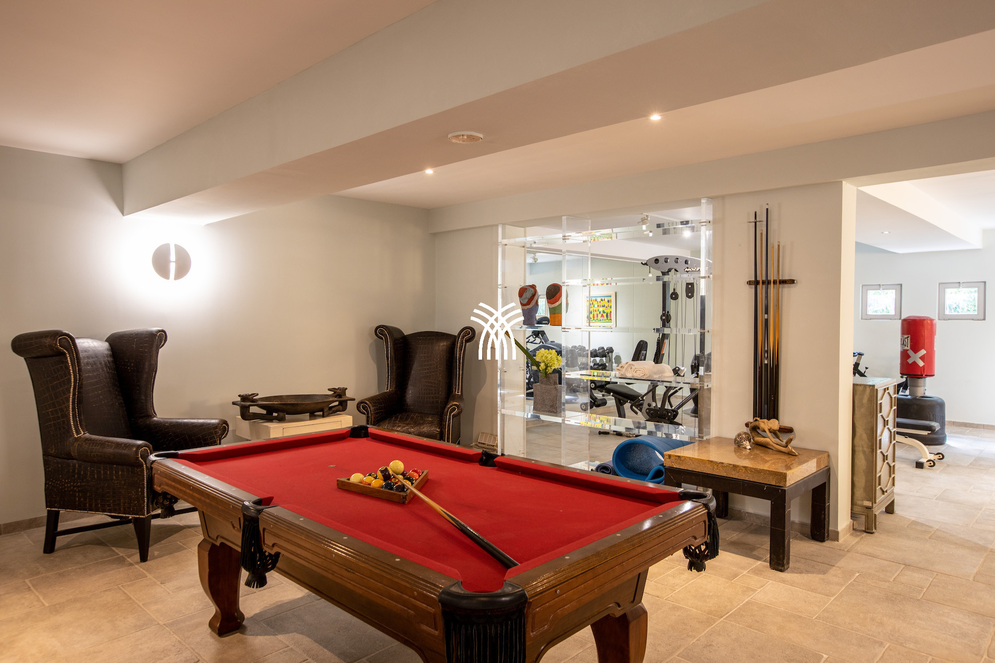 Vous trouverez tout ce qu'il est possible de trouver dans une villa de très grand luxe : 2 piscines, 1 jacuzzi, un court de tennis, une salle de gym, des jeux pour les enfants, une salle média, etc...
