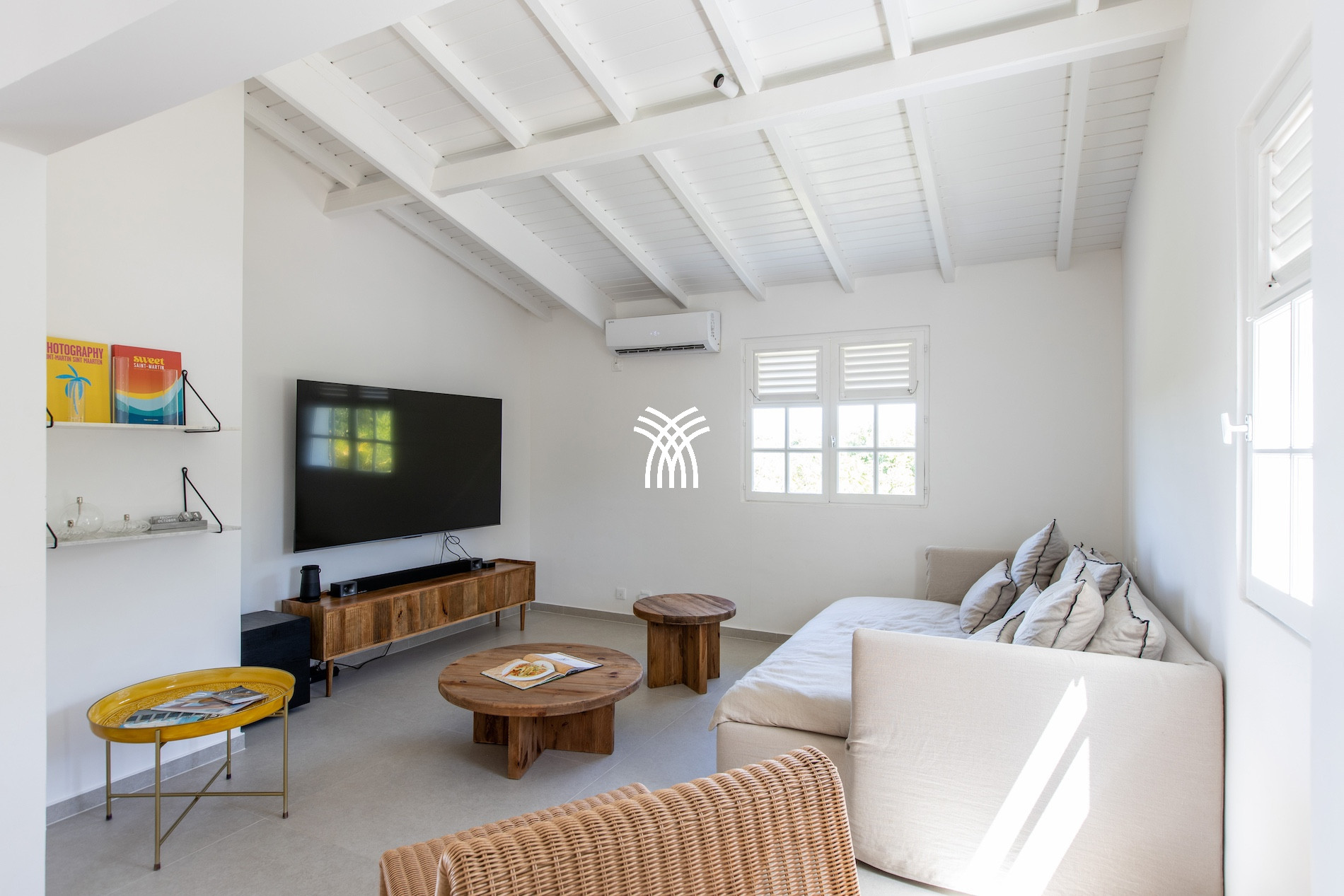 Les espaces de vie de cette villa de luxe à louer à Saint Martin sont conçus pour le confort et la convivialité. Vous y trouverez un double salon lumineux : un espace détente ouvert sur la piscine et un second salon cosy avec télévision, parfait pour les soirées en famille ou entre amis.
