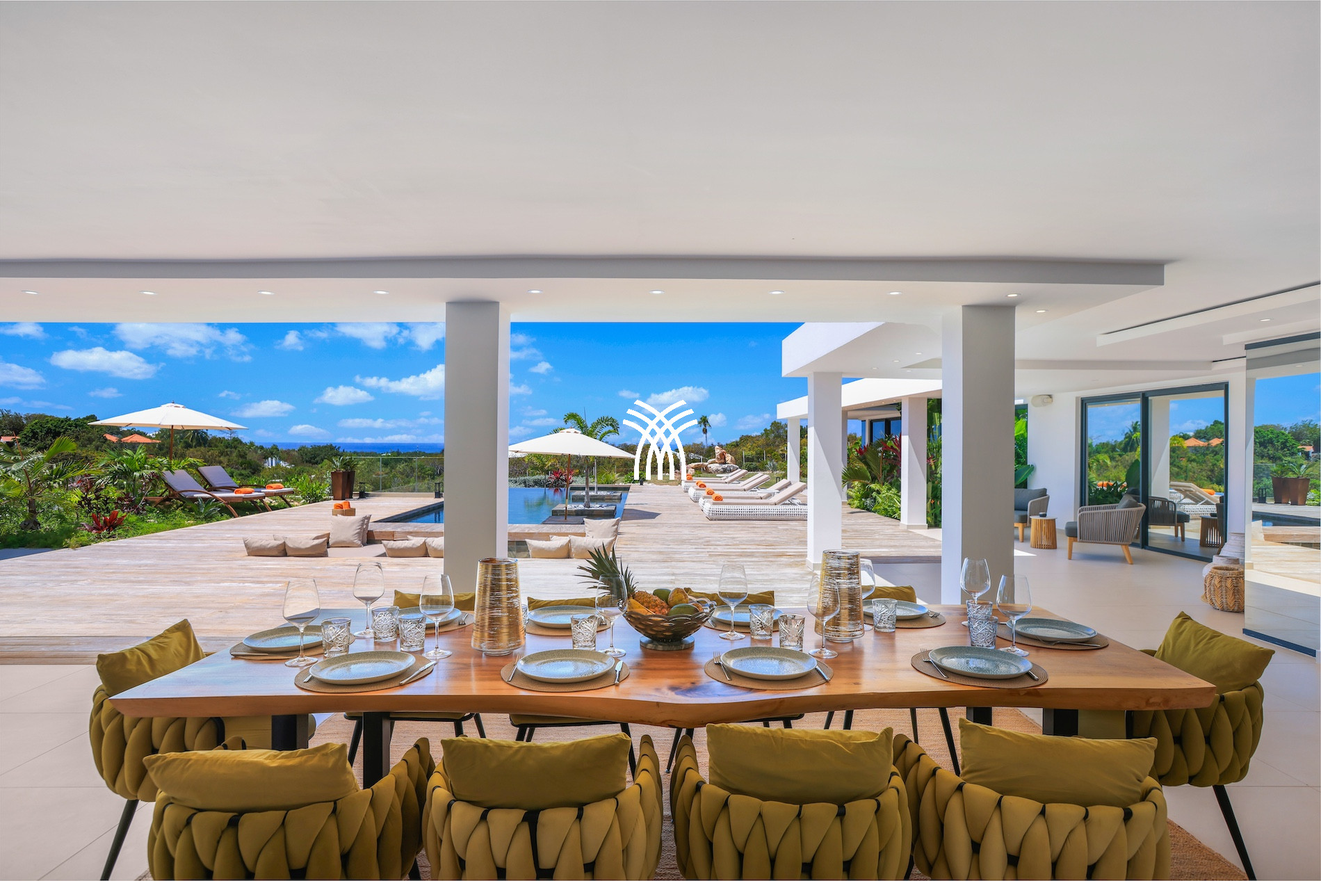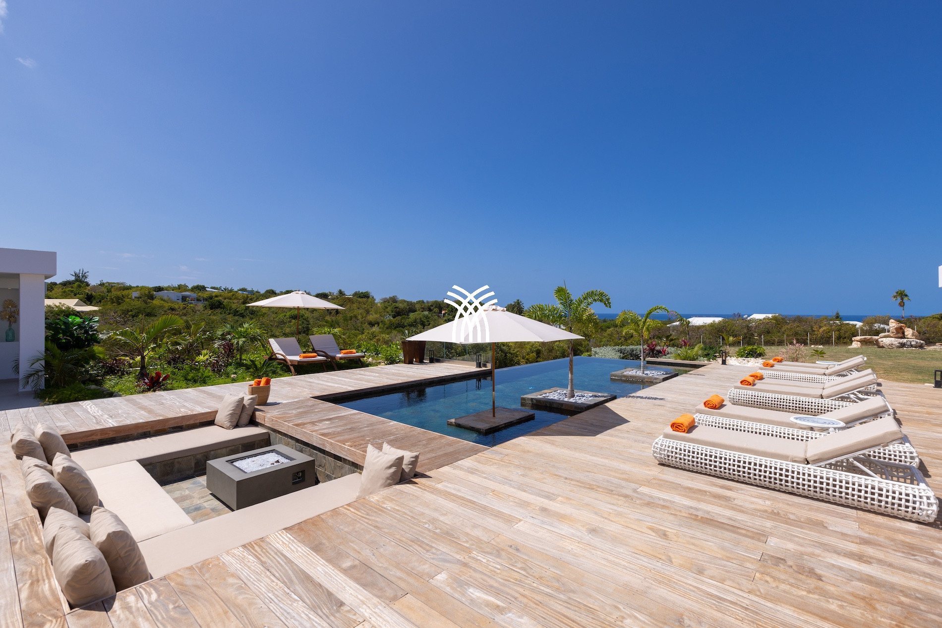Dès l’entrée, les volumes généreux, la décoration soignée et les matériaux nobles insufflent une atmosphère chaleureuse et apaisante. Entièrement climatisée, la villa s’organise autour d’un vaste salon lumineux, d’une cuisine moderne parfaitement équipée, et d’une grande terrasse extérieure avec bar, salon lounge et espace repas. La piscine chauffée à débordement, bordée de parasols et de transats, surplombe l’horizon, offrant une vue saisissante sur l’océan. Elle est chauffée du 15 octobre au 15 avril, et peut l’être en dehors de cette période sur demande (350 USD/semaine).