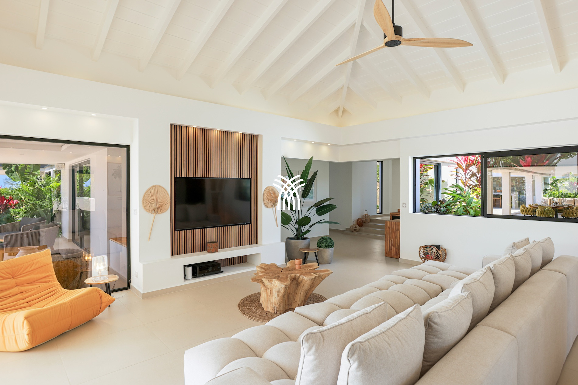 Entièrement climatisée, la Villa La Dacha propose un savant mélange de style contemporain et de charme caribéen. Les espaces intérieurs, baignés de lumière naturelle, se distinguent par leur élégance et leur confort absolu. Les hauts plafonds, le mobilier raffiné et les larges ouvertures sur l’extérieur créent une ambiance chaleureuse et luxueuse.