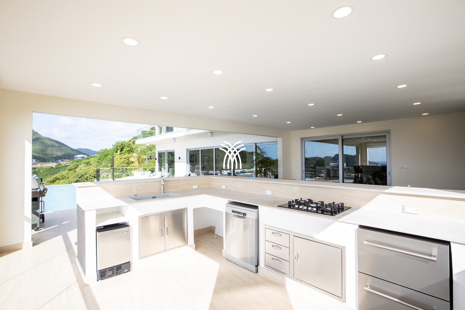 Un bar extérieur, une cuisine d’été parfaitement équipée et de vastes espaces de détente permettent de partager des moments conviviaux face à la mer. Le soir, les lumières des collines d’Indigo Bay et le passage des bateaux créent une ambiance magique.