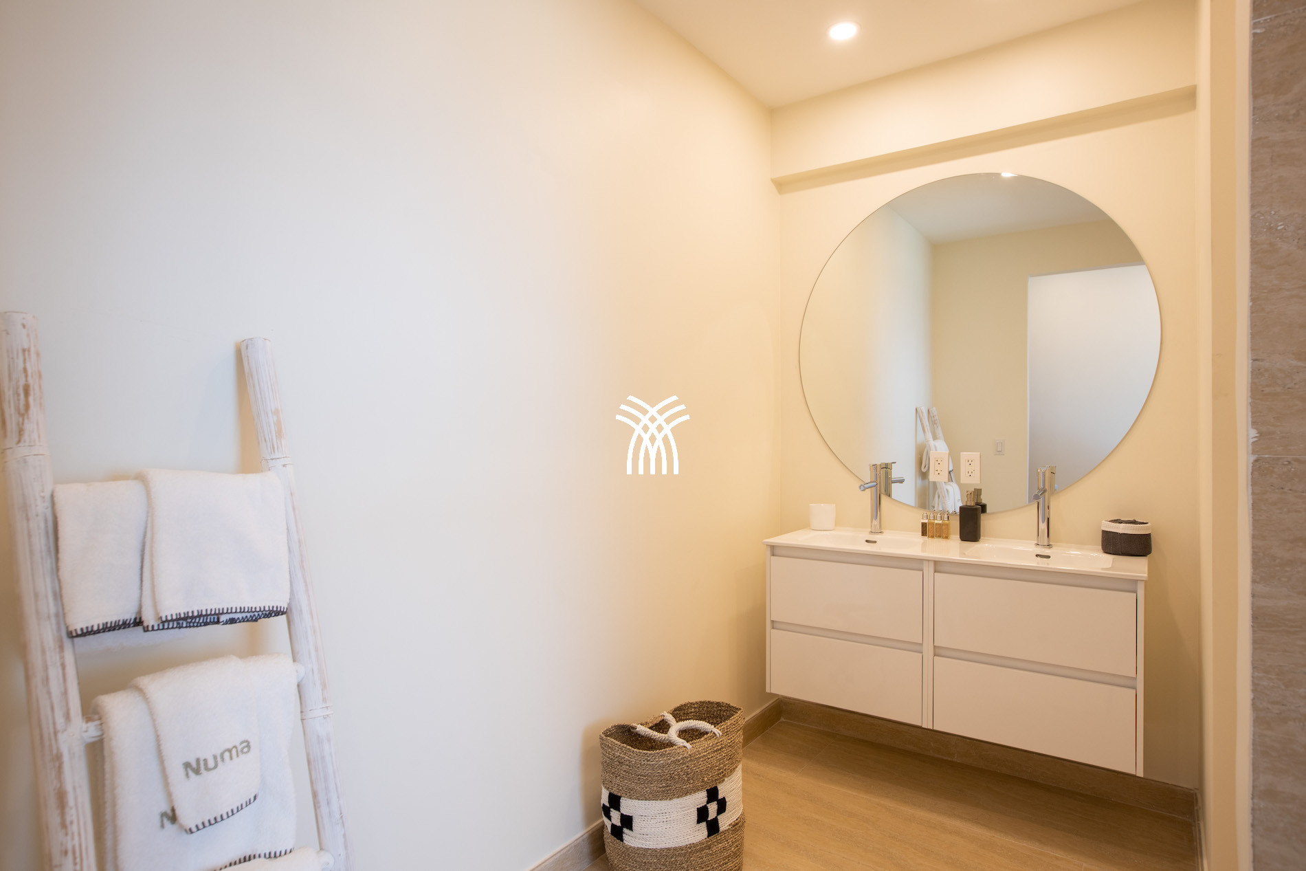 Les six chambres, réparties sur trois niveaux, offrent une intimité absolue et un confort inégalé. Chacune dispose de sa propre salle de bain attenante, avec des finitions raffinées et une vue panoramique sur l’océan. La suite principale se distingue par sa baignoire élégante, invitant à des instants de détente face à un paysage à couper le souffle. L’expérience est sublimée par des douches à l’italienne et des espaces de repos conçus pour un bien-être absolu.