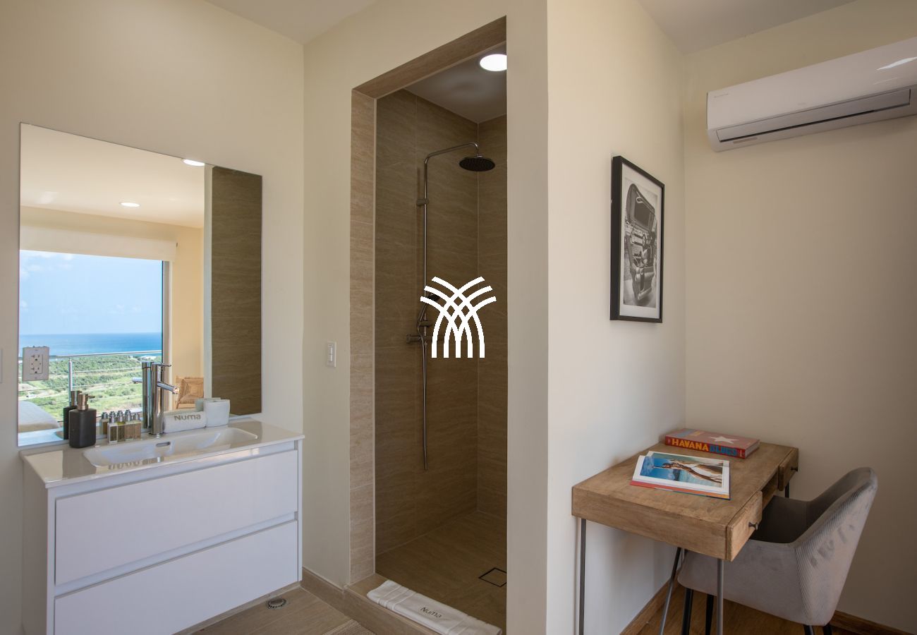 Ce véritable chef-d’œuvre architectural propose 6 chambres spacieuses, toutes équipées de lits king-size et de terrasses privées offrant une vue imprenable sur la mer des Caraïbes. Les salles de bain luxueuses disposent de douches intérieures et extérieures pour une expérience tropicale authentique et raffinée.