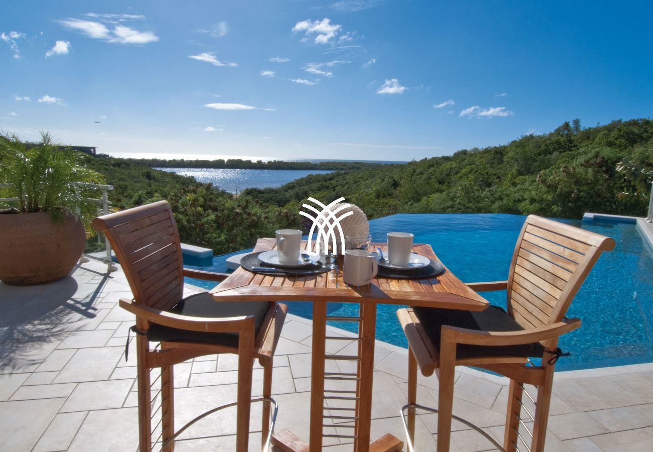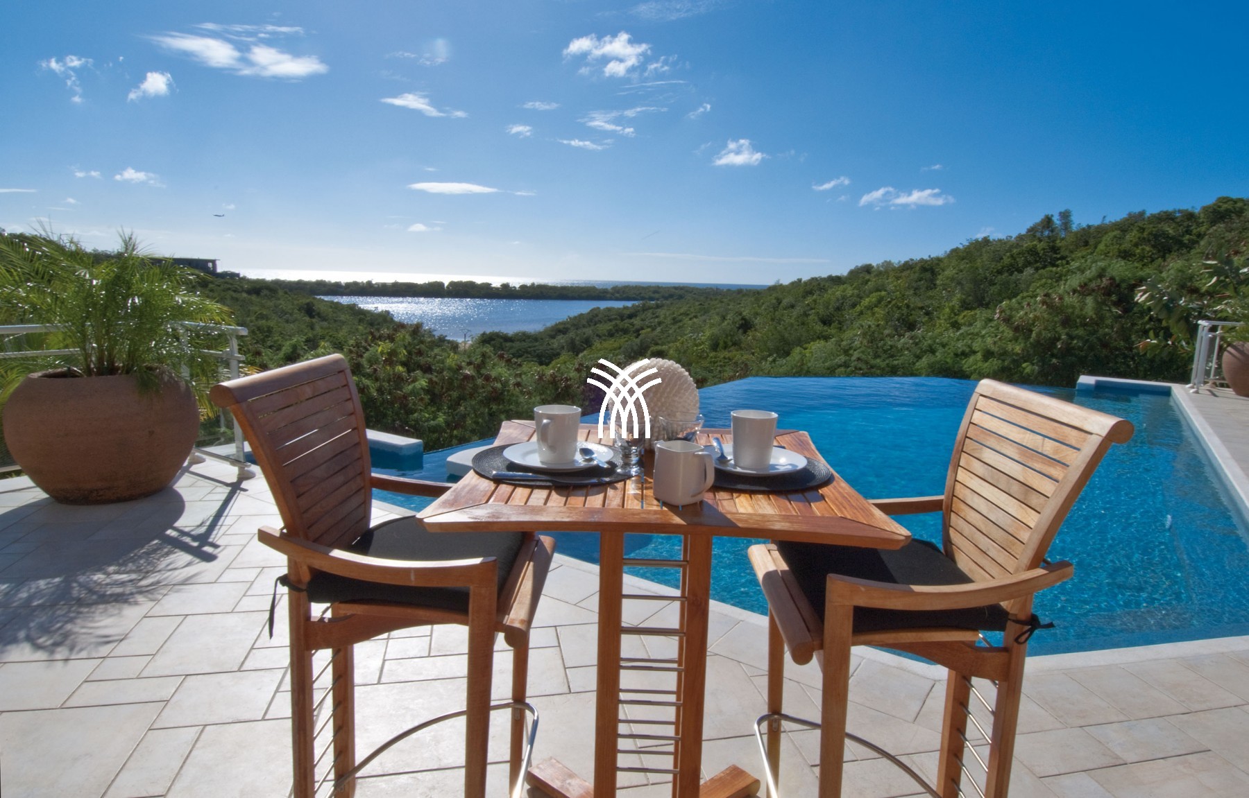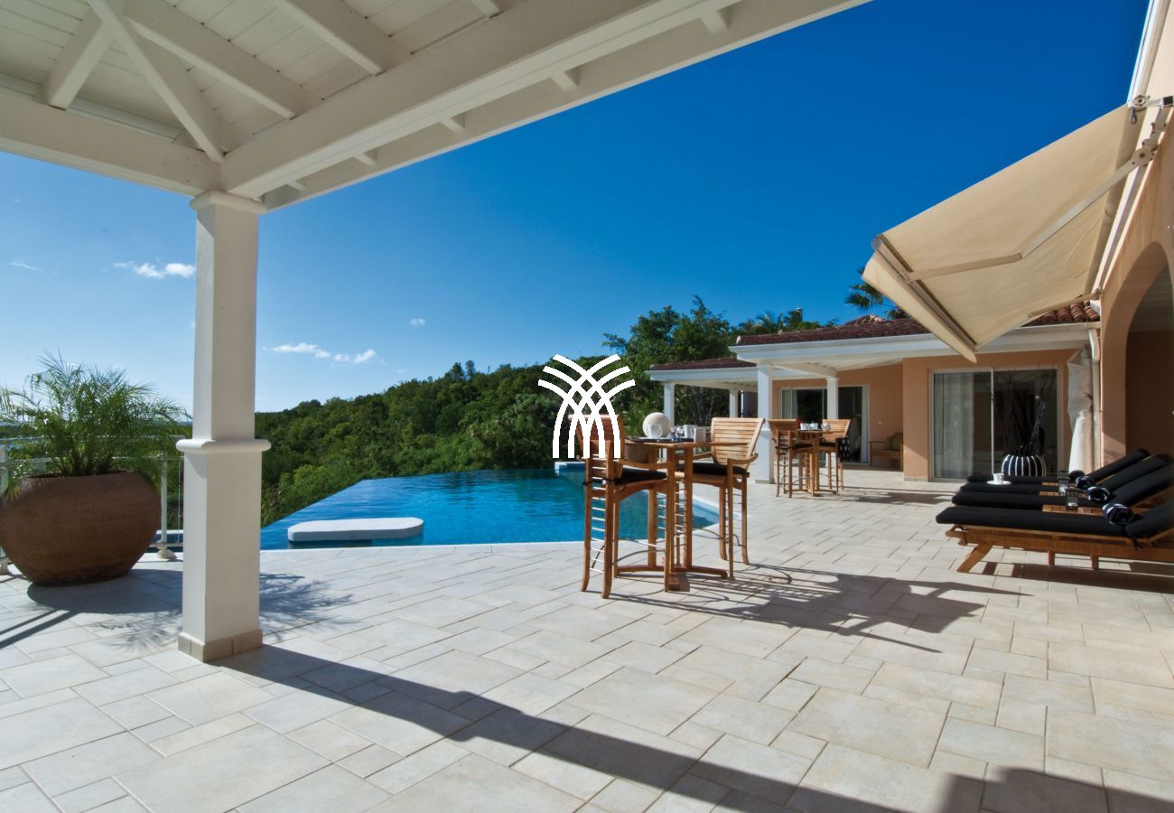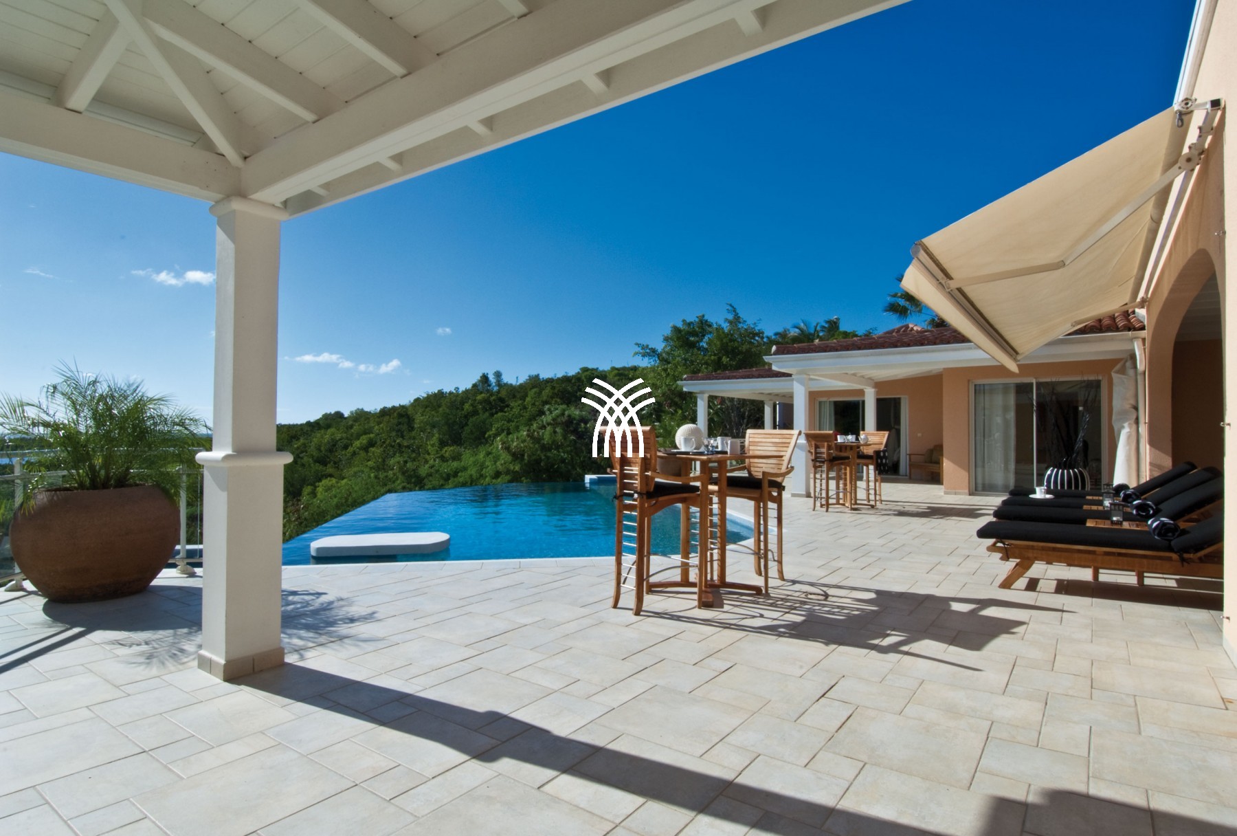 Cette location de villa luxe à Saint Martin dispose d’une superbe piscine à débordement chauffée avec vue panoramique sur la végétation environnante. Un second bassin, plus petit, situé au niveau inférieur de la terrasse, permet également de se rafraîchir et de profiter pleinement de l’extérieur.