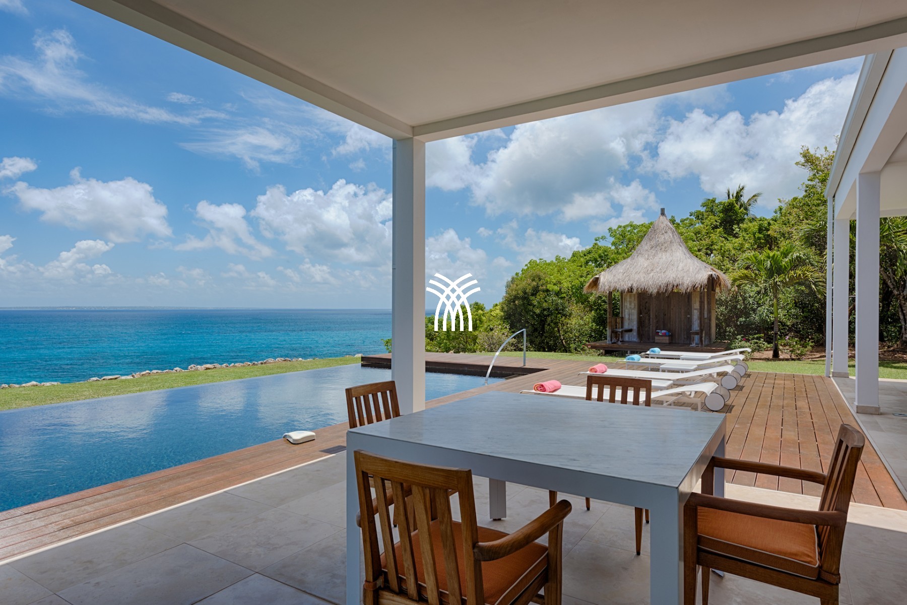 Nichée dans un jardin tropical méticuleusement entretenu, cette villa somptueuse se dresse au sommet d'une falaise, offrant des vues spectaculaires sur la mer des Caraïbes, Anguilla et des couchers de soleil à couper le souffle.