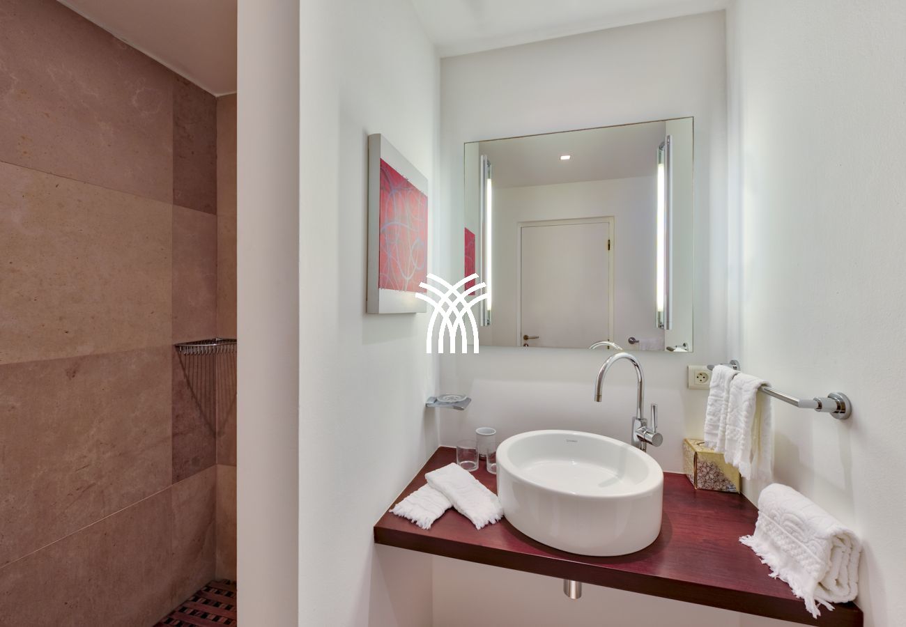 Cette villa d’exception dispose de 5 chambres, toutes avec salles de bains privatives. Trois chambres sont situées au niveau principal, avec un accès direct à la magnifique piscine à débordement, idéale pour se détendre face à la mer. Les deux autres chambres se trouvent au niveau inférieur, chacune avec un accès extérieur indépendant.