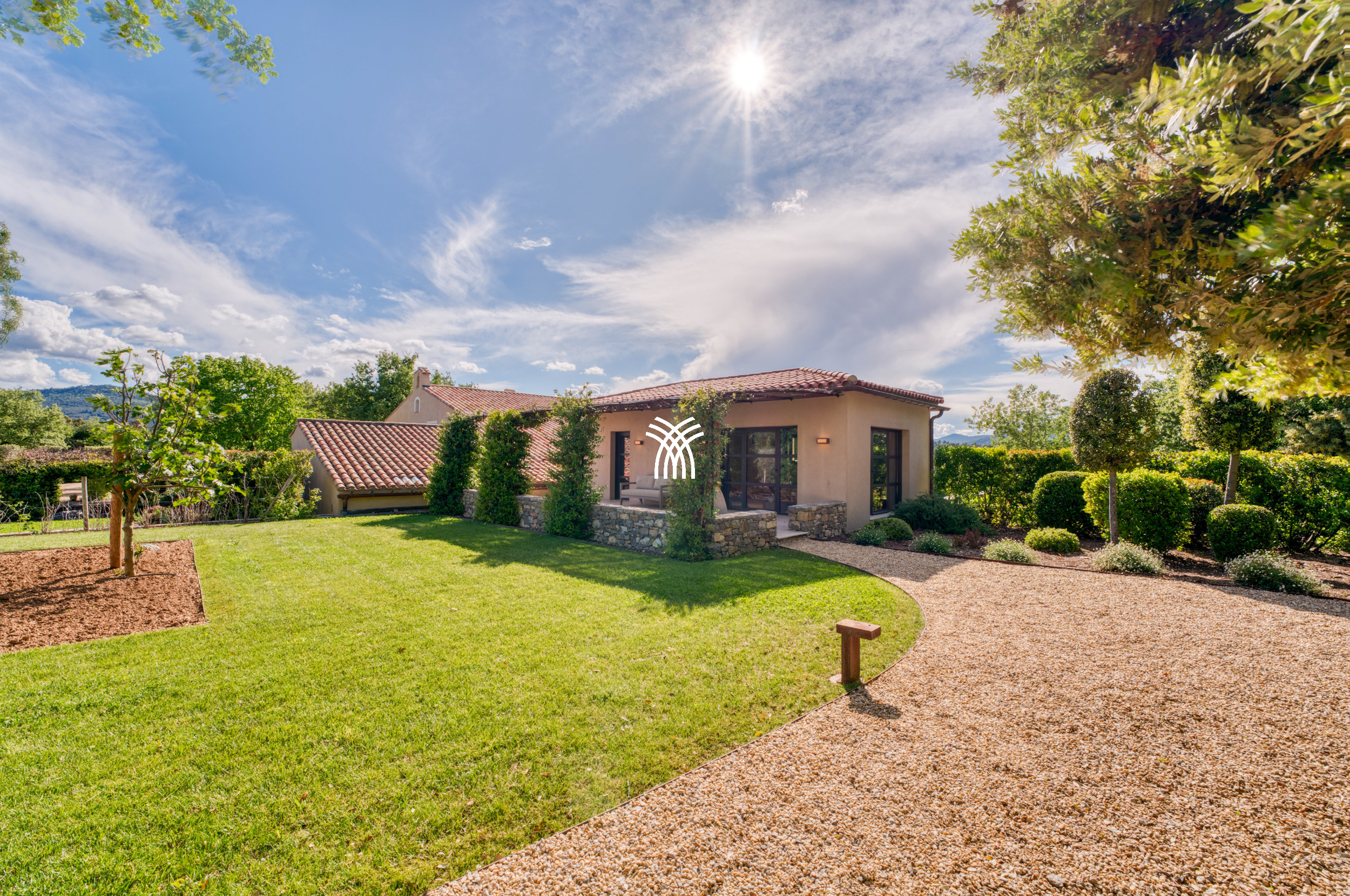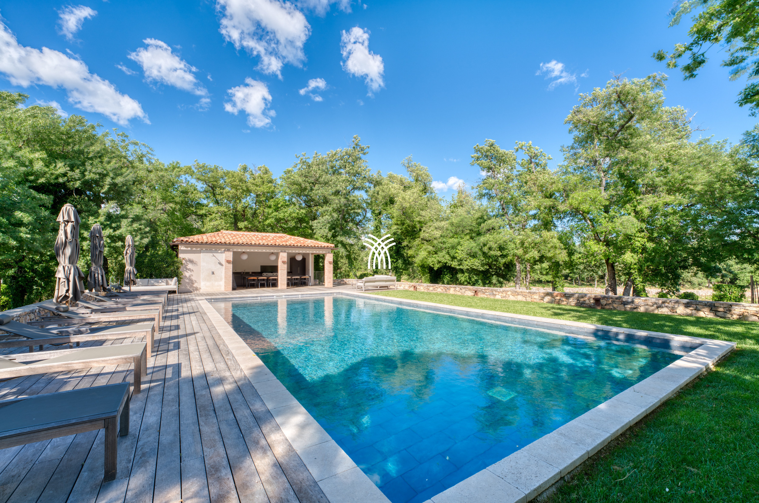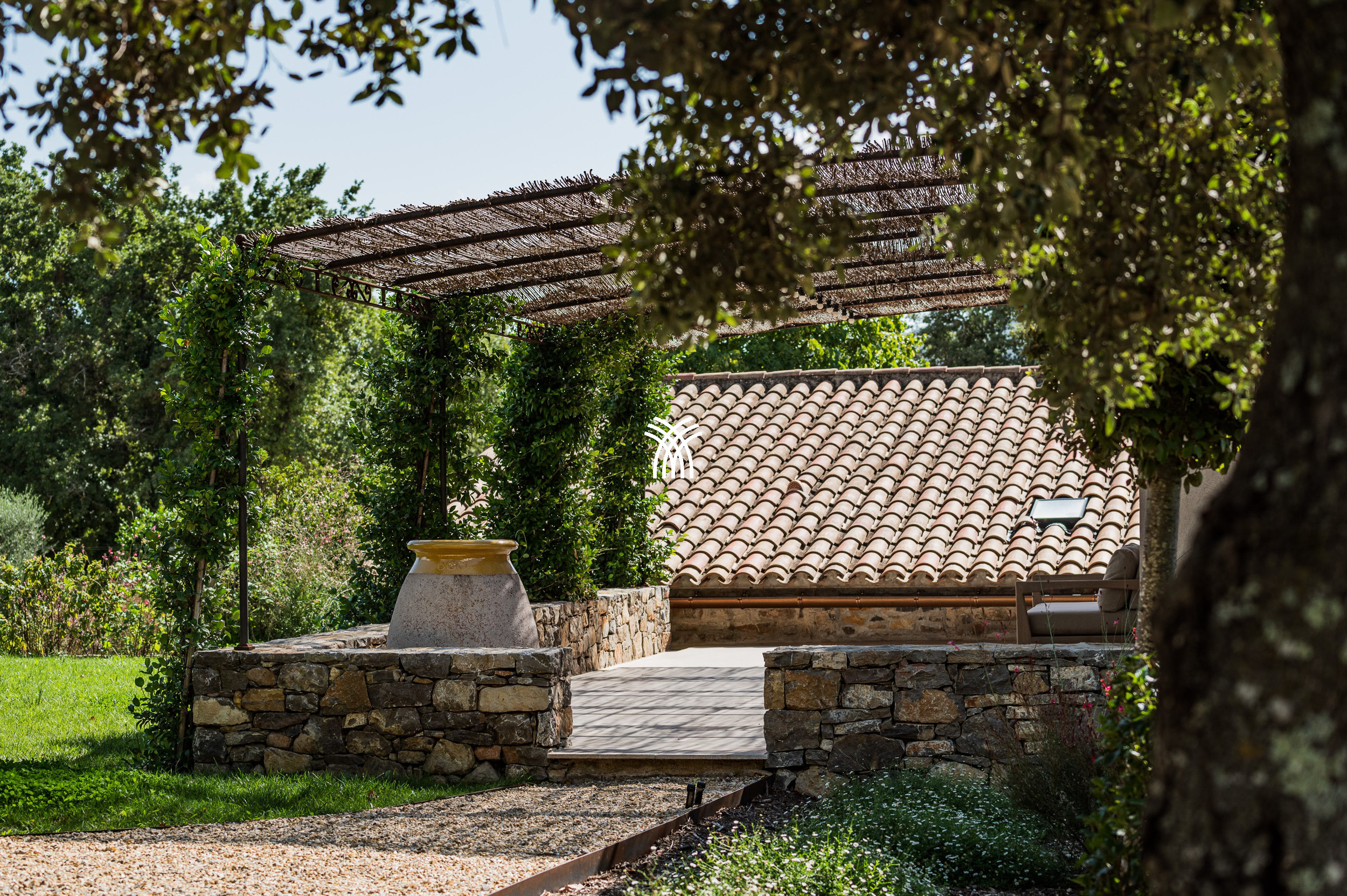 Mêlant sophistication moderne et charme provençal intemporel, la décoration combine avec grâce le bois, le métal et la pierre, s'intégrant parfaitement à la végétation luxuriante qui entoure la propriété. Dans ce havre idyllique, la convivialité définit chaque moment, que ce soit à l'ombre d'un chêne séculaire majestueux ou en profitant de la chaleur d'intérieurs soigneusement conçus. Une cuisine généreuse, des terrasses spacieuses et des fauteuils accueillants créent le cadre parfait pour préparer et savourer la cuisine locale, se détendre lors des soirées d'été fraîches ou simplement se reconnecter à la tranquillité d'un environnement préservé.