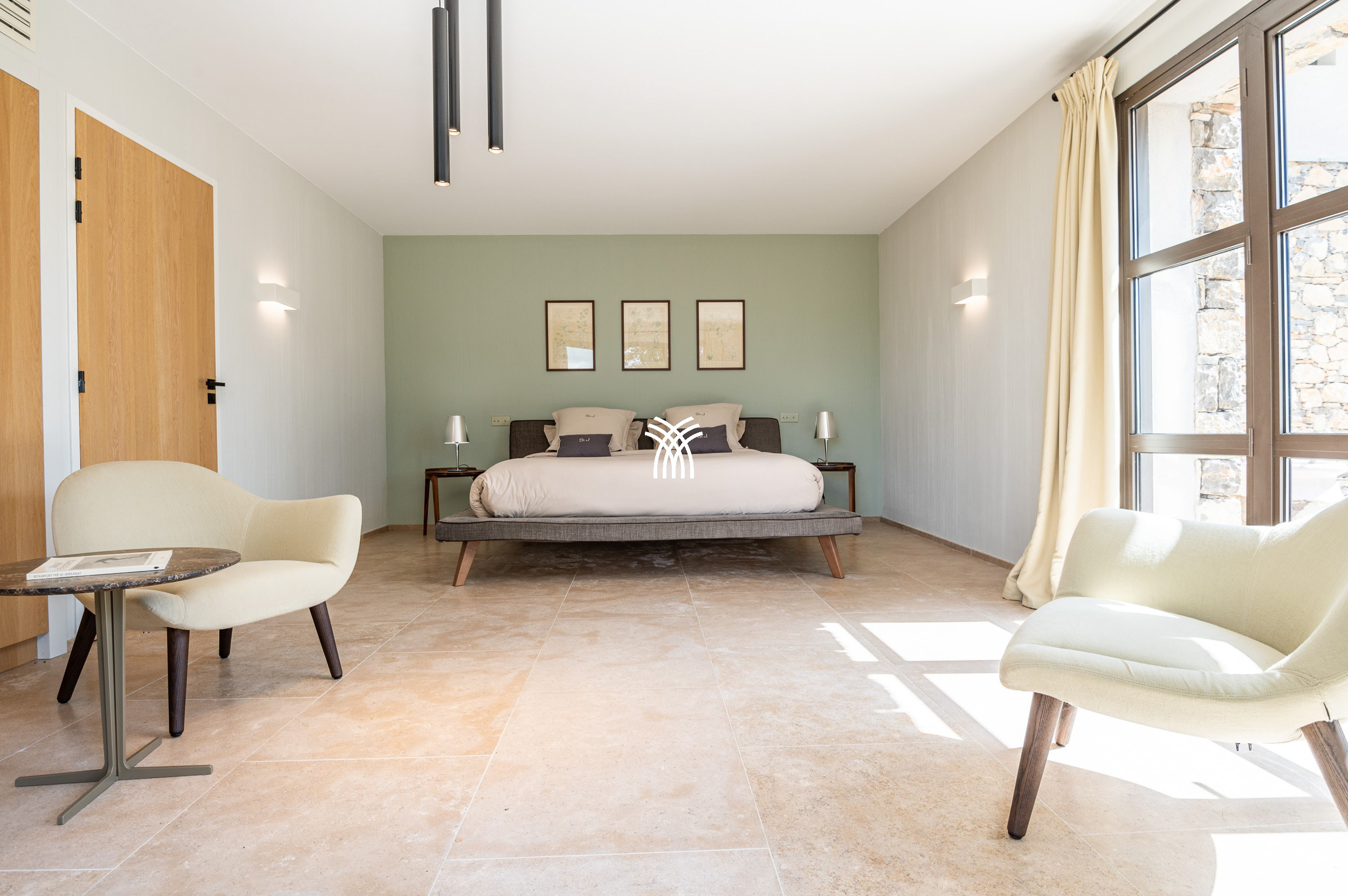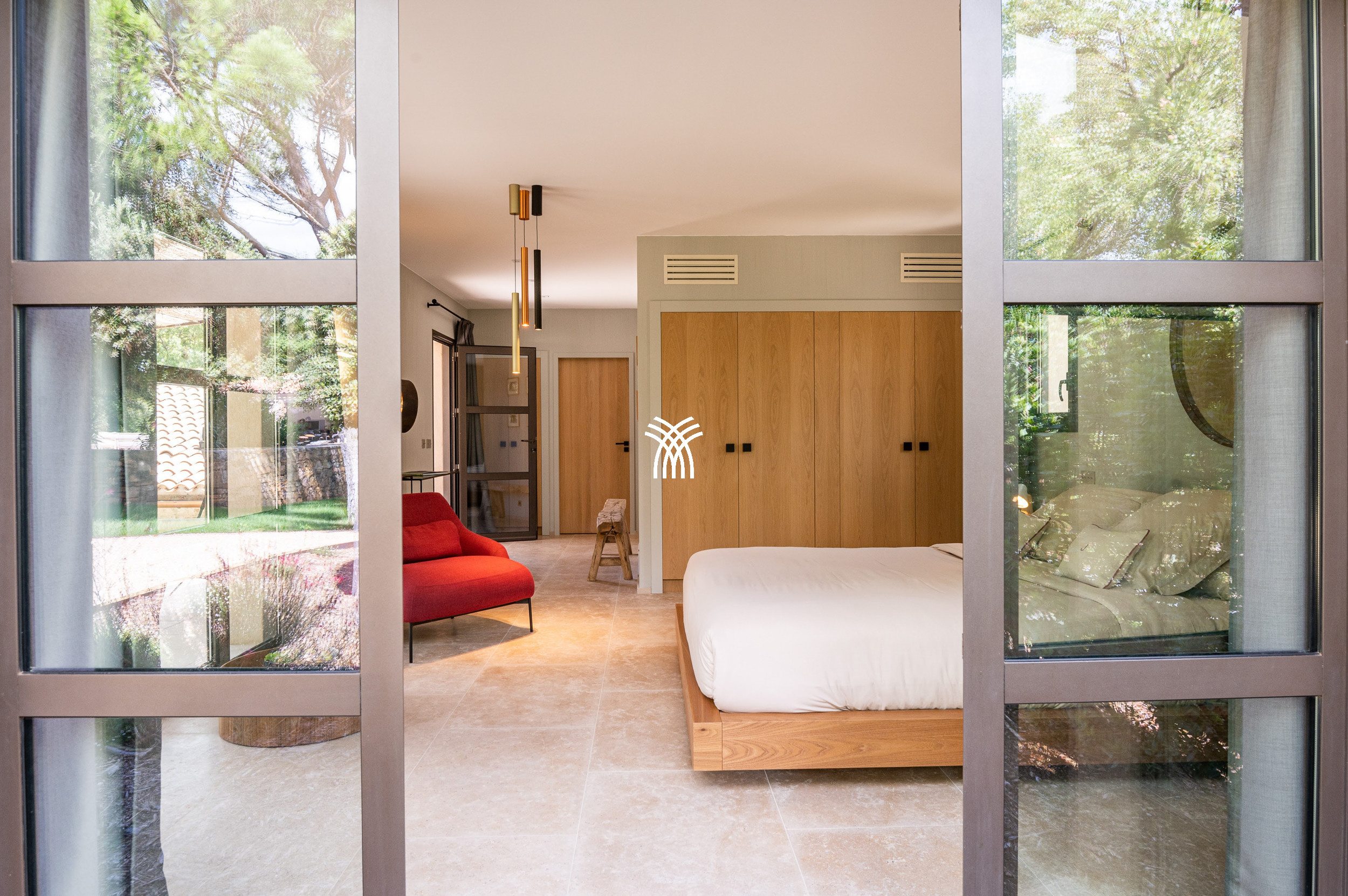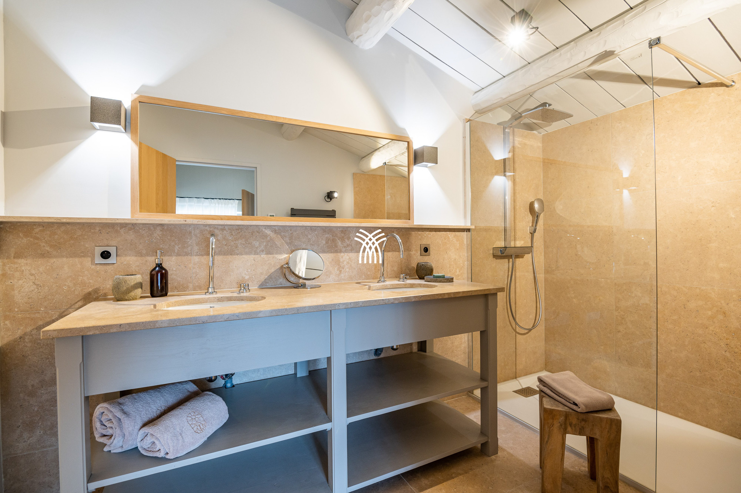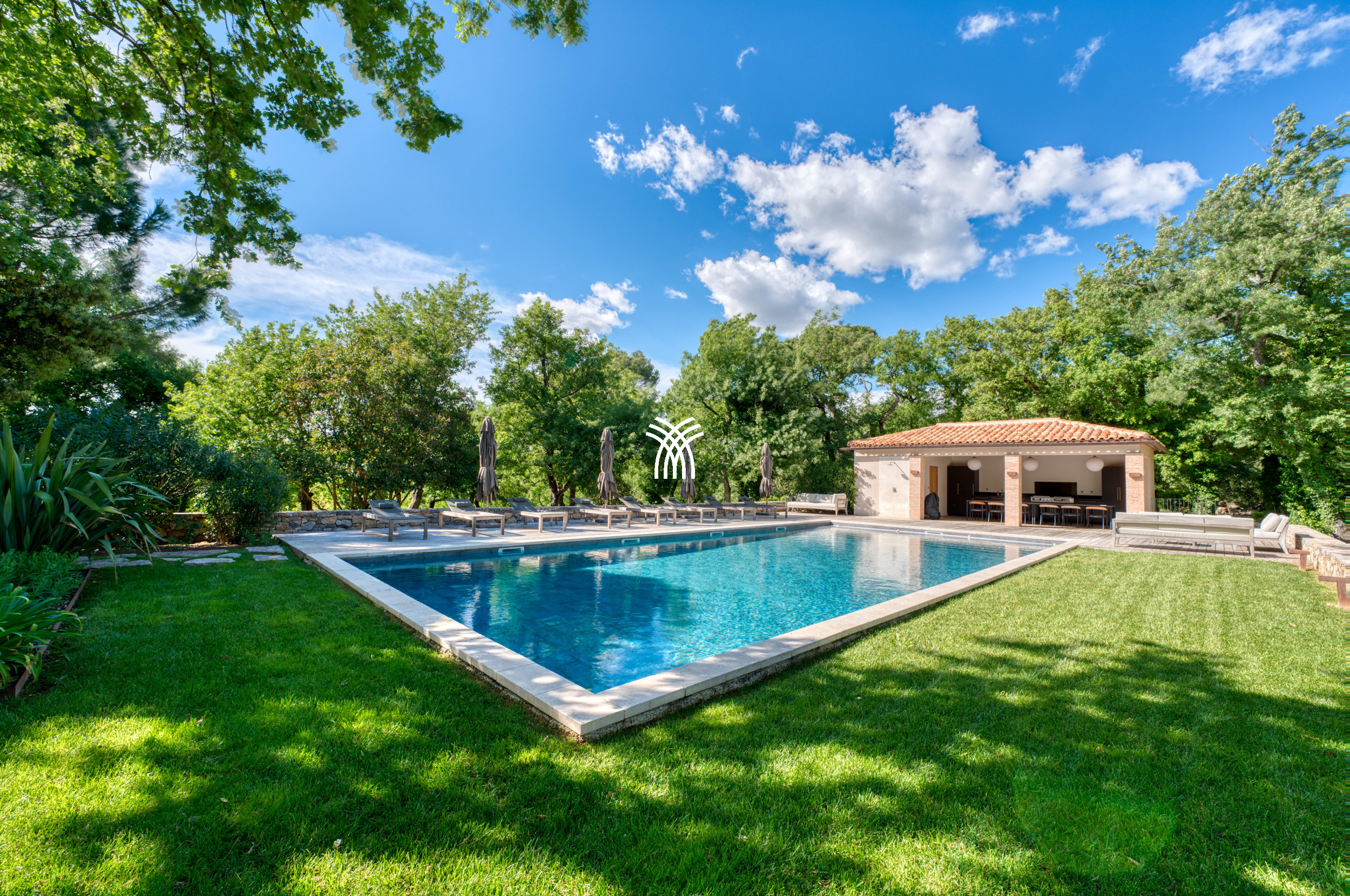 Mêlant sophistication moderne et charme provençal intemporel, la décoration combine avec grâce le bois, le métal et la pierre, s'intégrant parfaitement à la végétation luxuriante qui entoure la propriété. Dans ce havre idyllique, la convivialité définit chaque moment, que ce soit à l'ombre d'un chêne séculaire majestueux ou en profitant de la chaleur d'intérieurs soigneusement conçus. Une cuisine généreuse, des terrasses spacieuses et des fauteuils accueillants créent le cadre parfait pour préparer et savourer la cuisine locale, se détendre lors des soirées d'été fraîches ou simplement se reconnecter à la tranquillité d'un environnement préservé.