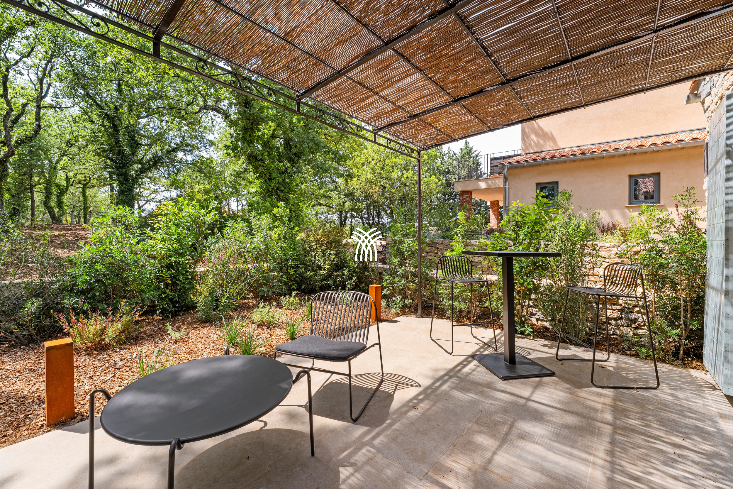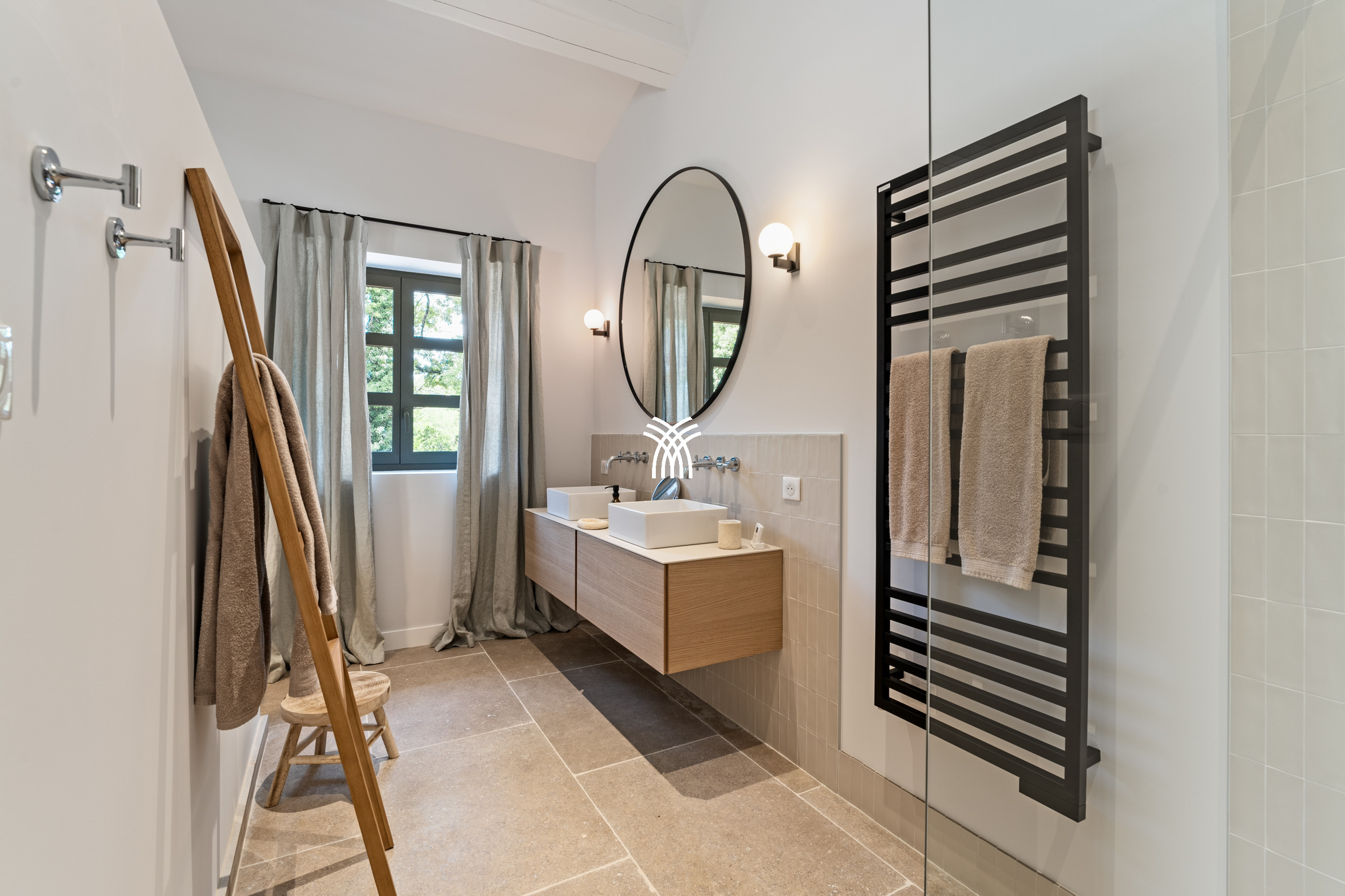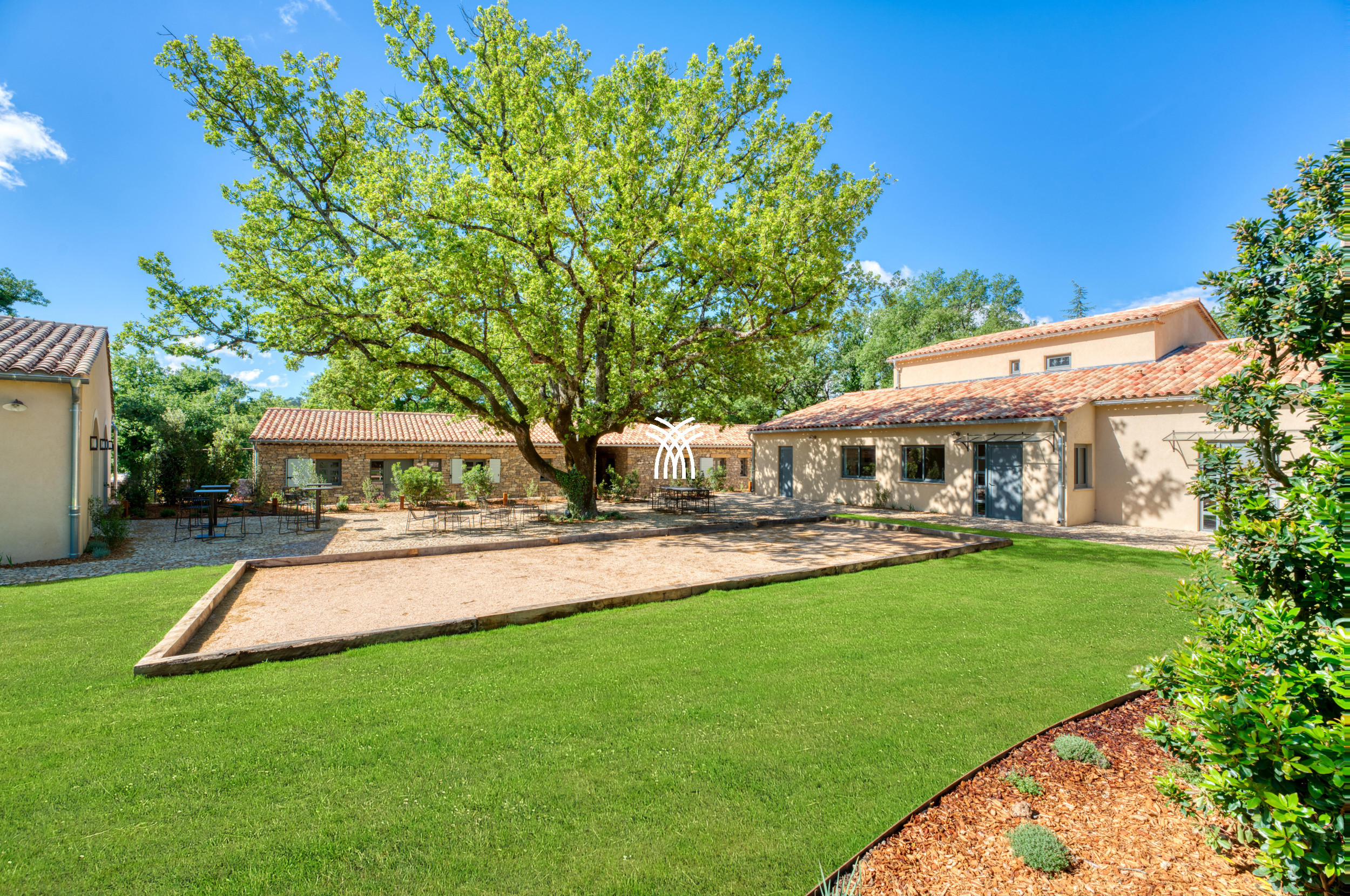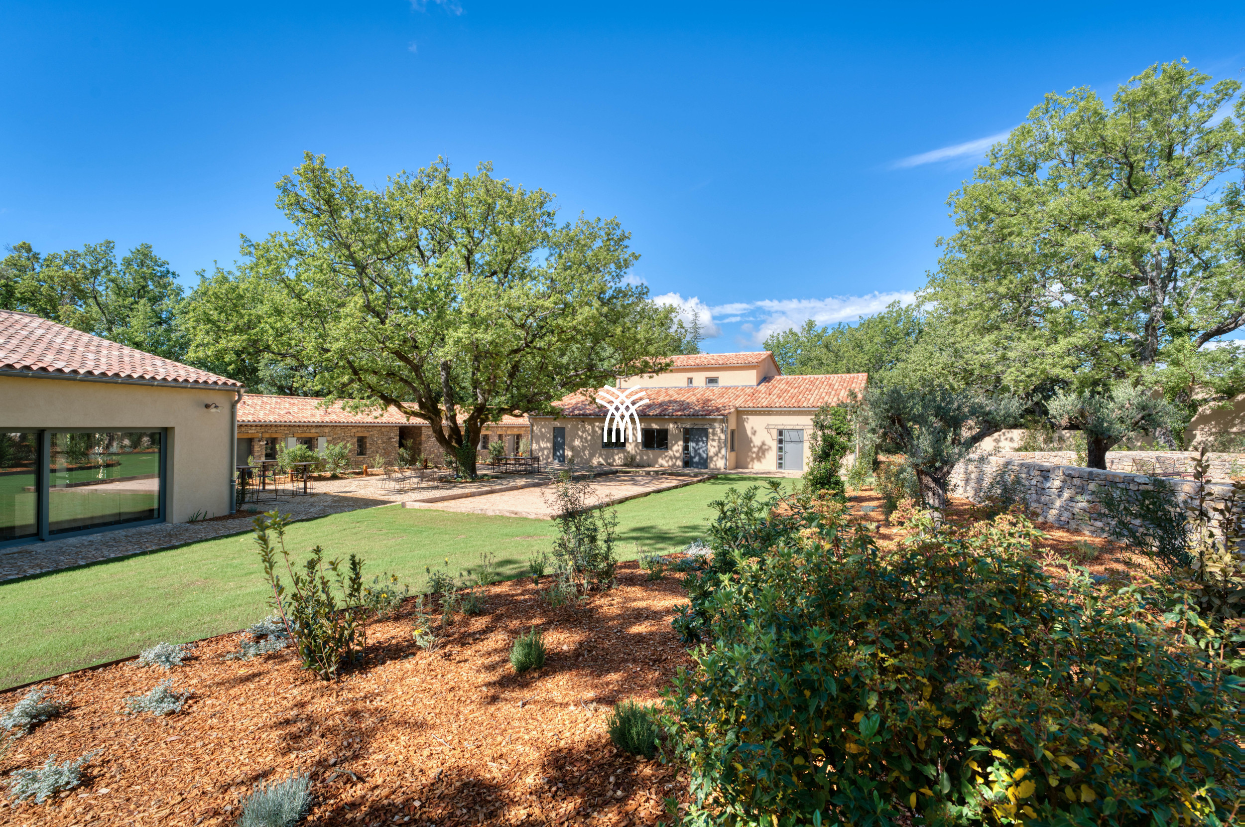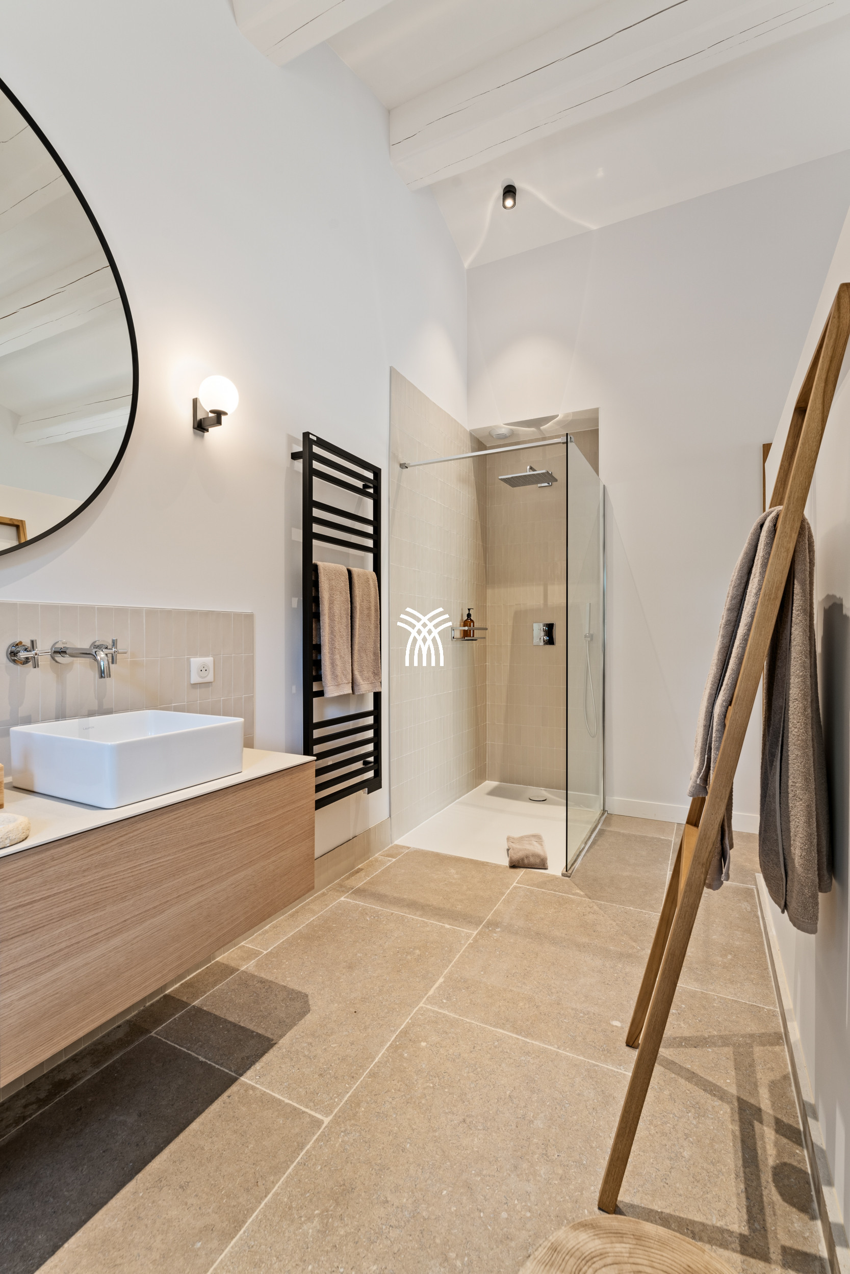 Mêlant sophistication moderne et charme provençal intemporel, la décoration combine avec grâce le bois, le métal et la pierre, s'intégrant parfaitement à la végétation luxuriante qui entoure la propriété. Dans ce havre idyllique, la convivialité définit chaque moment, que ce soit à l'ombre d'un chêne séculaire majestueux ou en profitant de la chaleur d'intérieurs soigneusement conçus. Une cuisine généreuse, des terrasses spacieuses et des fauteuils accueillants créent le cadre parfait pour préparer et savourer la cuisine locale, se détendre lors des soirées d'été fraîches ou simplement se reconnecter à la tranquillité d'un environnement préservé.