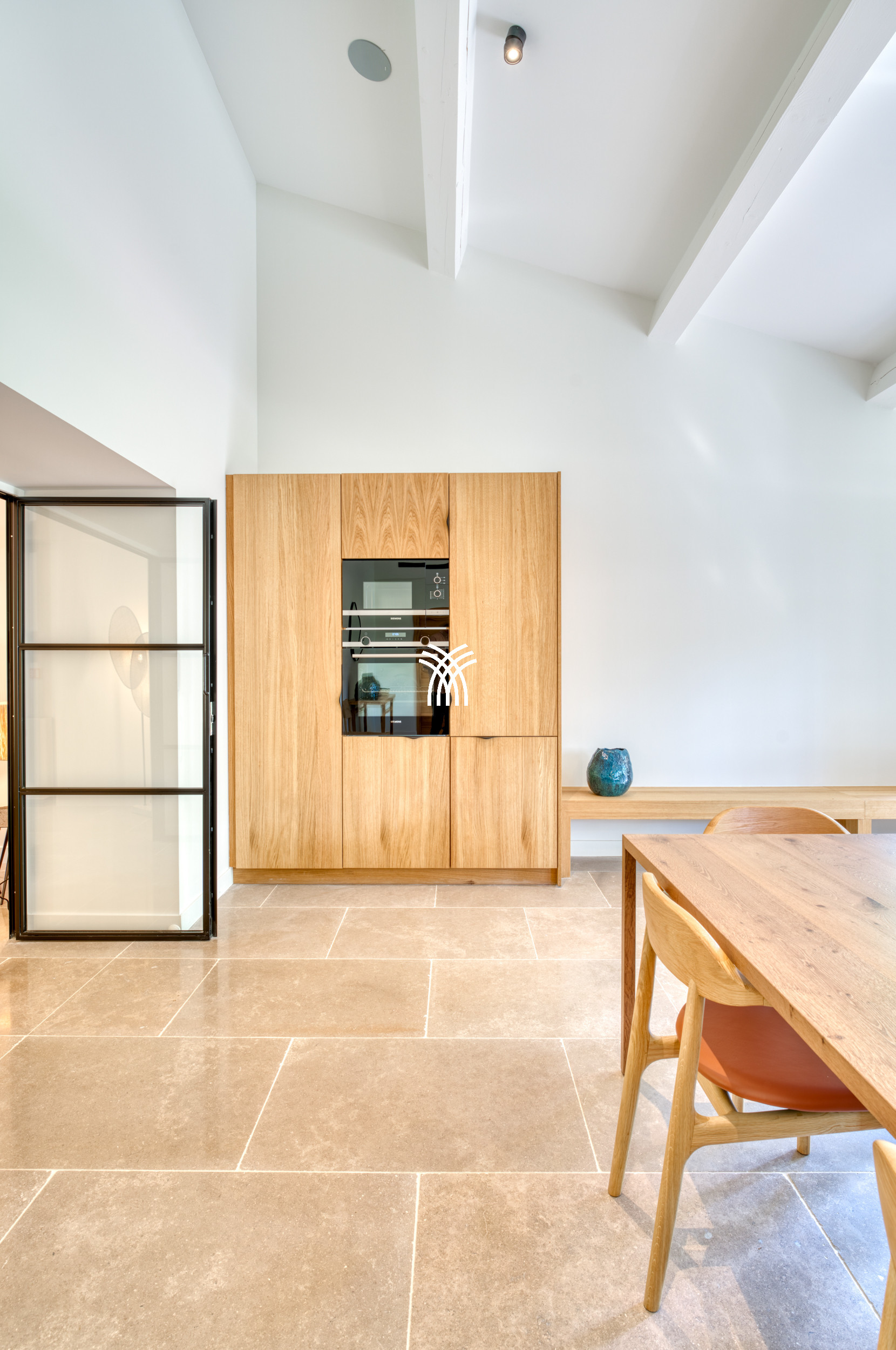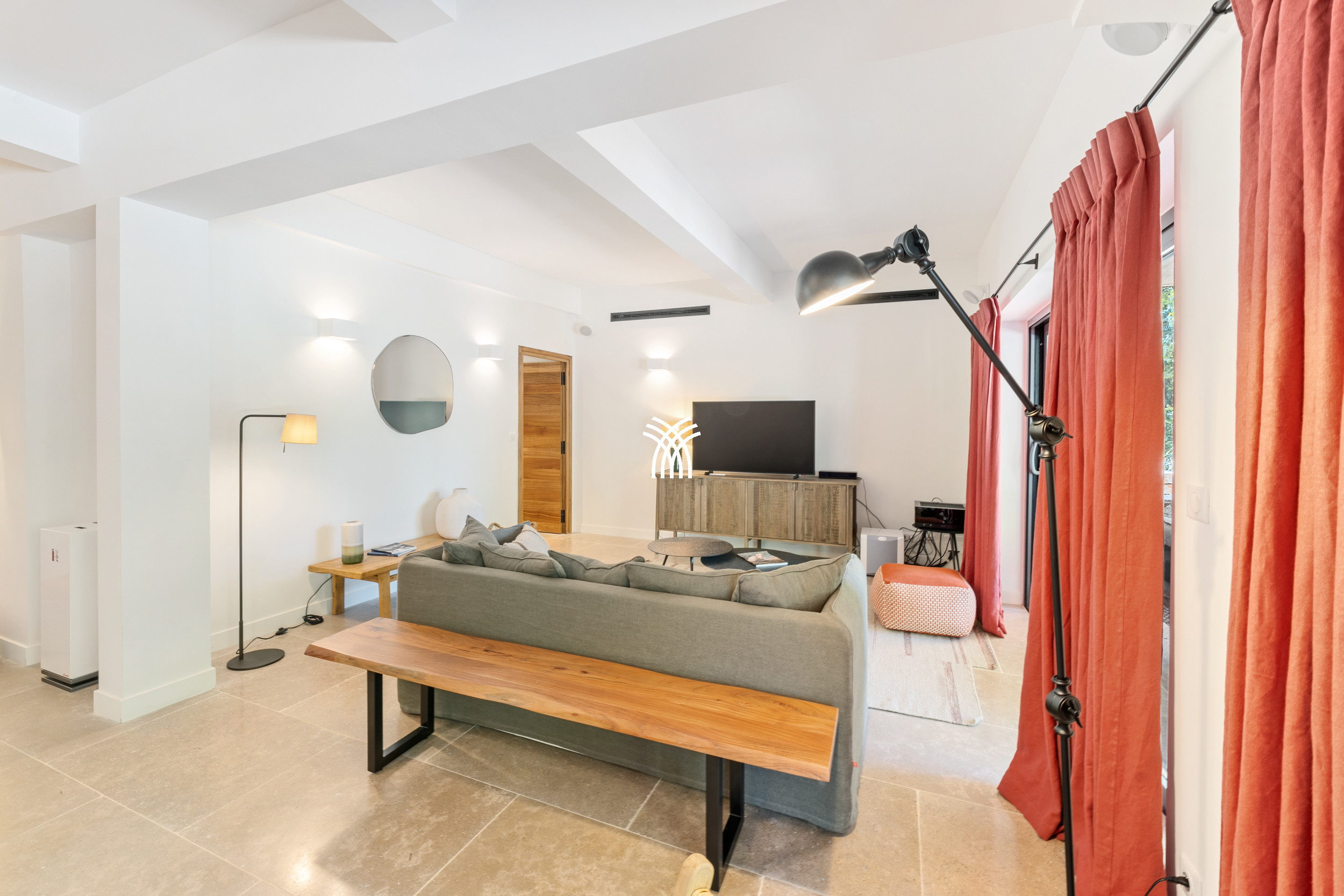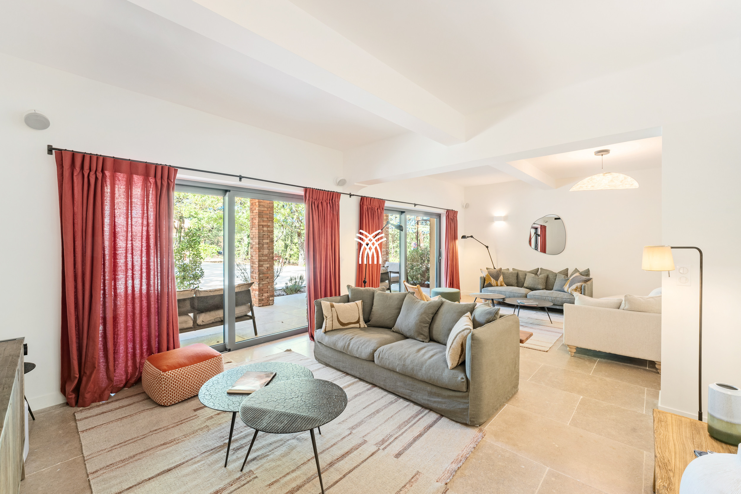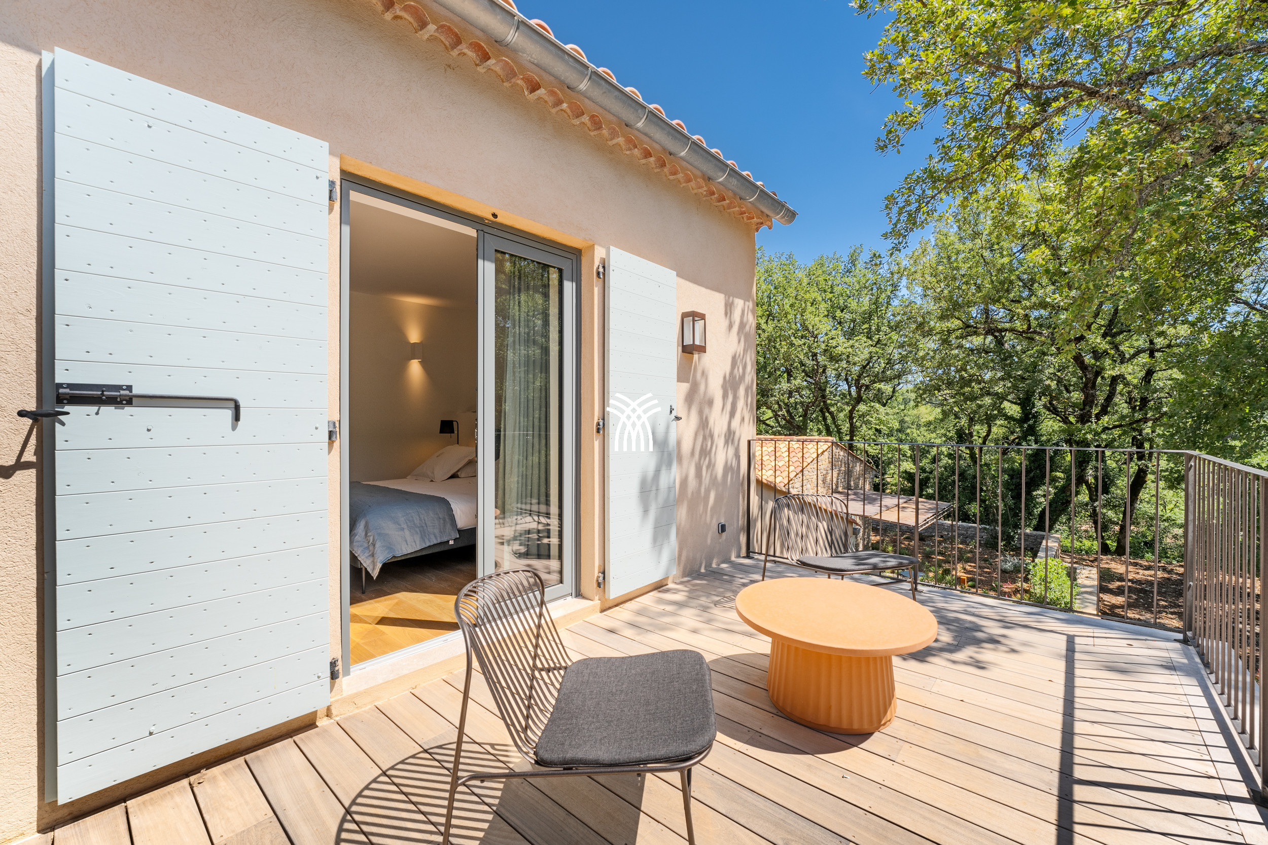 Mêlant sophistication moderne et charme provençal intemporel, la décoration combine avec grâce le bois, le métal et la pierre, s'intégrant parfaitement à la végétation luxuriante qui entoure la propriété. Dans ce havre idyllique, la convivialité définit chaque moment, que ce soit à l'ombre d'un chêne séculaire majestueux ou en profitant de la chaleur d'intérieurs soigneusement conçus. Une cuisine généreuse, des terrasses spacieuses et des fauteuils accueillants créent le cadre parfait pour préparer et savourer la cuisine locale, se détendre lors des soirées d'été fraîches ou simplement se reconnecter à la tranquillité d'un environnement préservé.