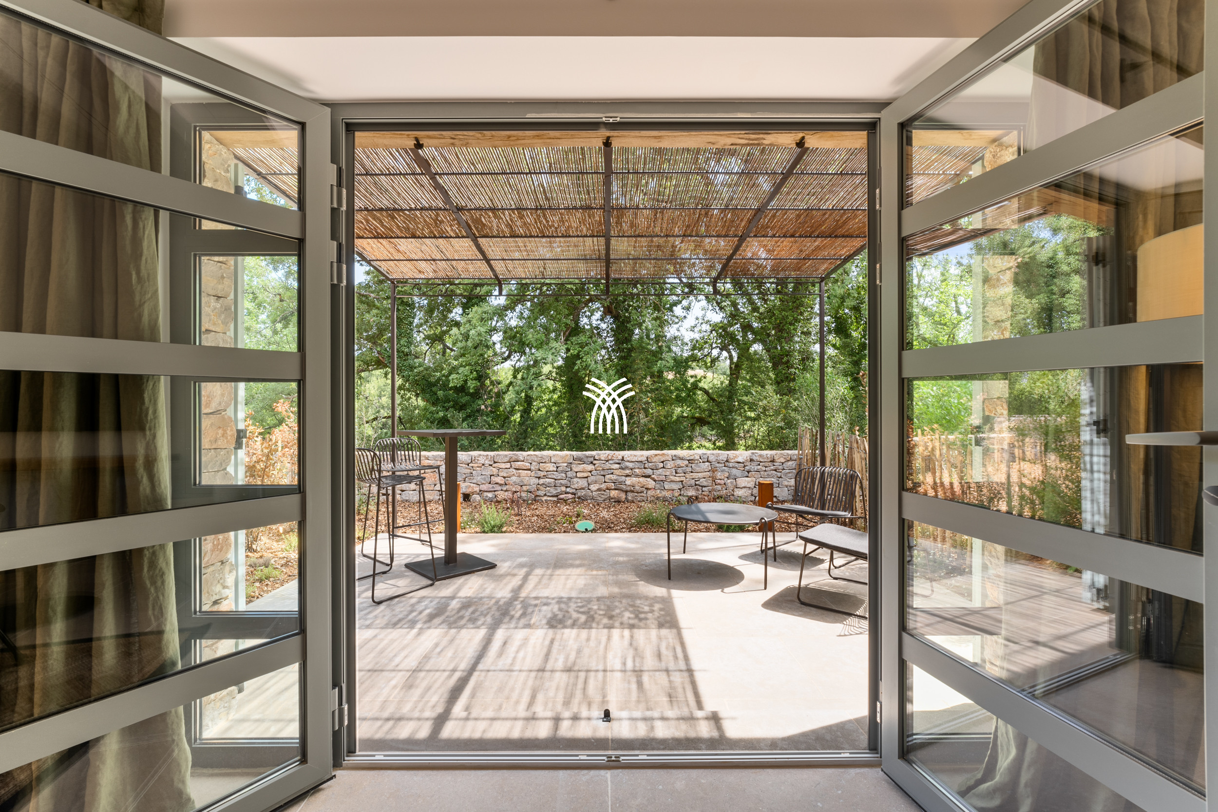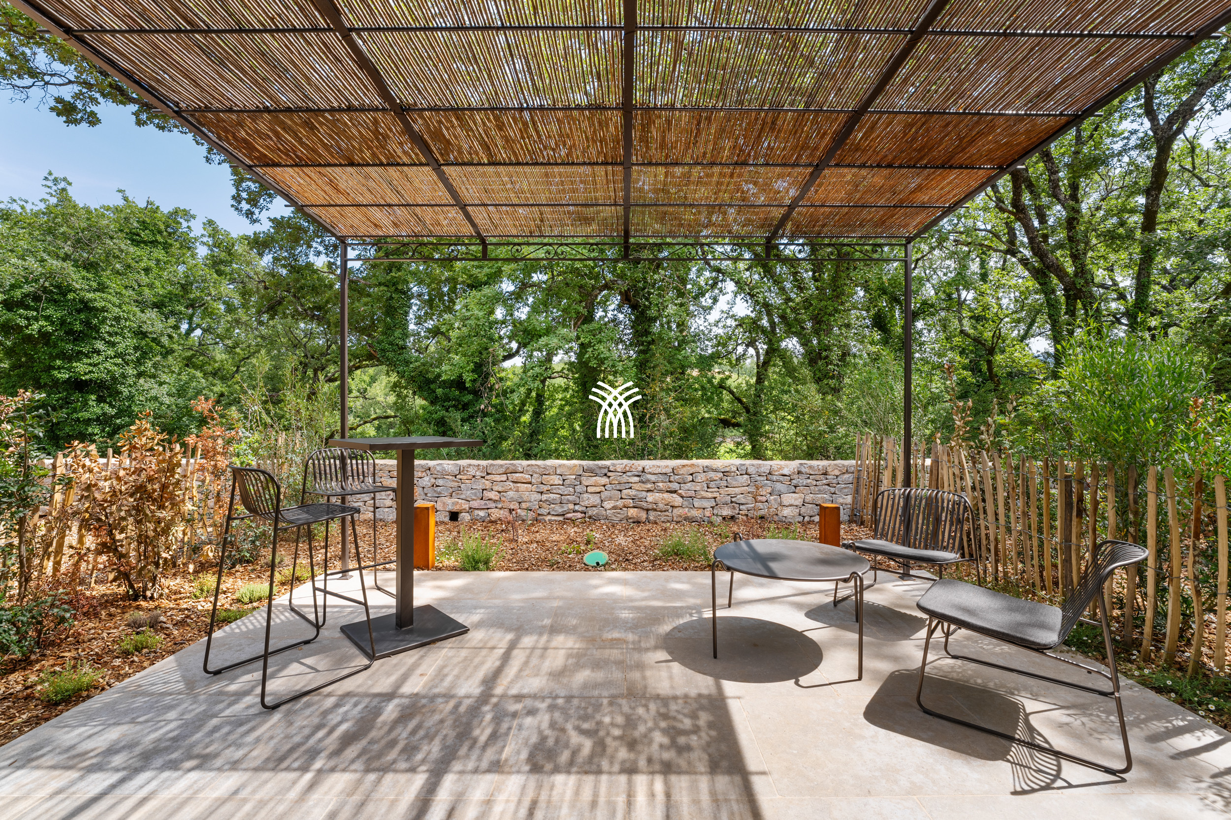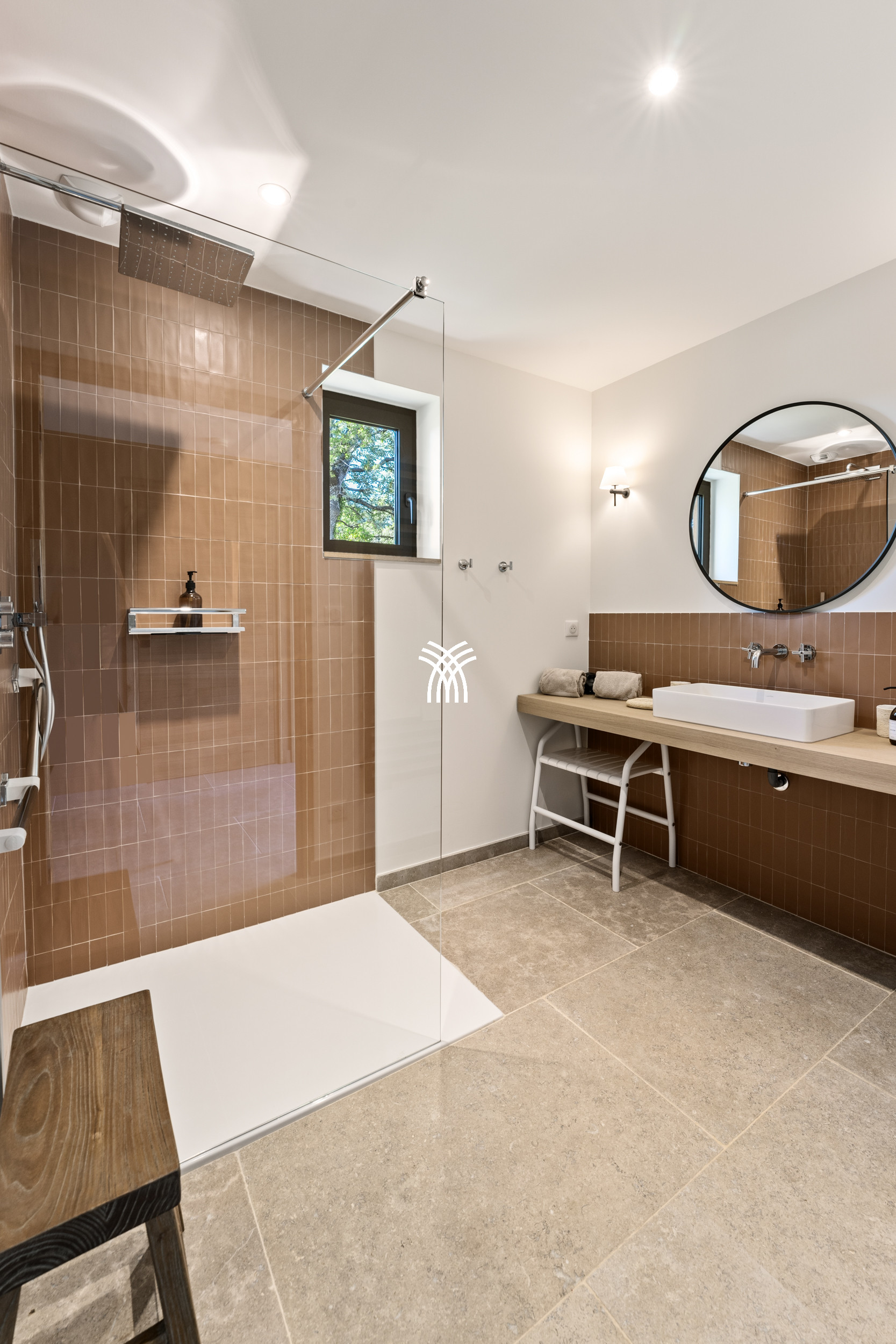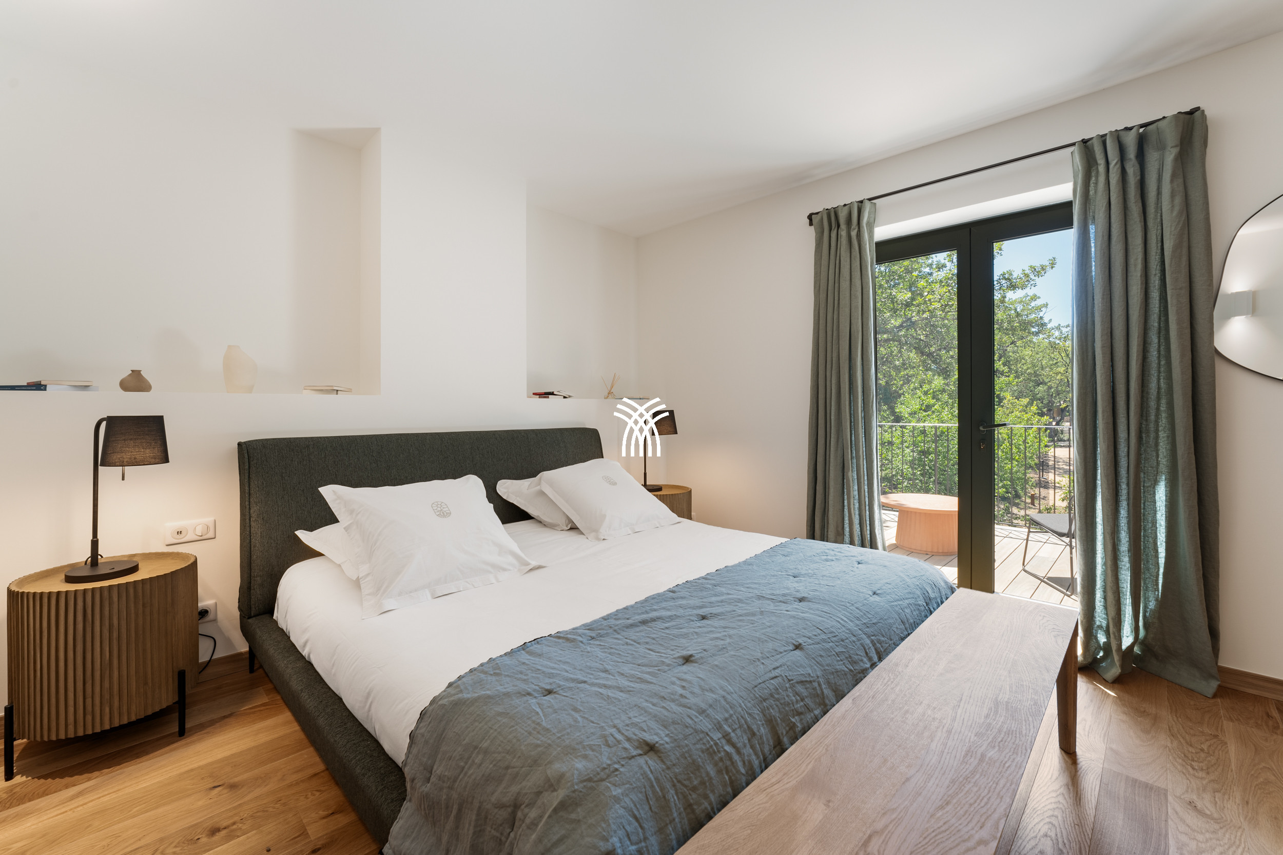 Mêlant sophistication moderne et charme provençal intemporel, la décoration combine avec grâce le bois, le métal et la pierre, s'intégrant parfaitement à la végétation luxuriante qui entoure la propriété. Dans ce havre idyllique, la convivialité définit chaque moment, que ce soit à l'ombre d'un chêne séculaire majestueux ou en profitant de la chaleur d'intérieurs soigneusement conçus. Une cuisine généreuse, des terrasses spacieuses et des fauteuils accueillants créent le cadre parfait pour préparer et savourer la cuisine locale, se détendre lors des soirées d'été fraîches ou simplement se reconnecter à la tranquillité d'un environnement préservé.