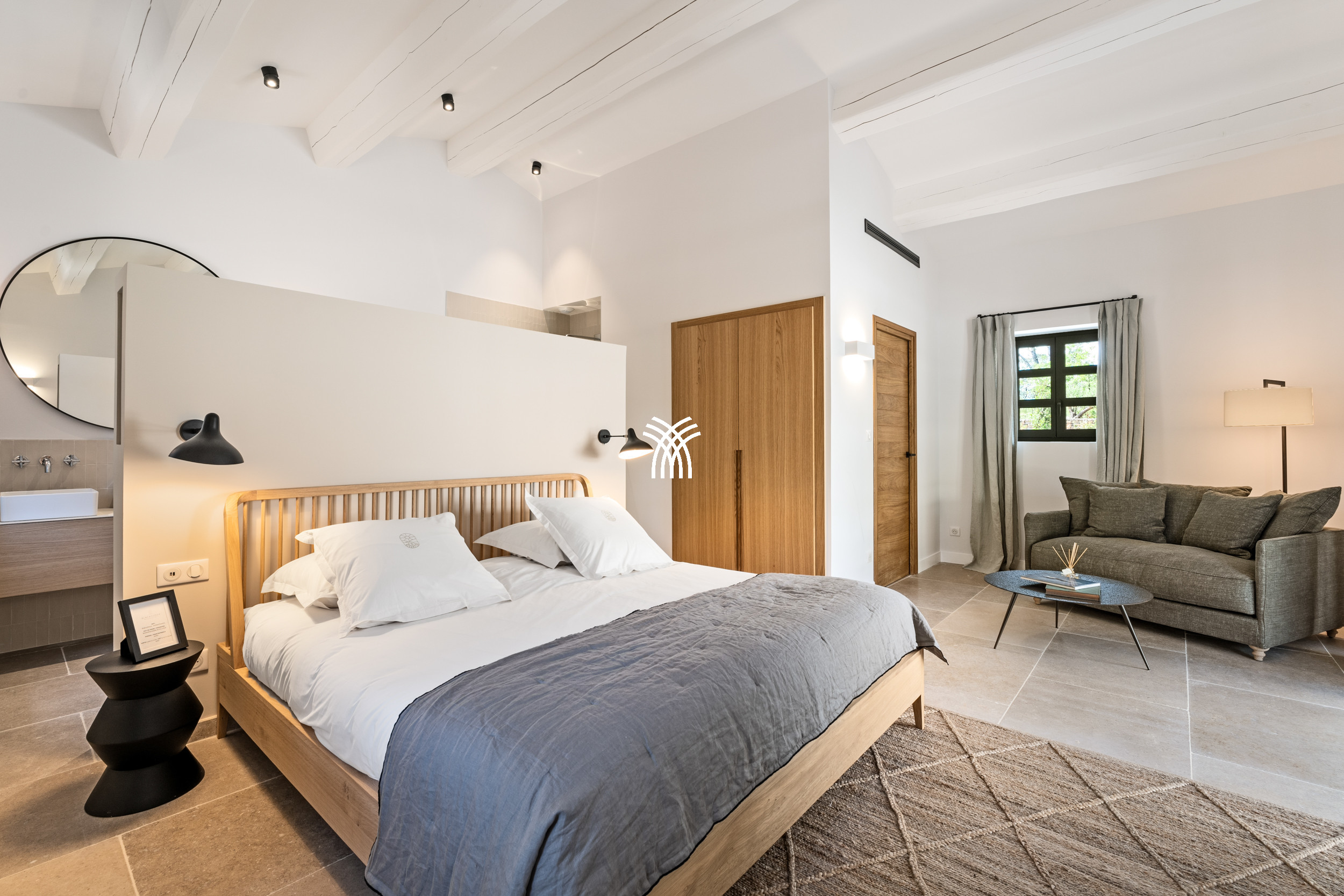 Au cœur de l'espace, une cuisine généreuse invite aux rassemblements conviviaux, tandis que sept suites magnifiquement aménagées offrent un sentiment de confidentialité et de délectation à chaque invité. Un ensemble de terrasses ensoleillées prolonge les espaces de vie vers l'extérieur, créant des coins tranquilles où l'on peut se détendre et embrasser pleinement l'art de vivre provençal.