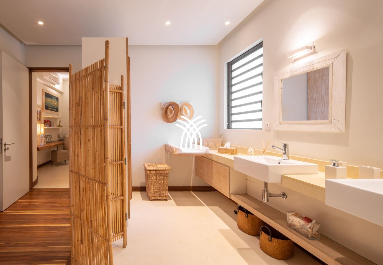 La Villa Cambresi à Trou d’Eau Douce est une perle rare pour ceux qui recherchent une location de villa de luxe à Maurice. Conçue par l'architecte renommé Jean-François Adam, cette villa de 400 m² allie harmonieusement élégance et chaleur, dans un cadre qui évoque le confort d'une résidence familiale. Située en bordure d’une magnifique étendue de sable blanc, elle offre une vue imprenable sur la mer, faisant de chaque lever de soleil un spectacle inoubliable. Les proportions généreuses de cette demeure et son jardin tropical en font une retraite idéale pour un séjour reposant et convivial en famille ou entre amis.