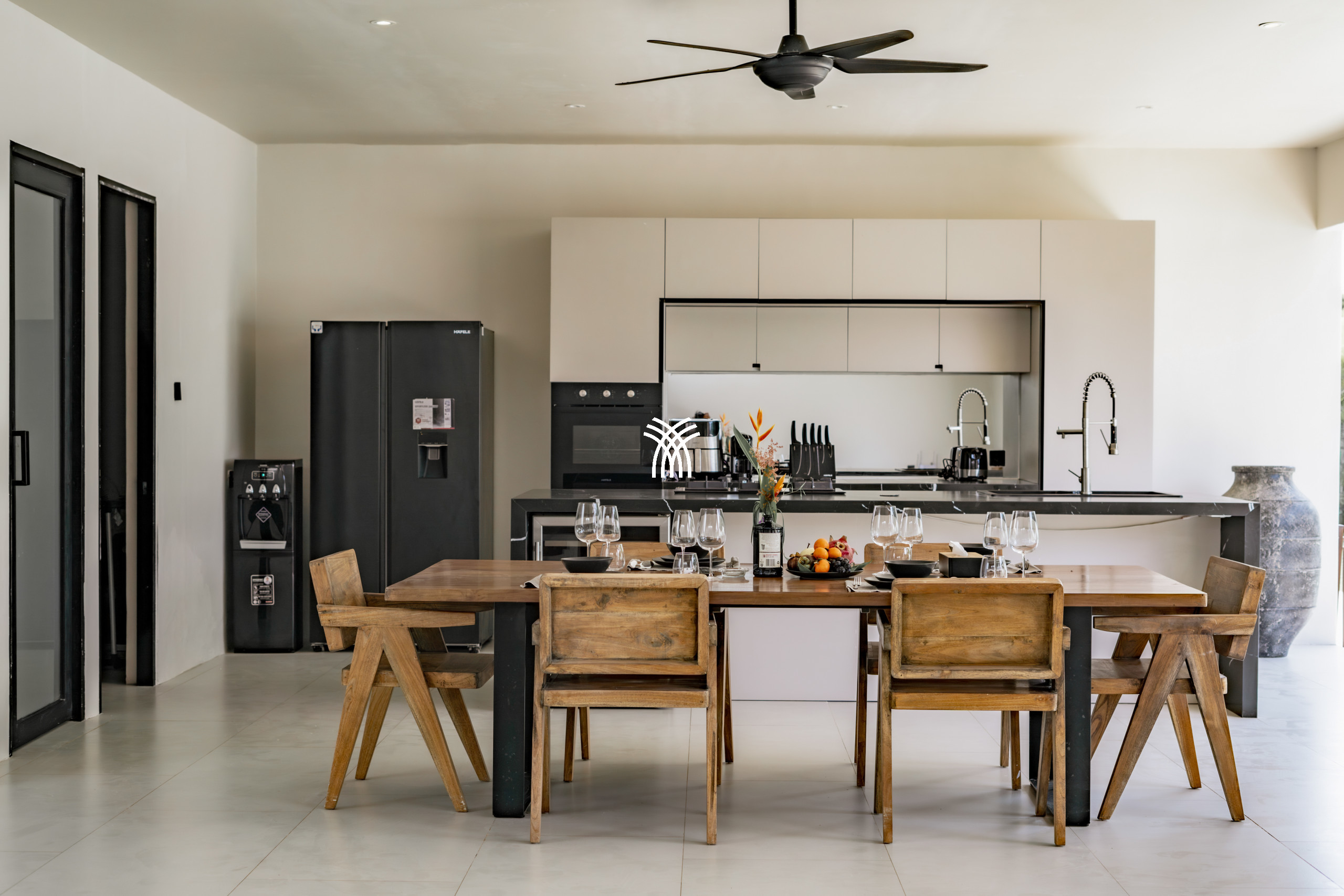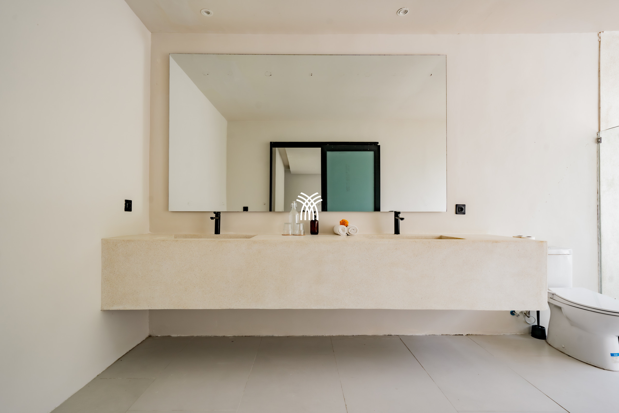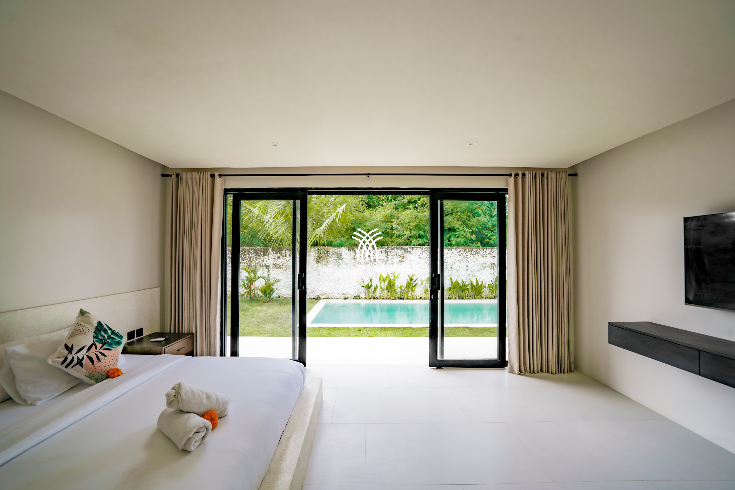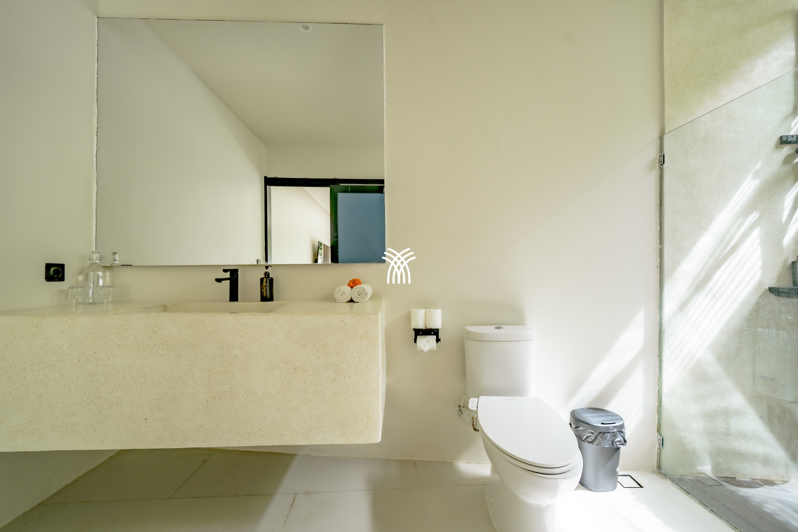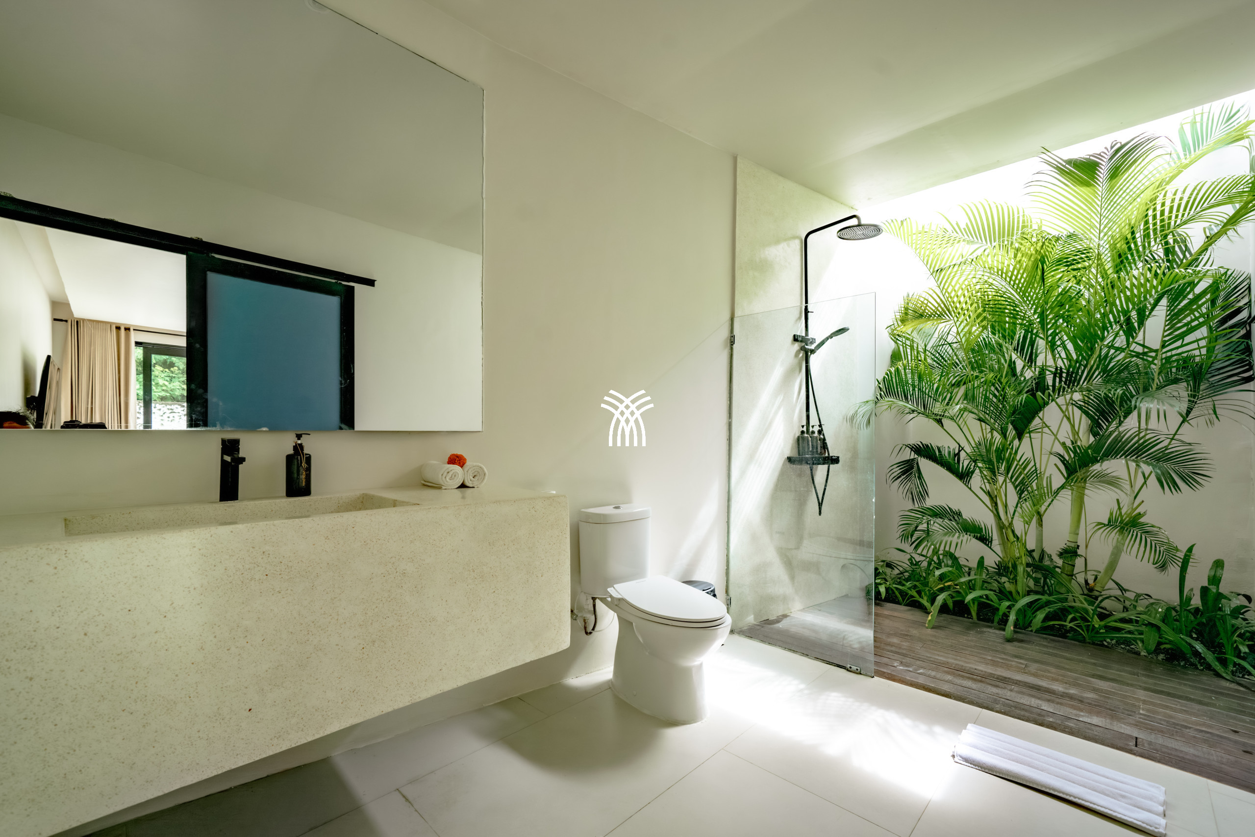 Conçue pour le confort et un mode de vie sans effort, la villa dispose de trois chambres spacieuses avec des lits king-size, des draps moelleux et la climatisation, complétées par des salles de bains élégantes avec des équipements modernes, des douches à effet pluie et de l'eau chaude. Une grande piscine privée et une piscine dédiée aux enfants sont encadrées par une verdure tropicale luxuriante, créant un cadre idyllique pour une détente ensoleillée et des moments rafraîchissants sous le ciel chaud de Bali. L'espace de vie ouvert, rehaussé par de grandes parois vitrées, invite la lumière naturelle à circuler harmonieusement dans l'espace, tandis que la cuisine moderne entièrement équipée et la salle à manger offrent le cadre parfait pour des repas partagés et des rassemblements mémorables.